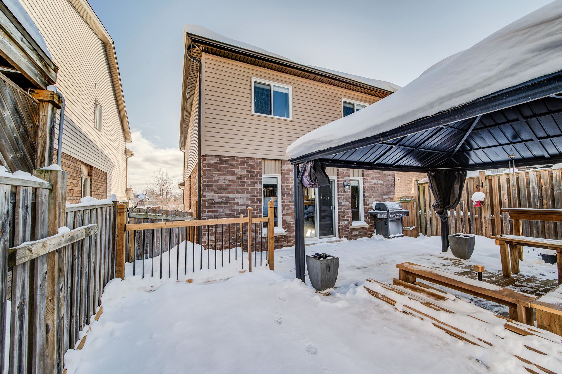 Welcome to this beautifully maintained and spacious 3 bedroom, two-storey open-concept detached family home ideally situated on a fully landscaped and fenced lot in the highly desirable lackner woods/idlewood neighbourhood of kitchener. Nestled in a family-friendly community, this home offers the perfect blend of comfort, convenience and lifestyle. Enjoy easy access to highway 401, the expressway, fairview park mall, grocery stores, excellent schools, chicopee ski hill, restaurants, and countless amenities. Step onto your inviting front porch and take in the scenic views of nearby walking and hiking trails - perfect for the outdoor enthusiasts. The single car garage and double driveway provide ample parking for your vehicles. Inside the carpet-free main floor features a bright and spacious open-concept layout designed for modern family living. The kitchen boasts quartz countertops, abundant cabinetry, a functional island and stainless-steel appliances (fridge, stove, built-in microwave and dishwasher). The adjacent dining area is ideal for family dinners and entertaining guests. The bright family room offers generous space for relaxing with the family or entertaining family or friends. Sliding doors lead to the fully fenced backyard oasis, complete with an extended deck (2021) and gazebo (2022) and a newer outdoor shed (2025) for additional storage - perfect for enjoying outdoor living. Upstairs, you'll find a large primary bedroom featuring double entry doors, private ensuite with an oversized shower, a walk-in closet, and an additional bonus closet for additional storage. Two spacious secondary bedrooms and a 4- piece bathroom complete the upper level. The unspoiled lower level awaits your personal touch and offers endless possibilities for customization. Additional features include central air conditioning, washer and dryer and a newer water softener (2023). Don't miss your opportunity to own this wonderful family home - book your private showing today!
