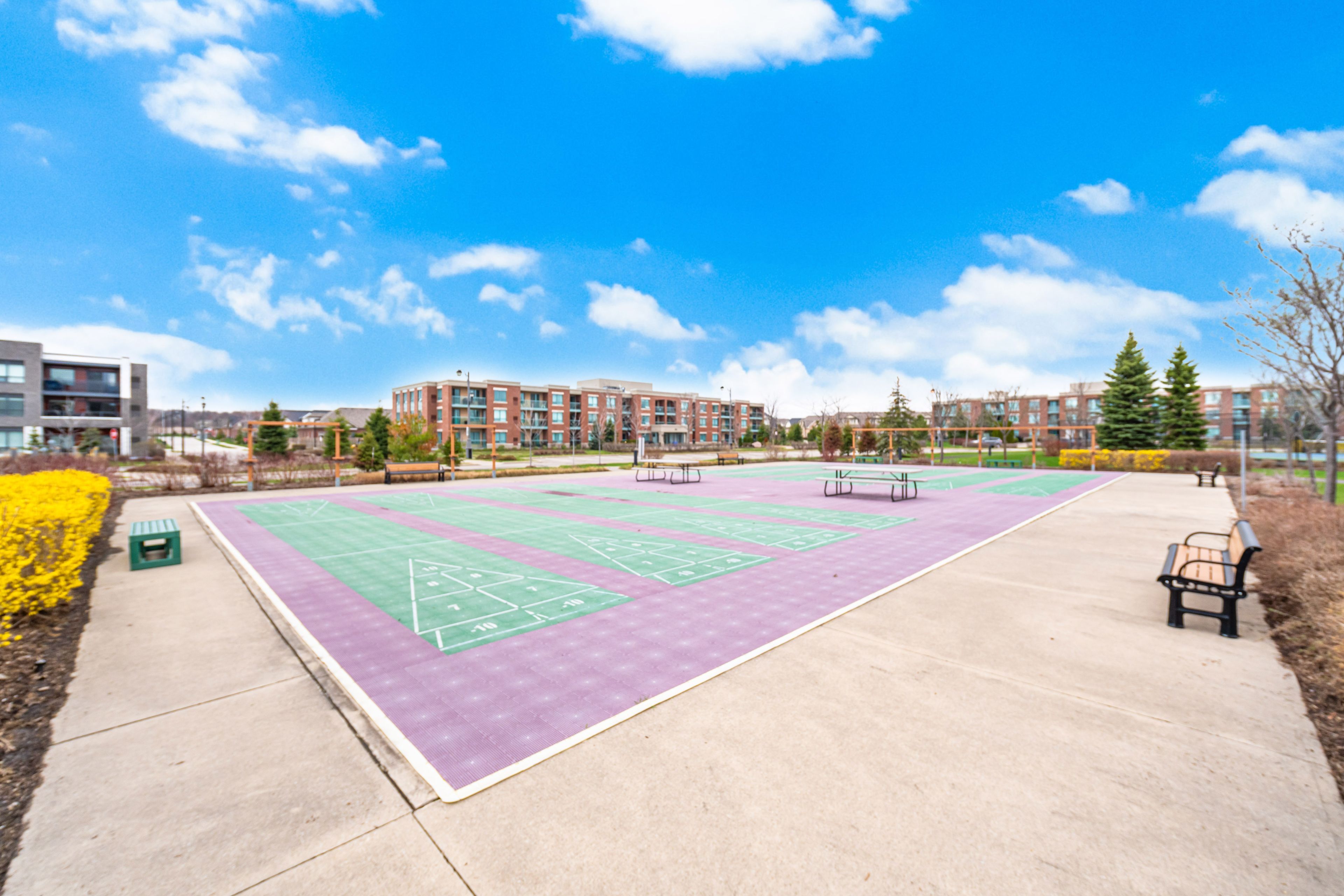 An exceptional opportunity awaits in the sought-after rosedale village-a secure, gated community offering relaxed, active adult living with serene, unobstructed golf course views from this bright, thoughtfully designed condo-the only building in the complex backing directly onto the course for added privacy. This one-bedroom, one-bathroom suite features a spacious open-concept layout with combined living and dining areas that walk out to a private balcony, perfect for enjoying your morning coffee or unwinding at the end of the day. The contemporary kitchen is equipped with granite countertops, stainless steel appliances, a modern backsplash, and a breakfast bar ideal for casual dining or entertaining. The generously sized primary bedroom is filled with natural light, easily accommodates a king-sized bed, and offers a walk-in closet, while additional conveniences include ensuite laundry, central air conditioning, and a dedicated parking space. Residents enjoy an exceptional range of resort-style amenities, including a nine-hole golf course, tennis courts, lawn bowling, shuffleboard, and scenic outdoor spaces, along with a clubhouse featuring an indoor saltwater pool, sauna, fitness center, fireside lounge, party room, games room, and an auditorium hosting regular social events and gatherings, all ideally located near parks, schools, shopping, commuter routes, and trinity common mall with over 60 retail and dining option