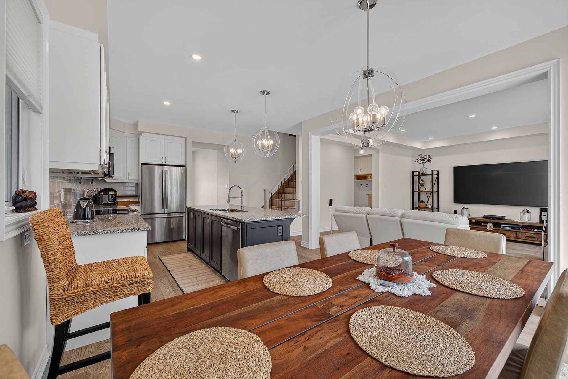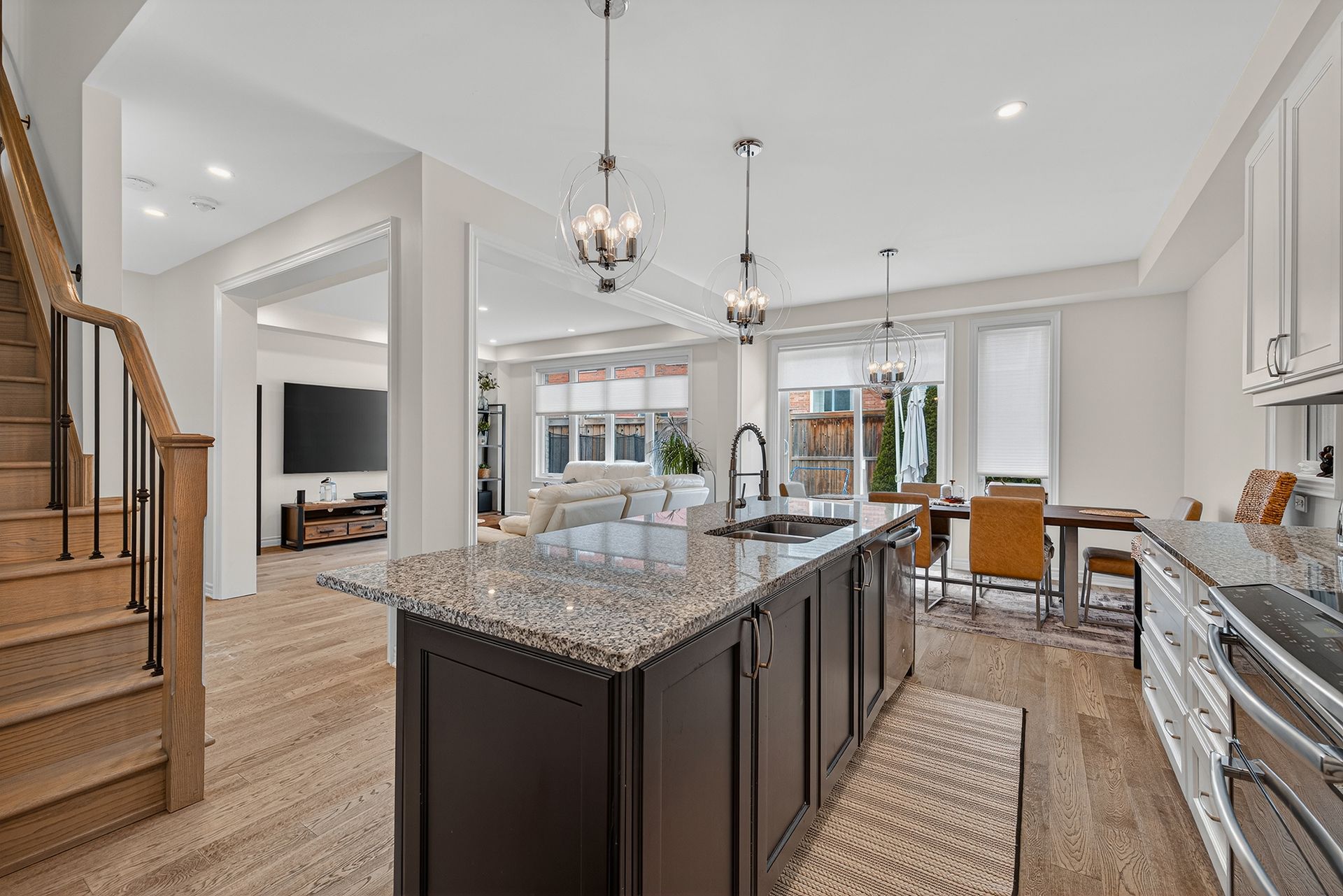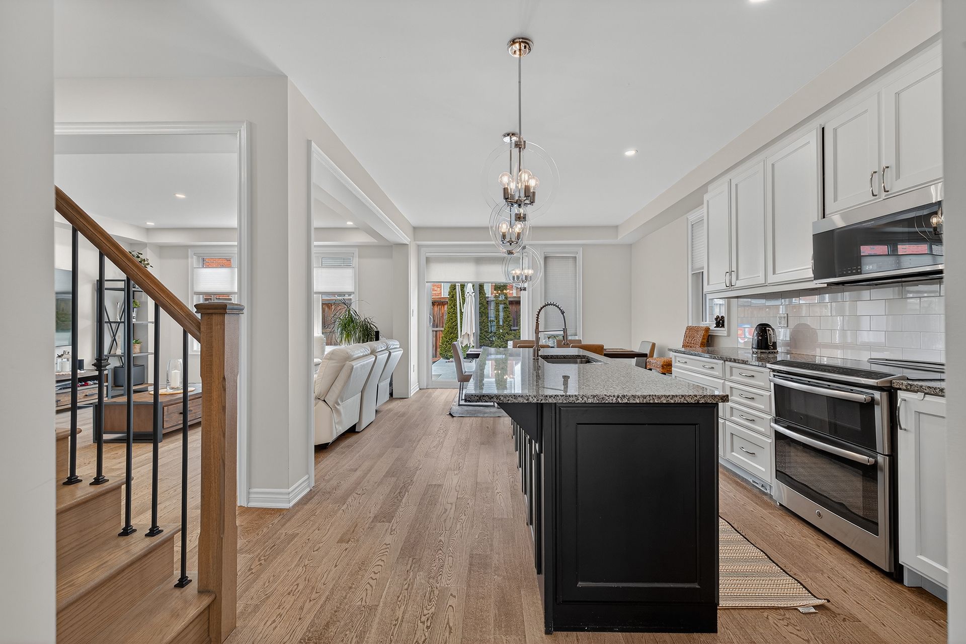 • Open-concept main floor with modern kitchen and bright living area.