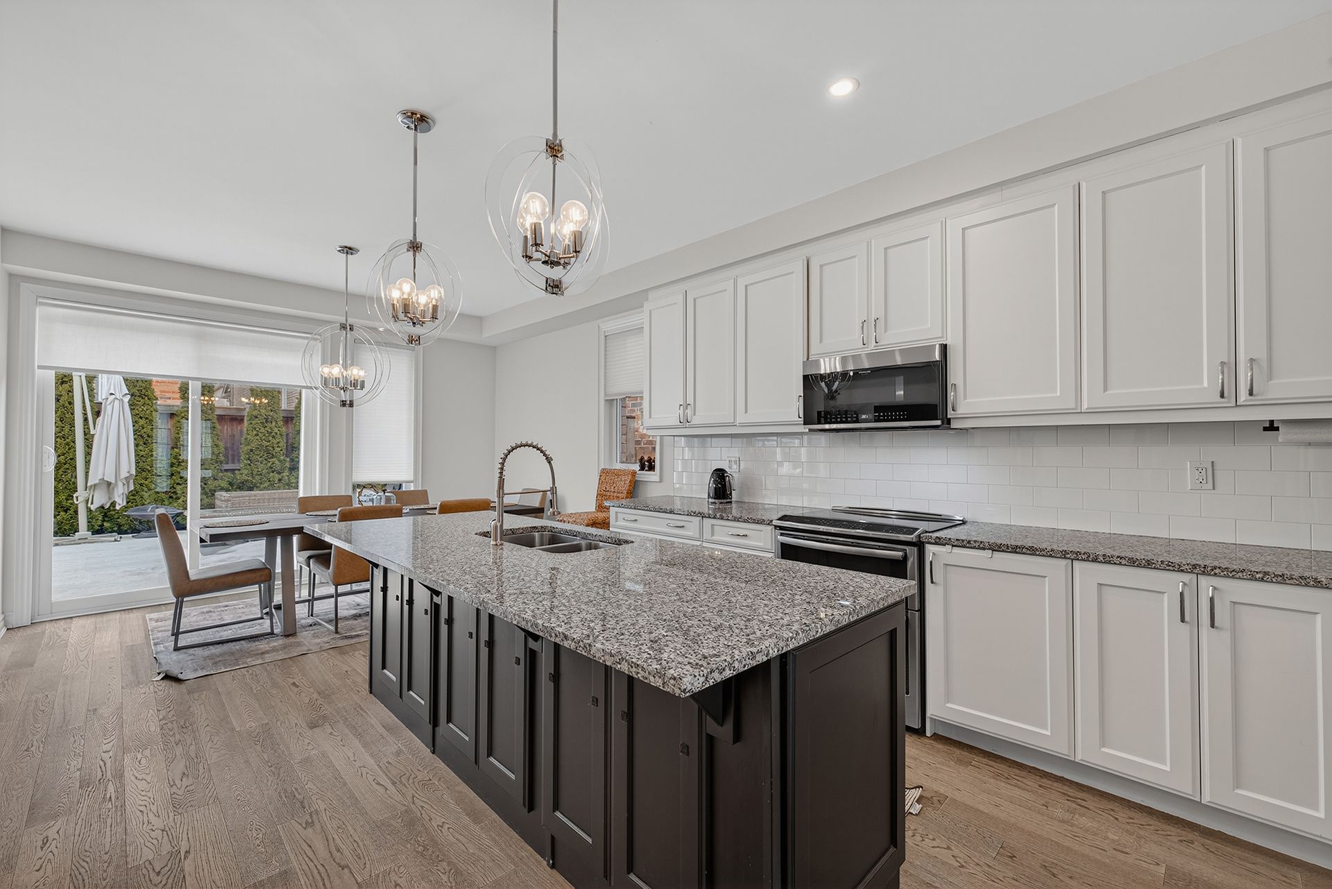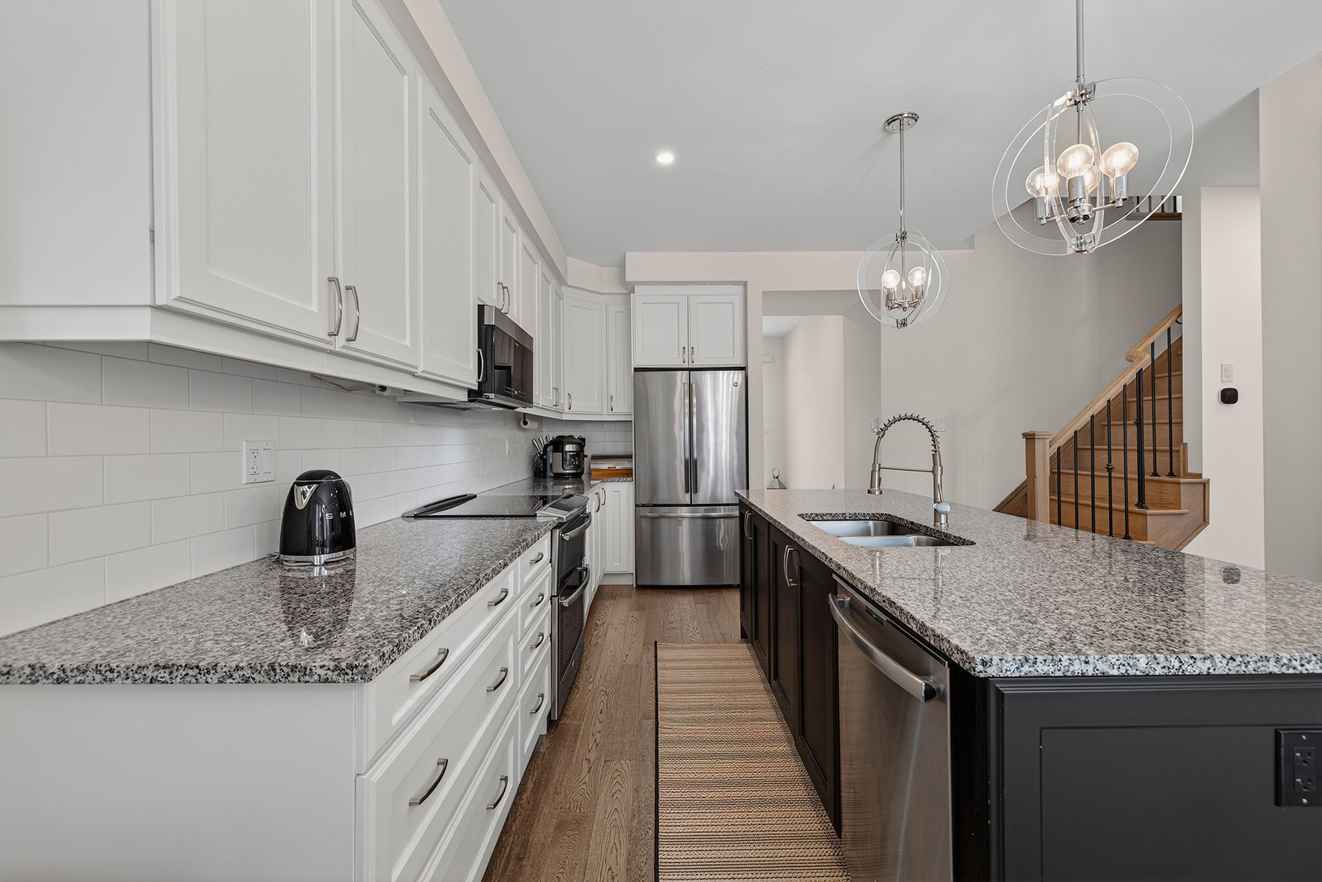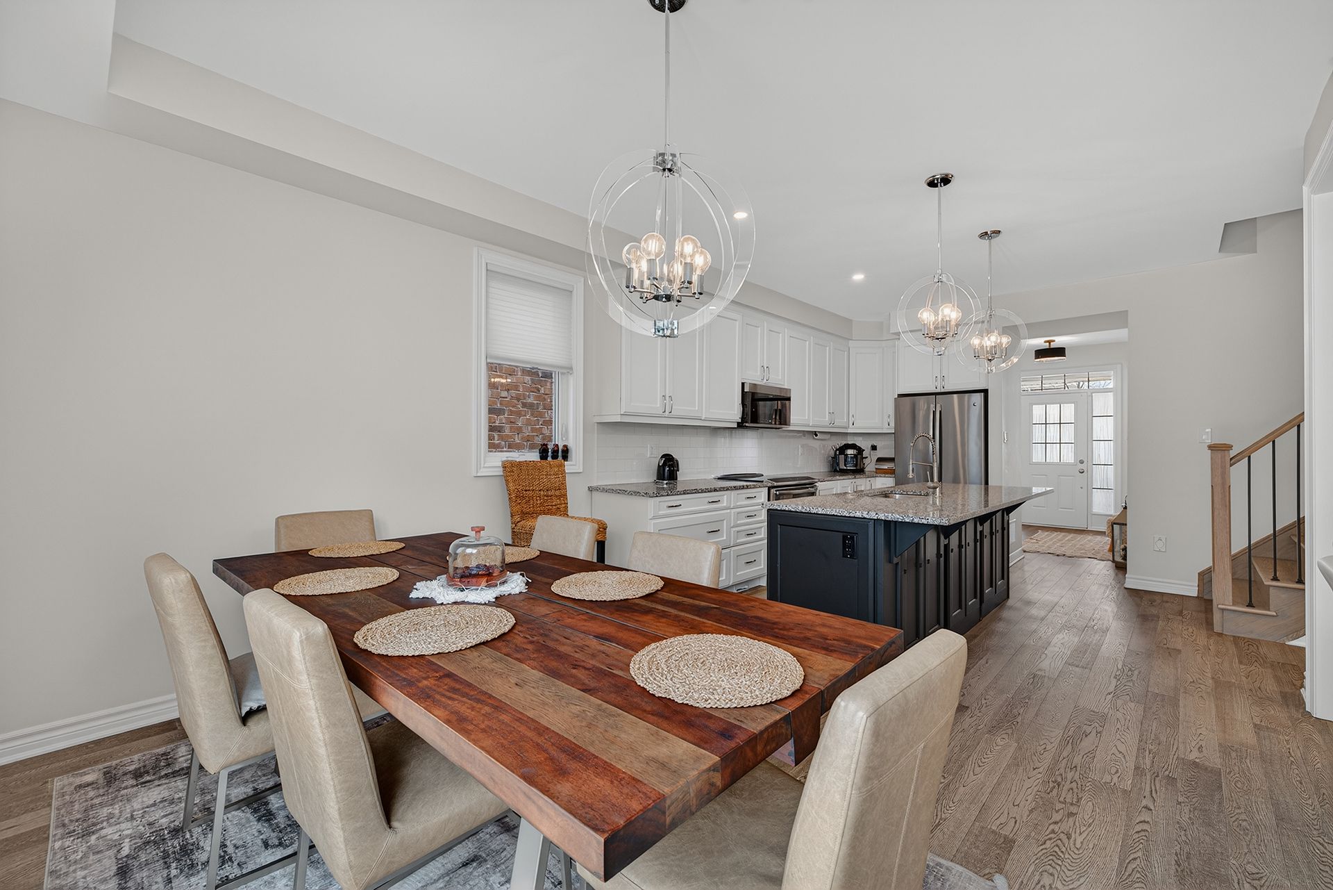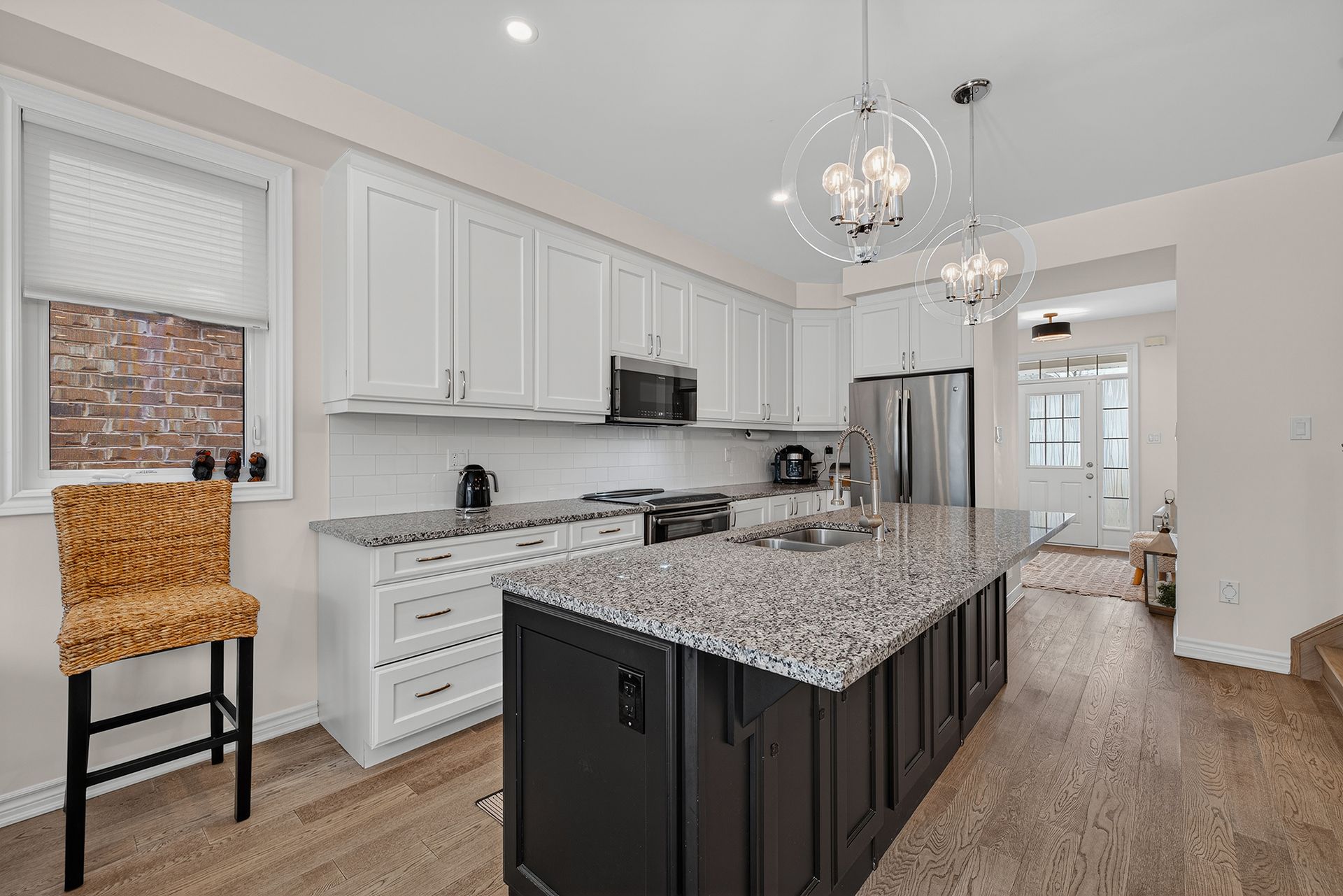 • Open-concept main floor with modern kitchen and bright living area.