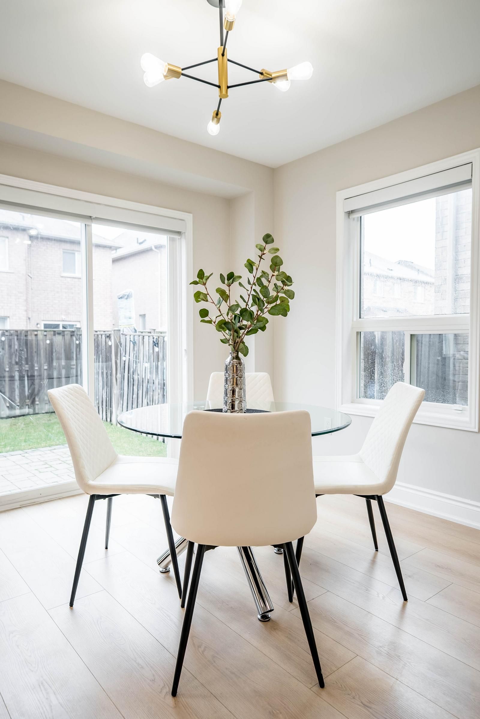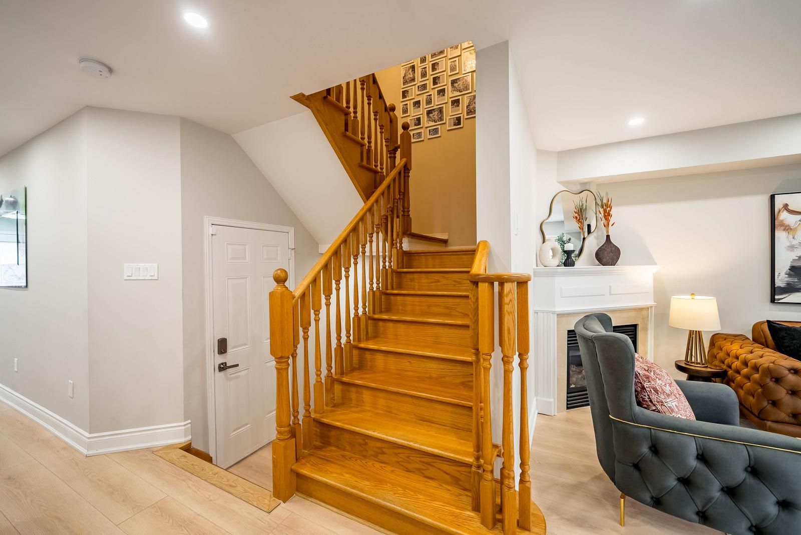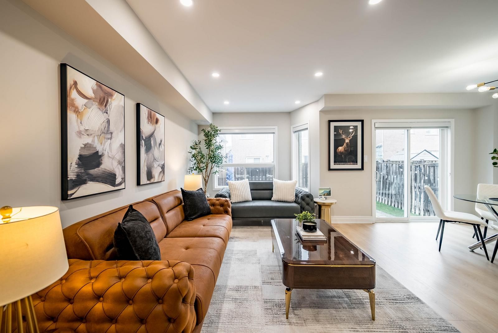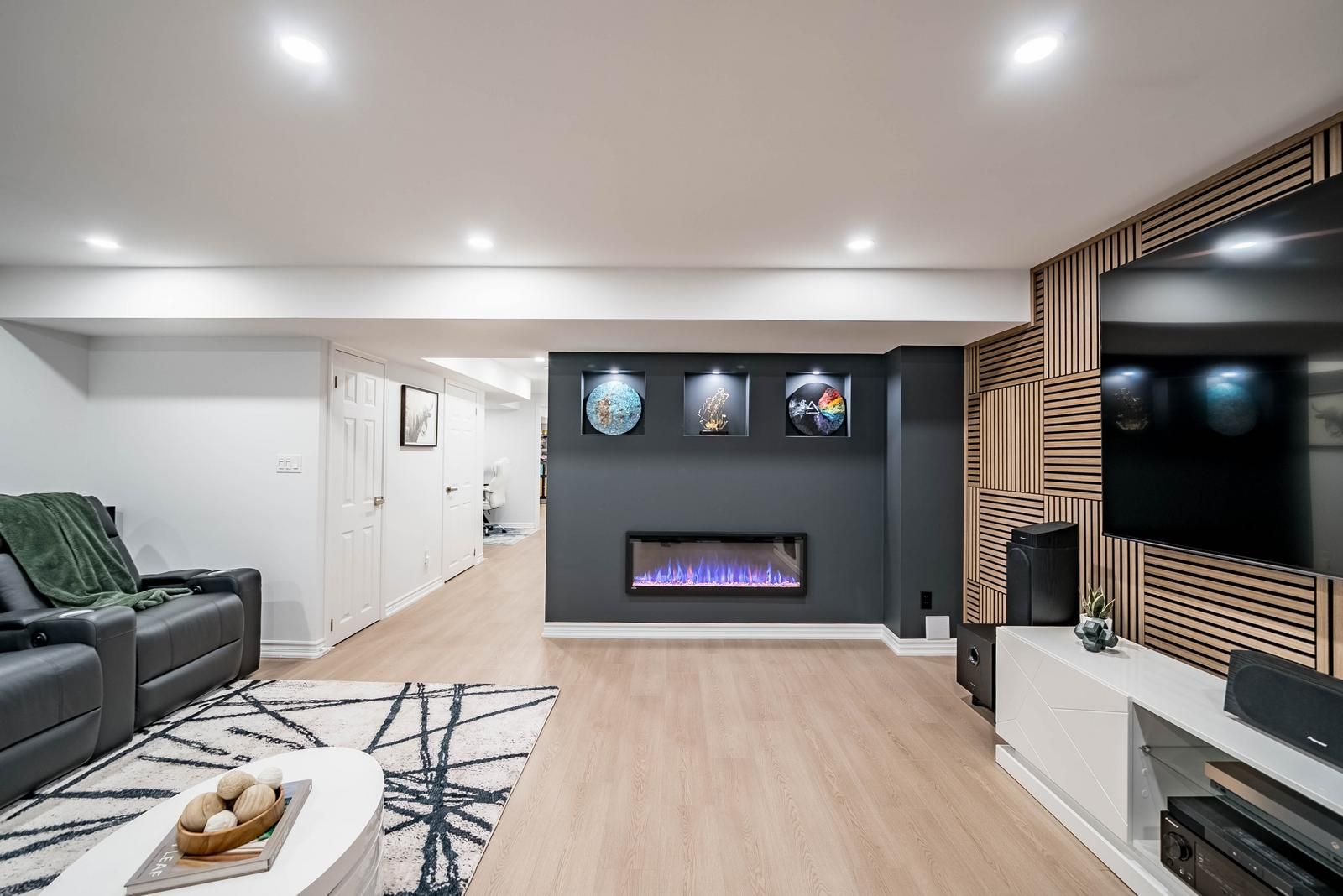 Welcome to 55 win timbers crescent, a thoughtfully updated semi-detached home in the heart of stouffville. Offering a functional layout, refined finishes, and a fully finished basement, this home delivers both style and everyday comfort. Step inside to a bright, welcoming foyer with a front closet and convenient powder room. Light-toned flooring and a neutral palette create a sophisticated feel throughout. The dining area is spacious with two large windows-perfect for entertaining or family dinners. The rear of the home features an open-concept design with smooth ceilings, pot lights and remote blinds. The living room is warm and inviting, with large windows that bring in plenty of natural light, plus a gas fireplace. The updated kitchen is beautifully appointed with quartz countertops, a stylish backsplash, and stainless steel appliances, along with a breakfast area and sliding doors leading to a charming private yard. Upstairs, the primary bedroom offers a walk-in closet and 4-piece ensuite, plus remote blinds. Two additional bedrooms share a 4 piece bathroom. The finished basement extends your living space with a stunning rec room featuring a wood accent wall, electric fireplace and built-in bar, ideal for entertaining or family movie nights. An additional finished area offers flexibility for a home office, gym, or playroom. Located within sought-after school boundaries including st. Brendan catholic school and wendat public school, and just minutes to memorial park, the stouffville leisure centre, and the shops and restaurants along main street stouffville. A turnkey opportunity in a highly desirable, family-friendly neighbourhood.