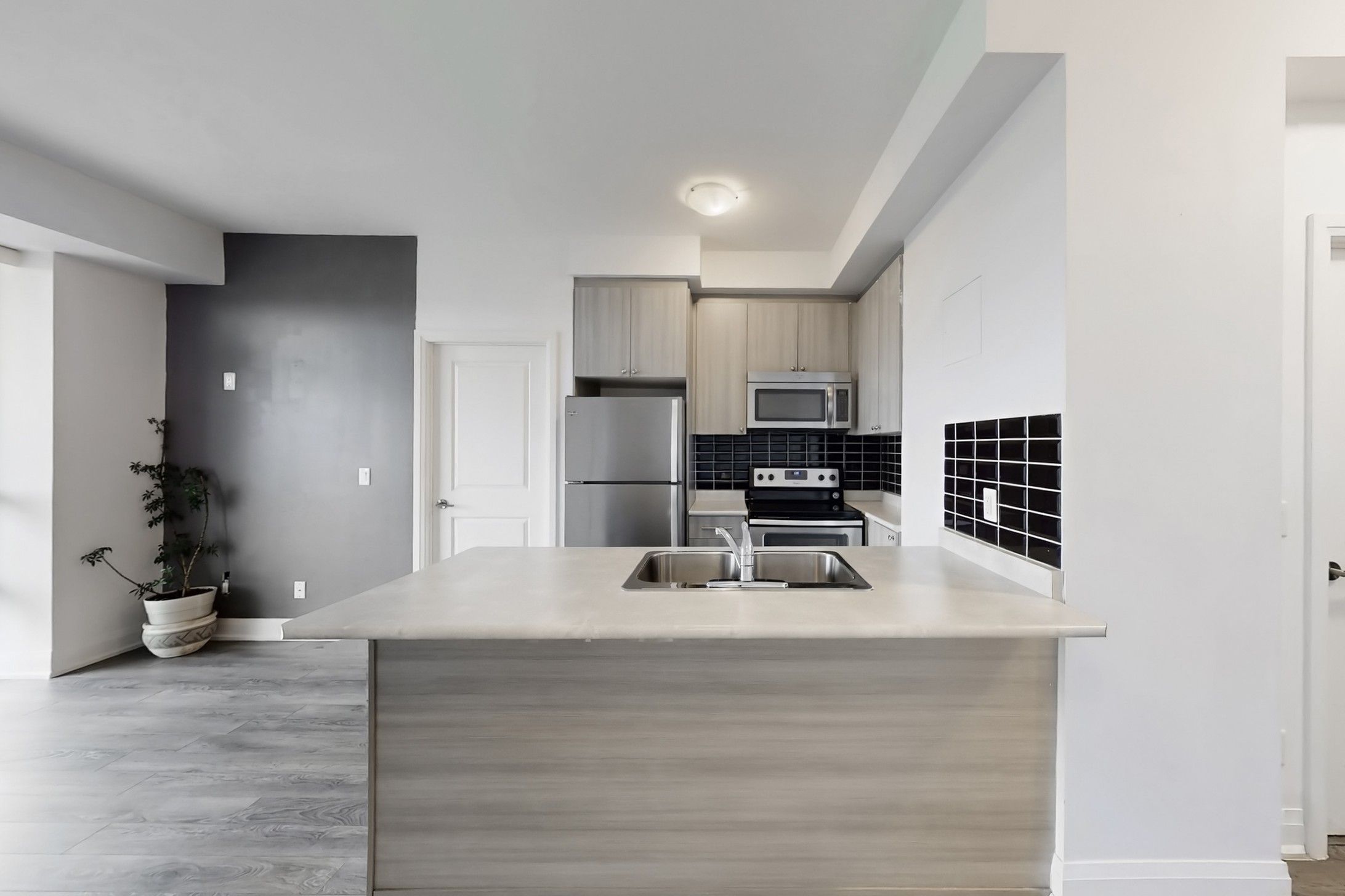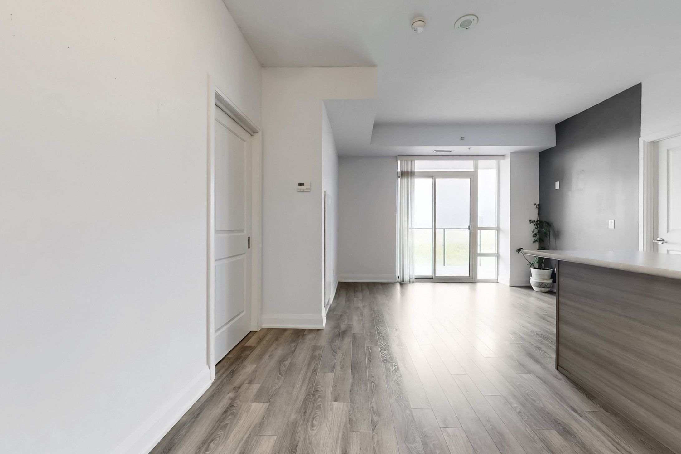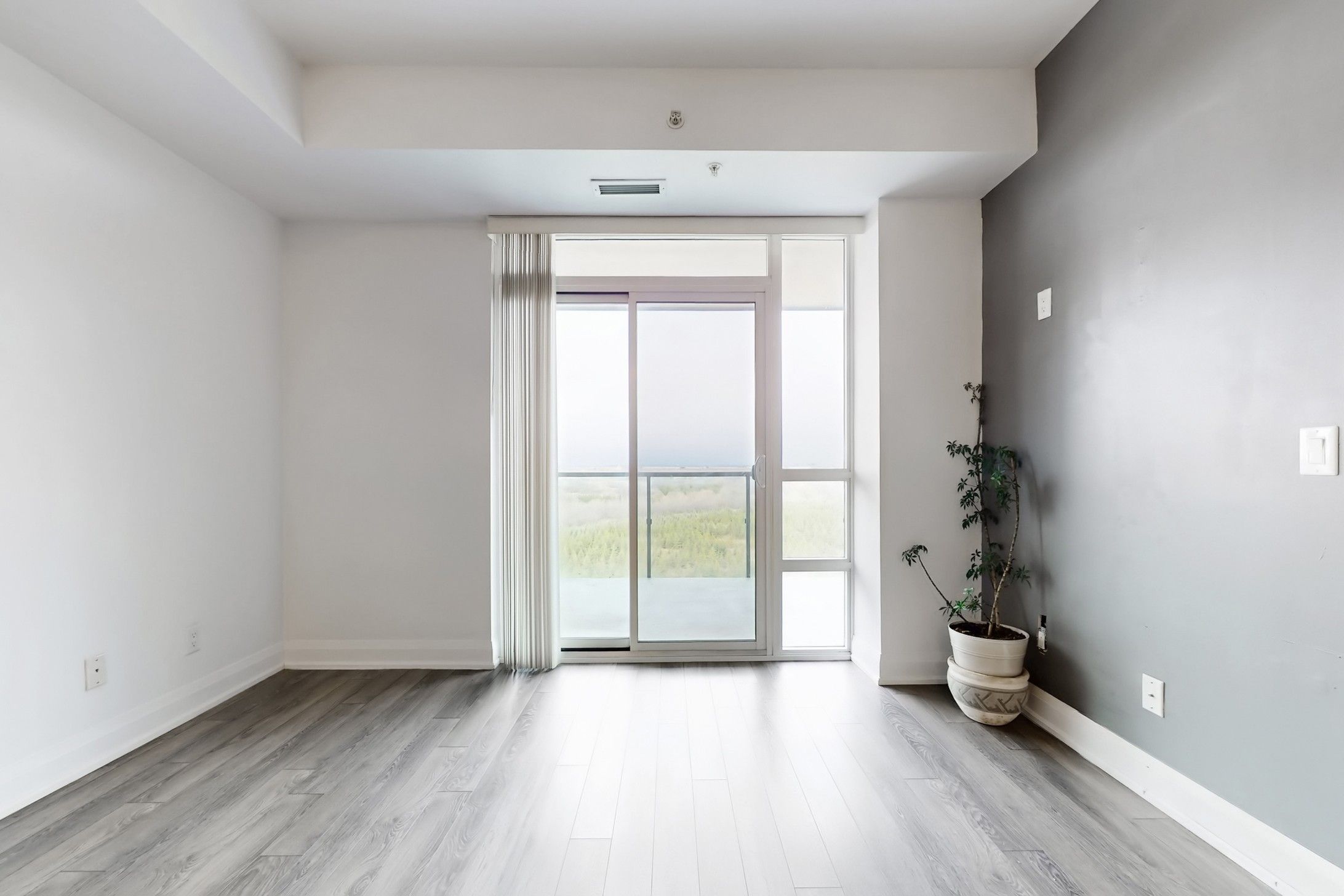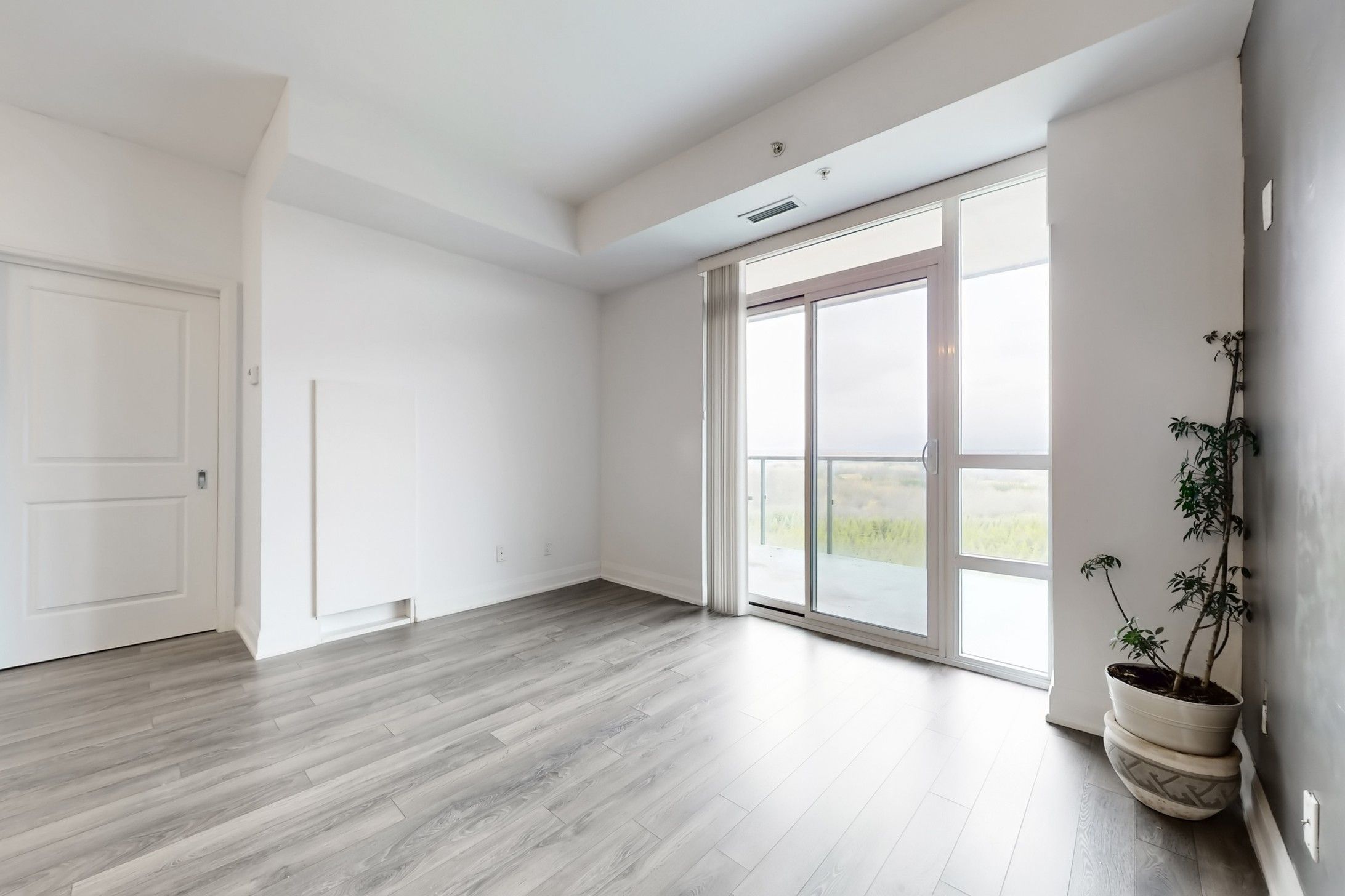 Welcome home to this spacious, modern & desirable 2 bedroom, 2 bathroom suite, perfect setting to sit back, enjoy sunrise in the background of green conservation area while enjoying your morning coffee. This bright, open-concept unit features 9' ceilings, floor-to-ceiling windows, modern finishes, suite includes, stainless steel kitchen appliances, fridge, stove, dishwasher, microwave, clothes washer & dryer, laminate flooring throughout, convenient walk out to private balcony, do not miss the opportunity to call this one home. Enjoy the convenience of an underground parking spot, a storage locker, and access to premium building amenities like a fitness centre, party/meeting rooms, guest suites, and concierge service. Ideally located with quick access to hwy 407/427, transit, schools, shopping, and clairville conservation, this condo blends modern comfort with everyday convenience.