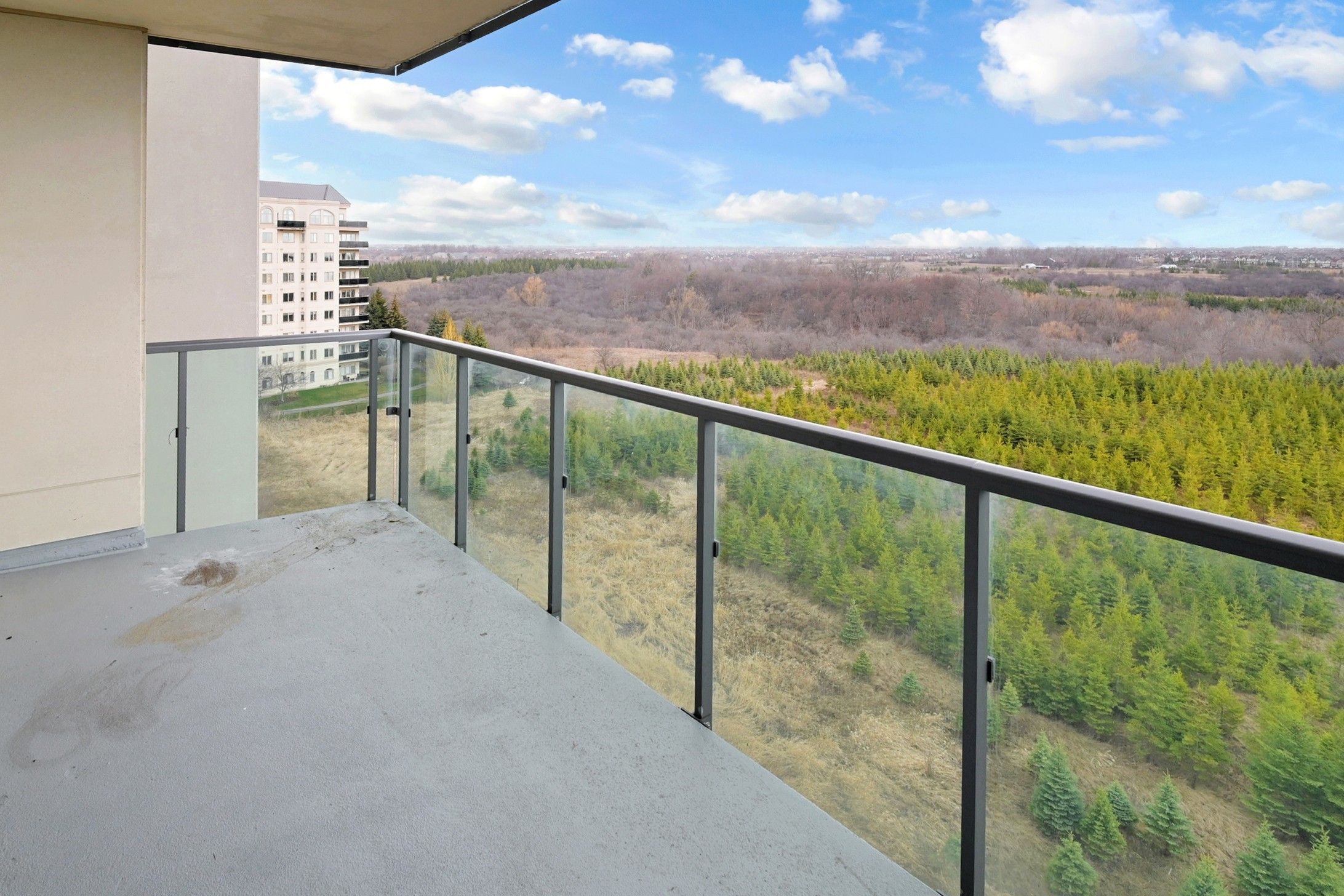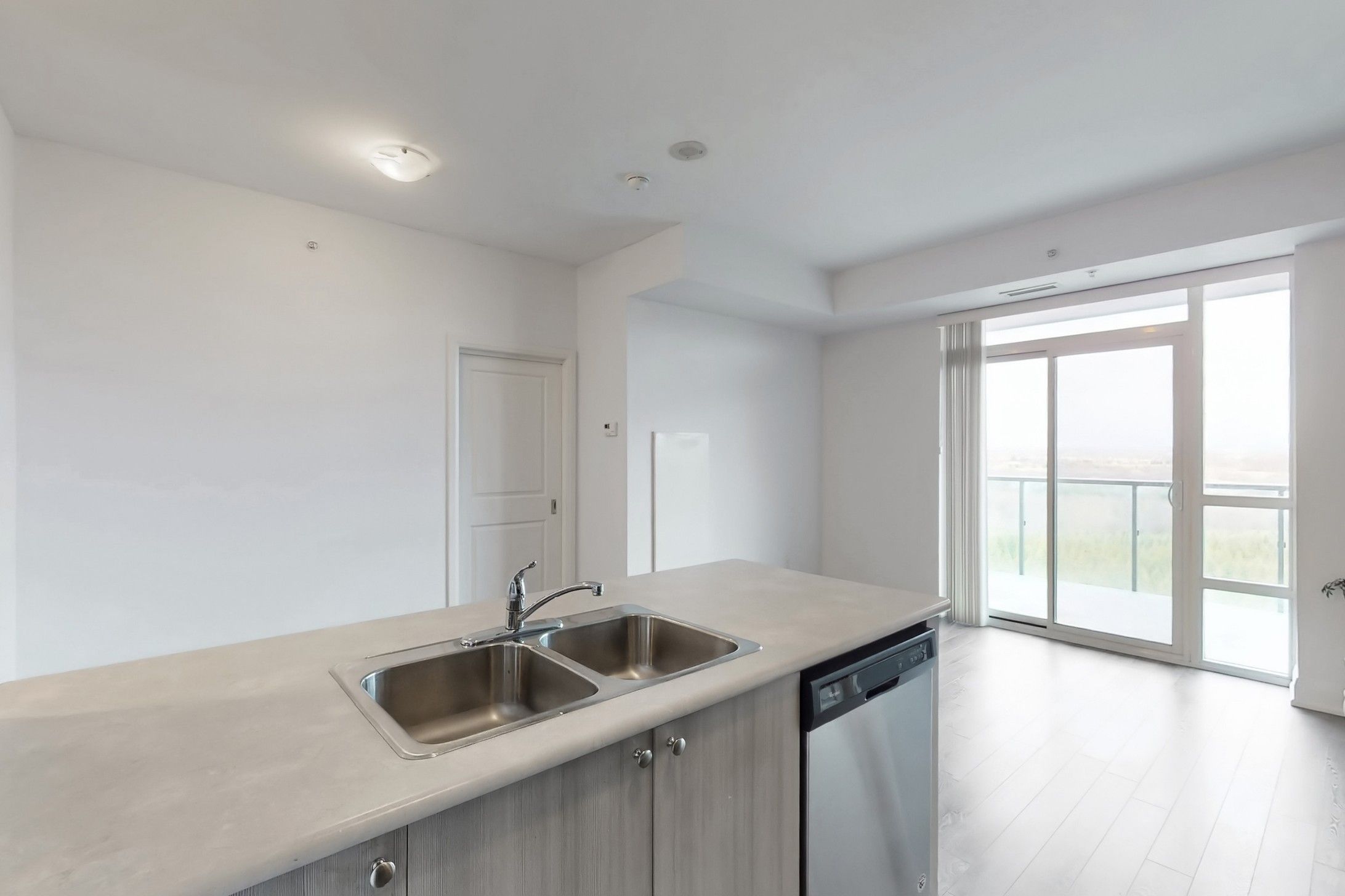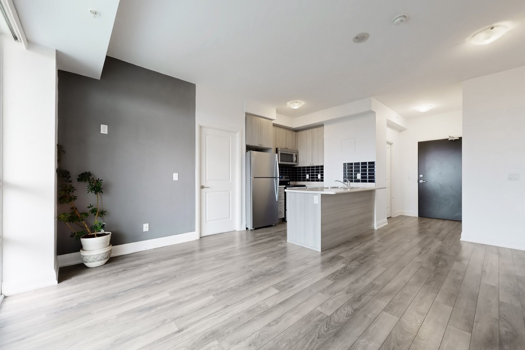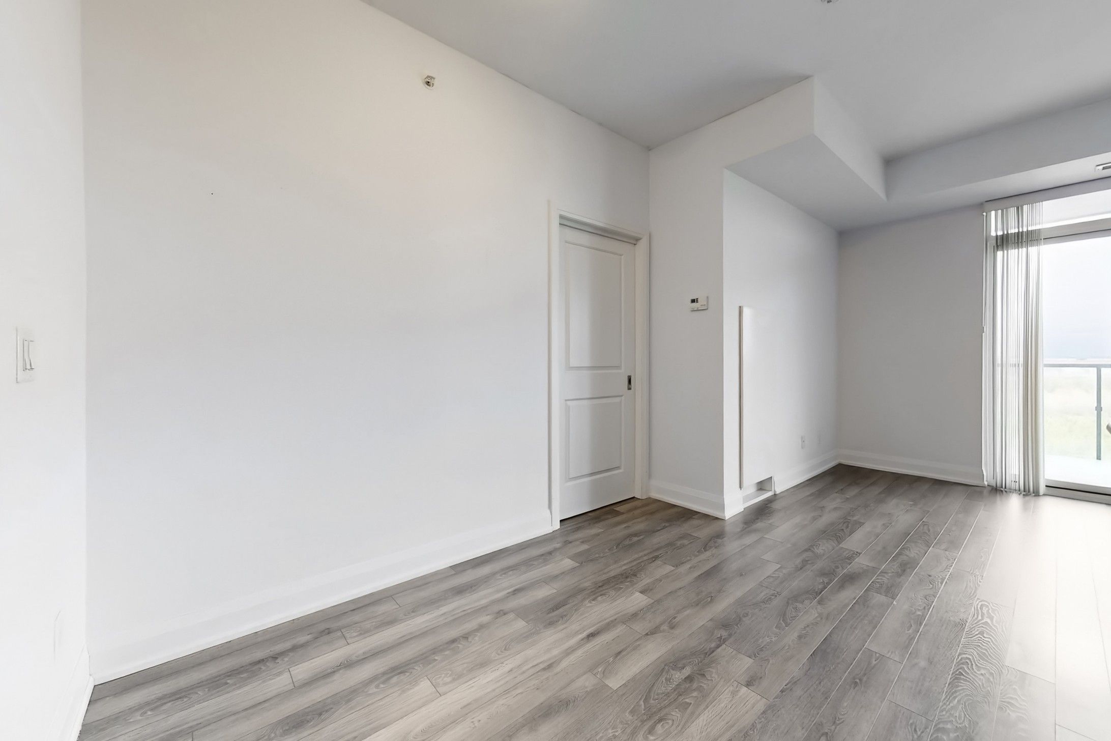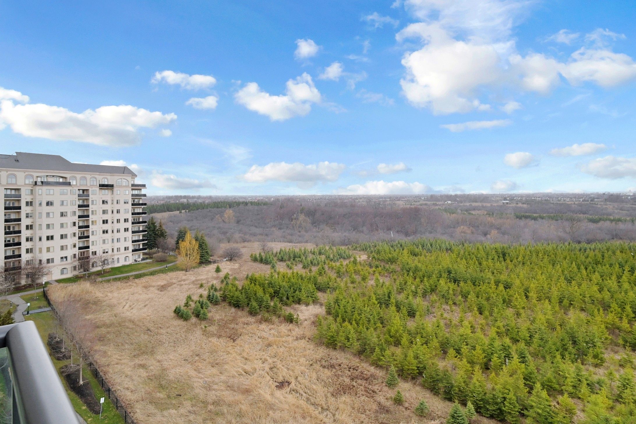 Welcome home to this spacious, modern & desirable 2 bedroom, 2 bathroom suite, perfect setting to sit back, enjoy sunrise in the background of green conservation area while enjoying your morning coffee. This bright, open-concept unit features 9' ceilings, floor-to-ceiling windows, modern finishes, suite includes, stainless steel kitchen appliances, fridge, stove, dishwasher, microwave, clothes washer & dryer, laminate flooring throughout, convenient walk out to private balcony, do not miss the opportunity to call this one home. Enjoy the convenience of an underground parking spot, a storage locker, and access to premium building amenities like a fitness centre, party/meeting rooms, guest suites, and concierge service. Ideally located with quick access to hwy 407/427, transit, schools, shopping, and clairville conservation, this condo blends modern comfort with everyday convenience.