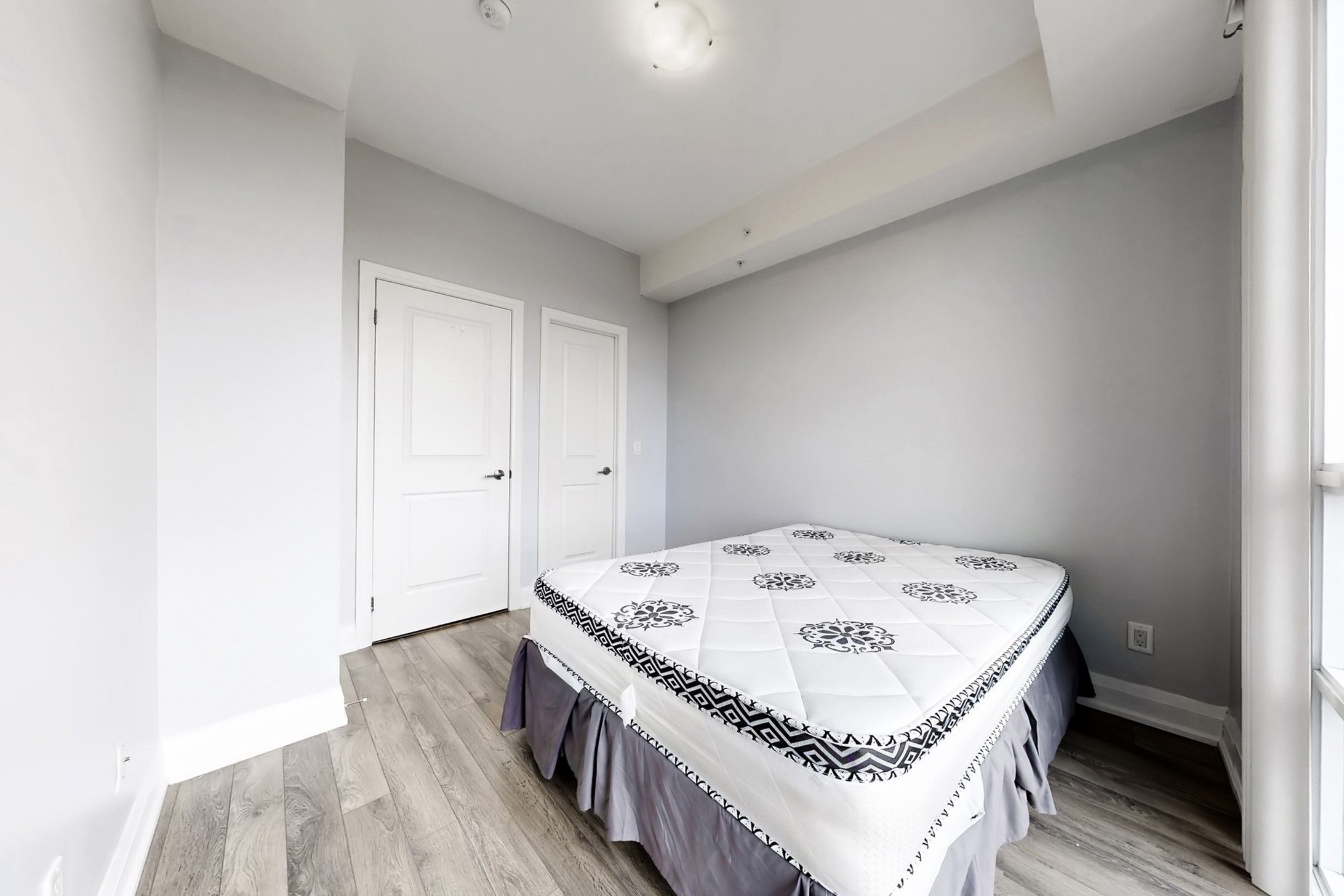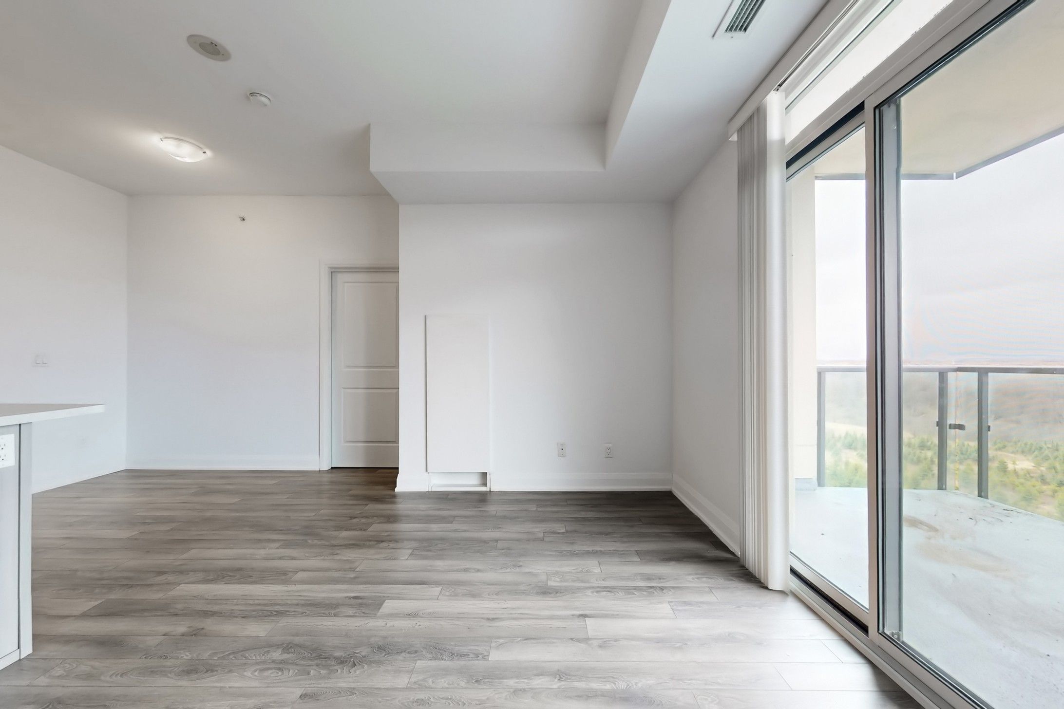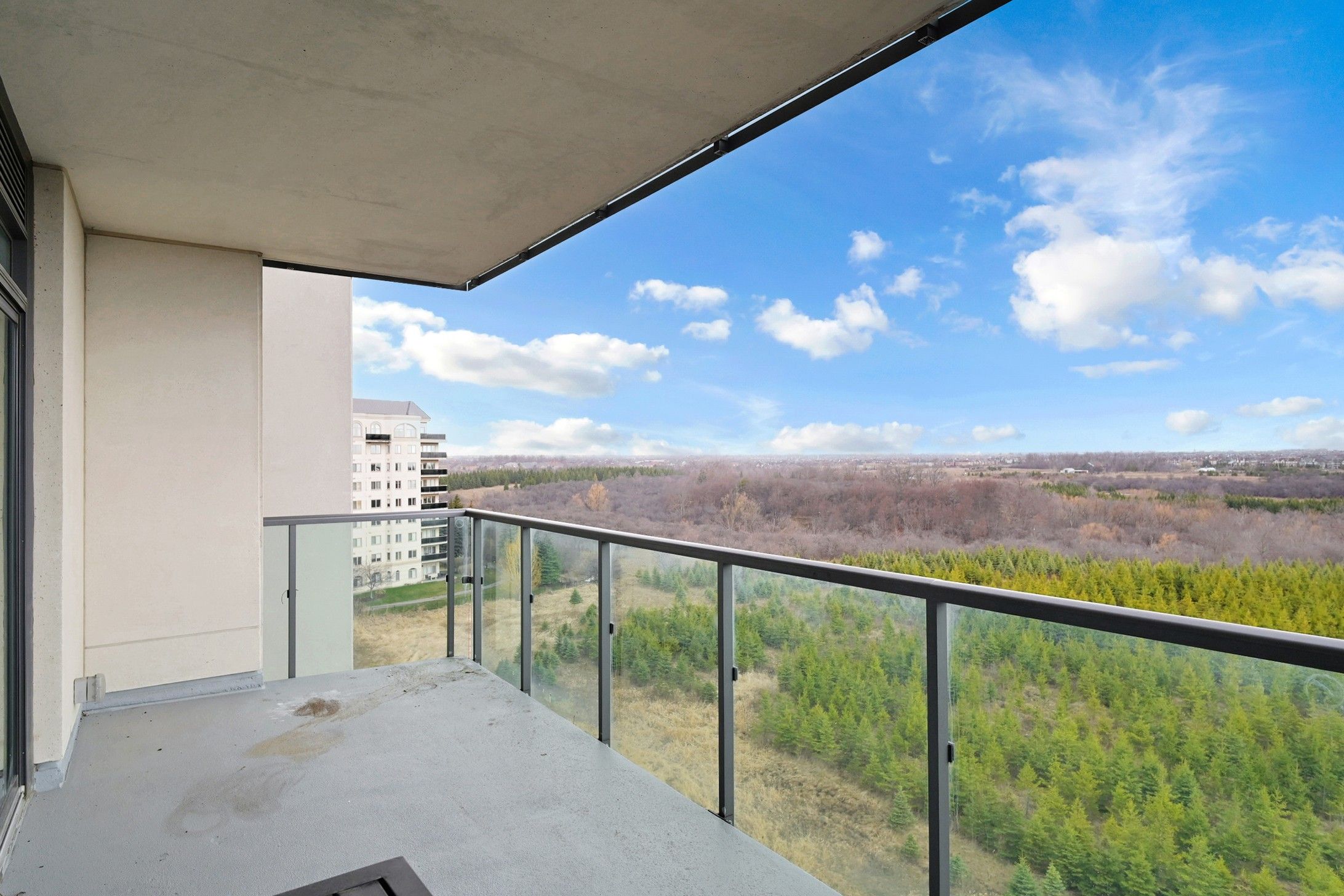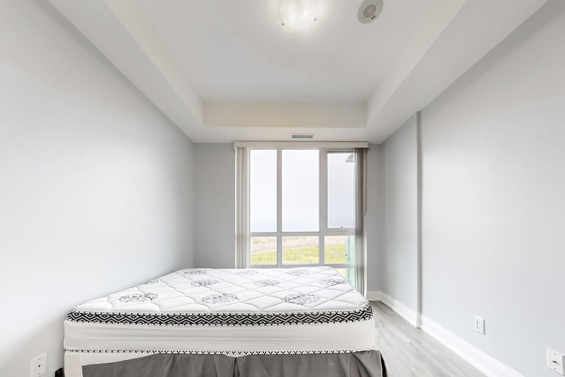Welcome home to this spacious, modern & desirable 2 bedroom, 2 bathroom suite, perfect setting to sit back, enjoy sunrise in the background of green conservation area while enjoying your morning coffee. This bright, open-concept unit features 9' ceilings, floor-to-ceiling windows, modern finishes, suite includes, stainless steel kitchen appliances, fridge, stove, dishwasher, microwave, clothes washer & dryer, laminate flooring throughout, convenient walk out to private balcony, do not miss the opportunity to call this one home. Enjoy the convenience of an underground parking spot, a storage locker, and access to premium building amenities like a fitness centre, party/meeting rooms, guest suites, and concierge service. Ideally located with quick access to hwy 407/427, transit, schools, shopping, and clairville conservation, this condo blends modern comfort with everyday convenience.