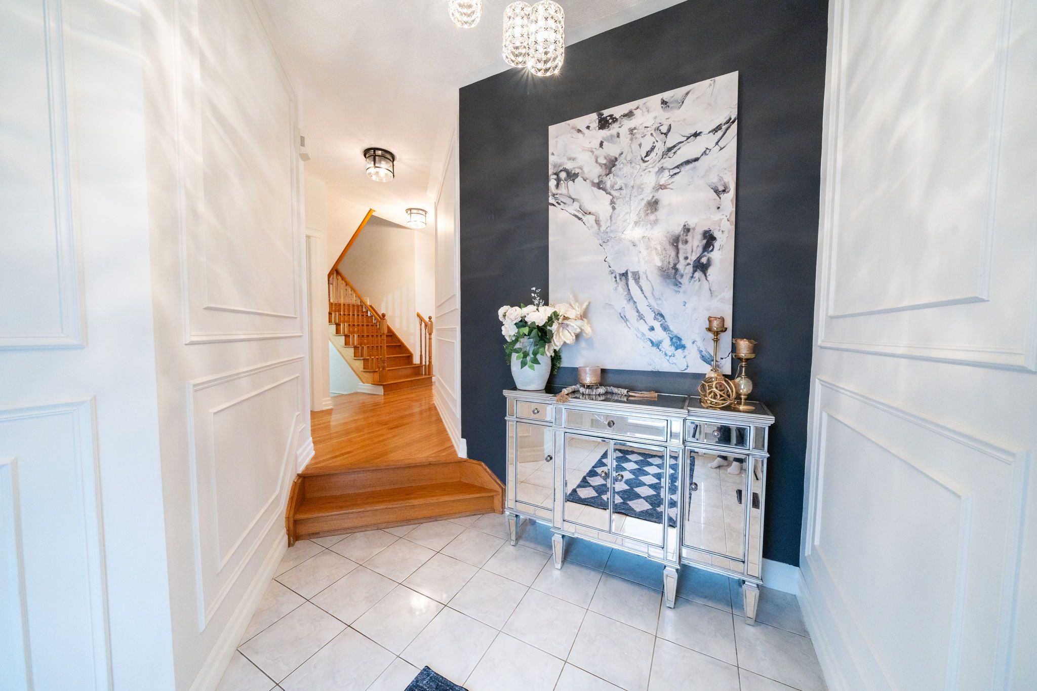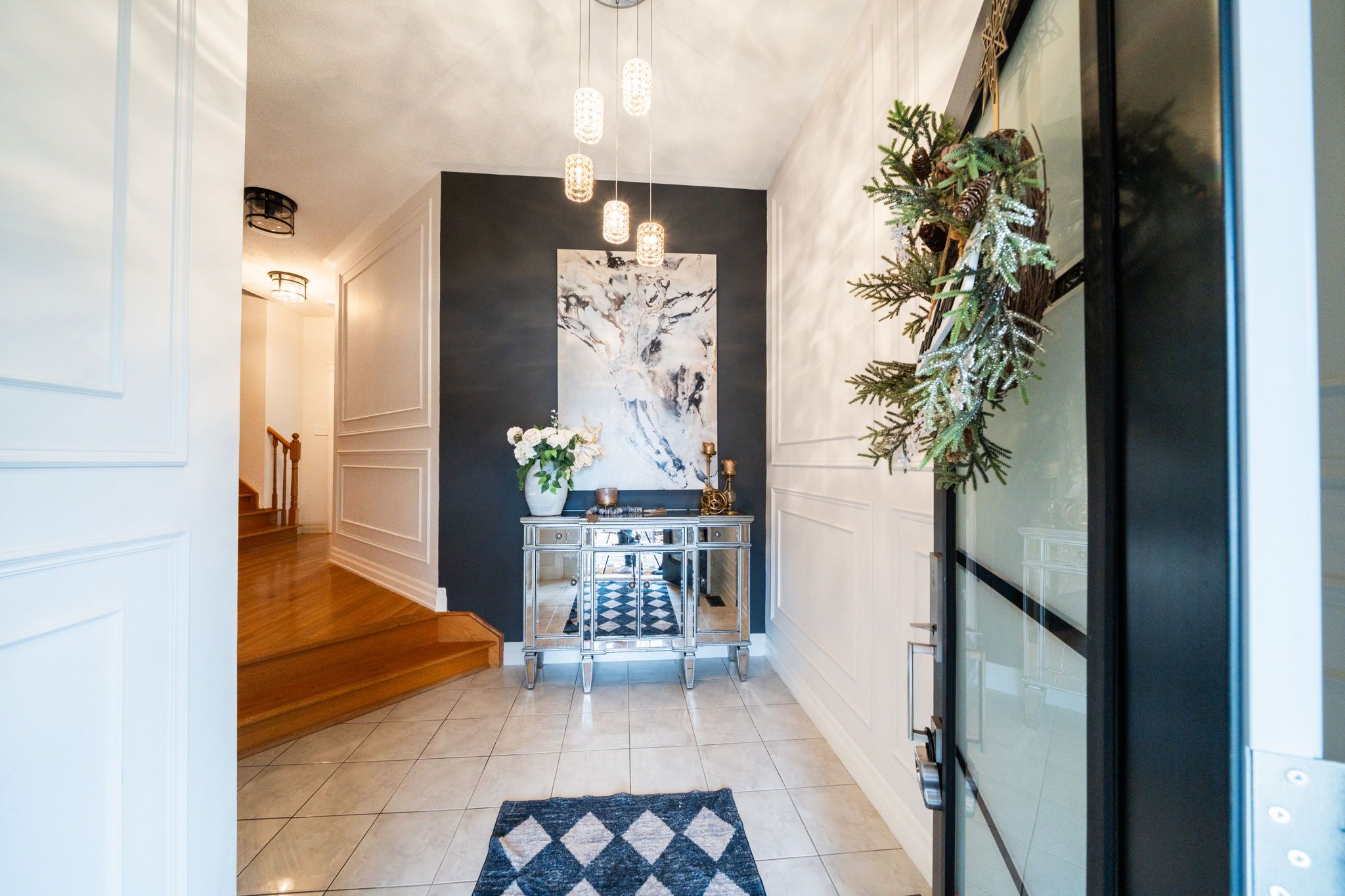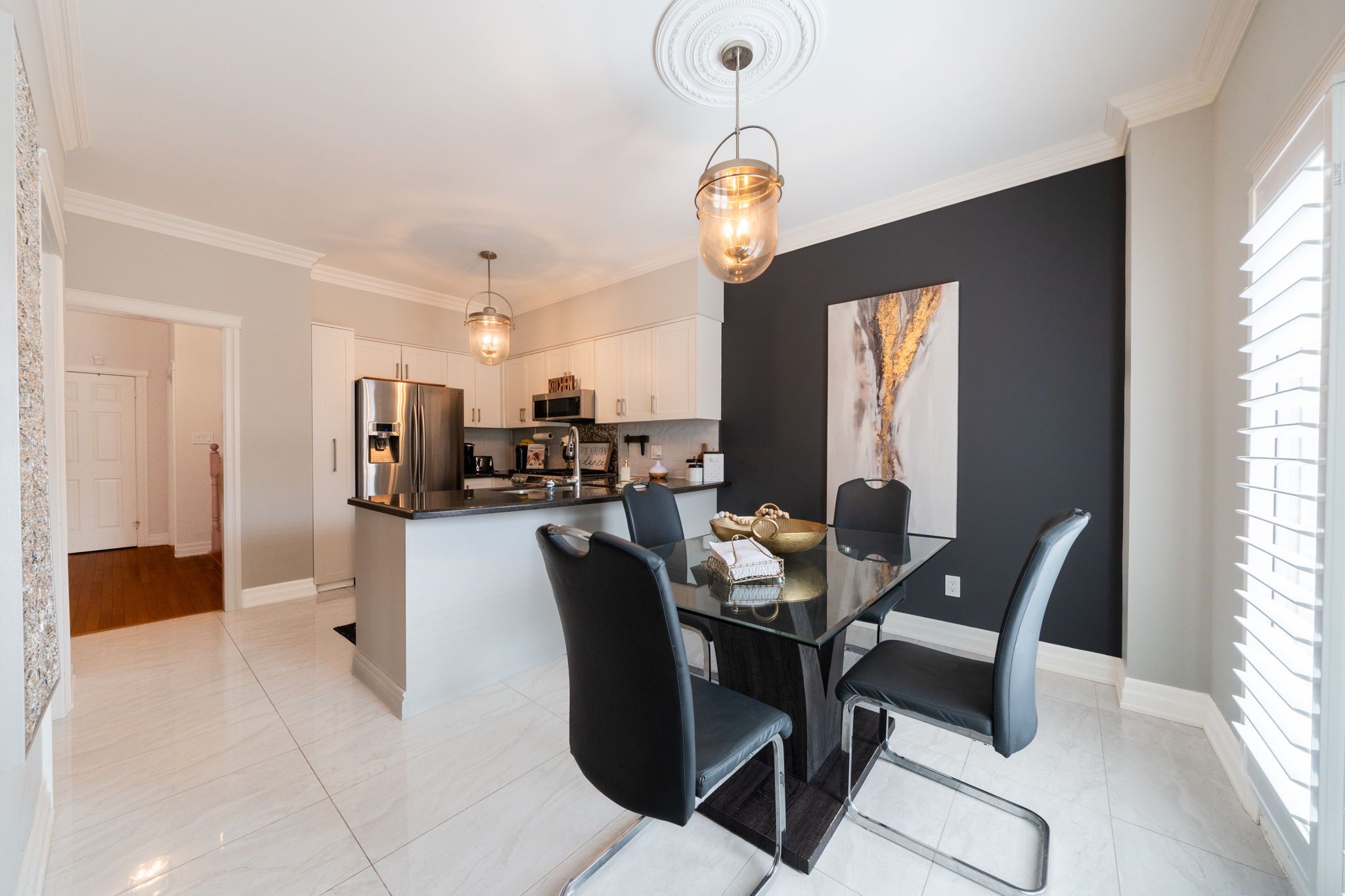 Beautiful 4-bedroom brick home with a finished basement in the highly sought-after college manor! Bright, functional layout with hardwood floors and california shutters throughout. Features a spacious dining room with french doors, cozy family room with gas fireplace, and a modern eat-in kitchen with quartz counters, stainless steel appliances, gas stove, breakfast bar, and walk-out to a private landscaped backyard with deck-perfect for summer entertaining. Upstairs offers generously sized bedrooms, including a primary suite with double door entry, walk-in closet, and 4-piece ensuite. Separate garage entrance leads to a fully finished basement complete with a rec room, wet bar, 3-piece bath, and bonus office or workout space. Prime location close to top schools, magna centre, shopping, transit. A true turnkey family home ready to move in and enjoy.