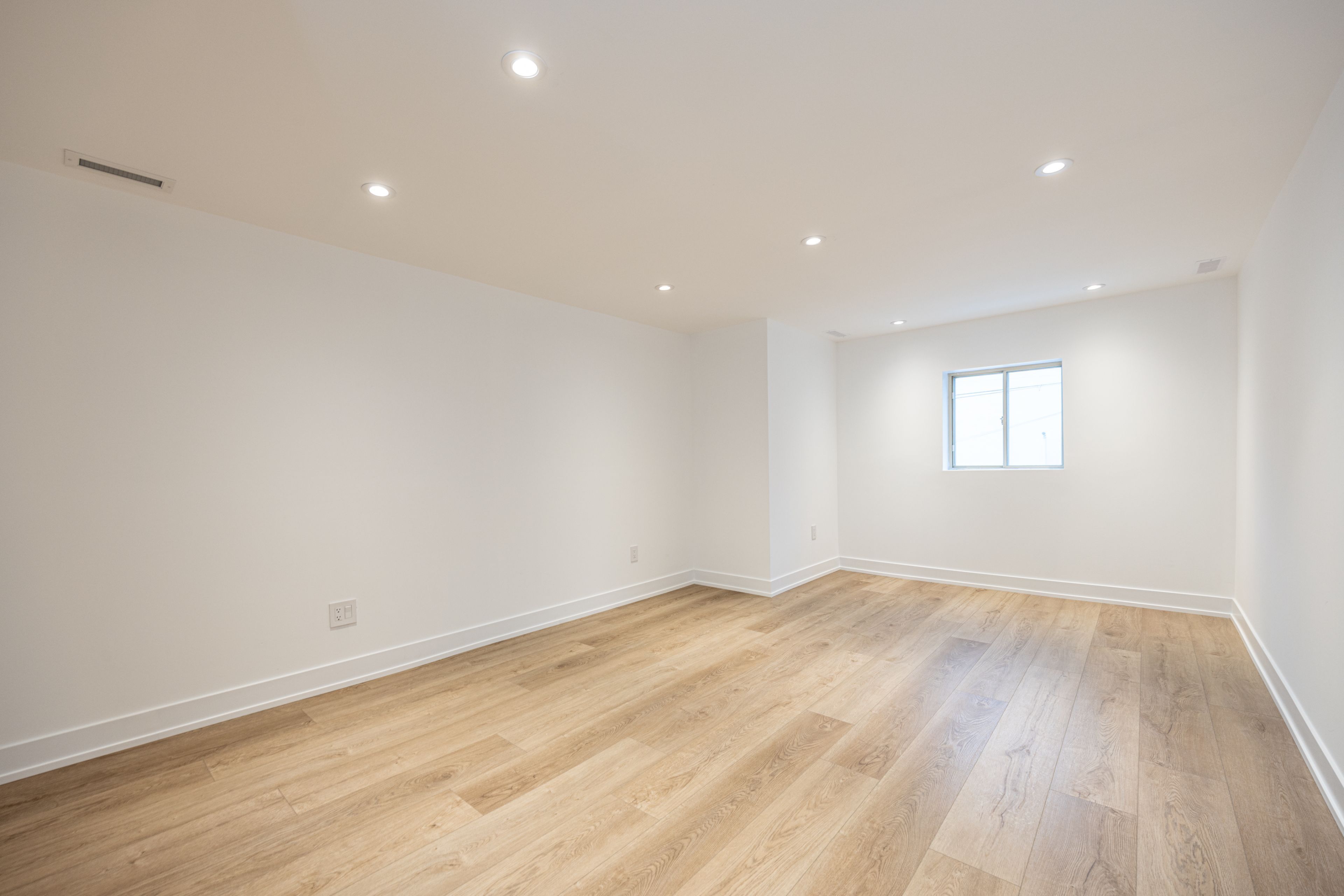 • Expansive living room with urban loft feel and exposed ductwork.
