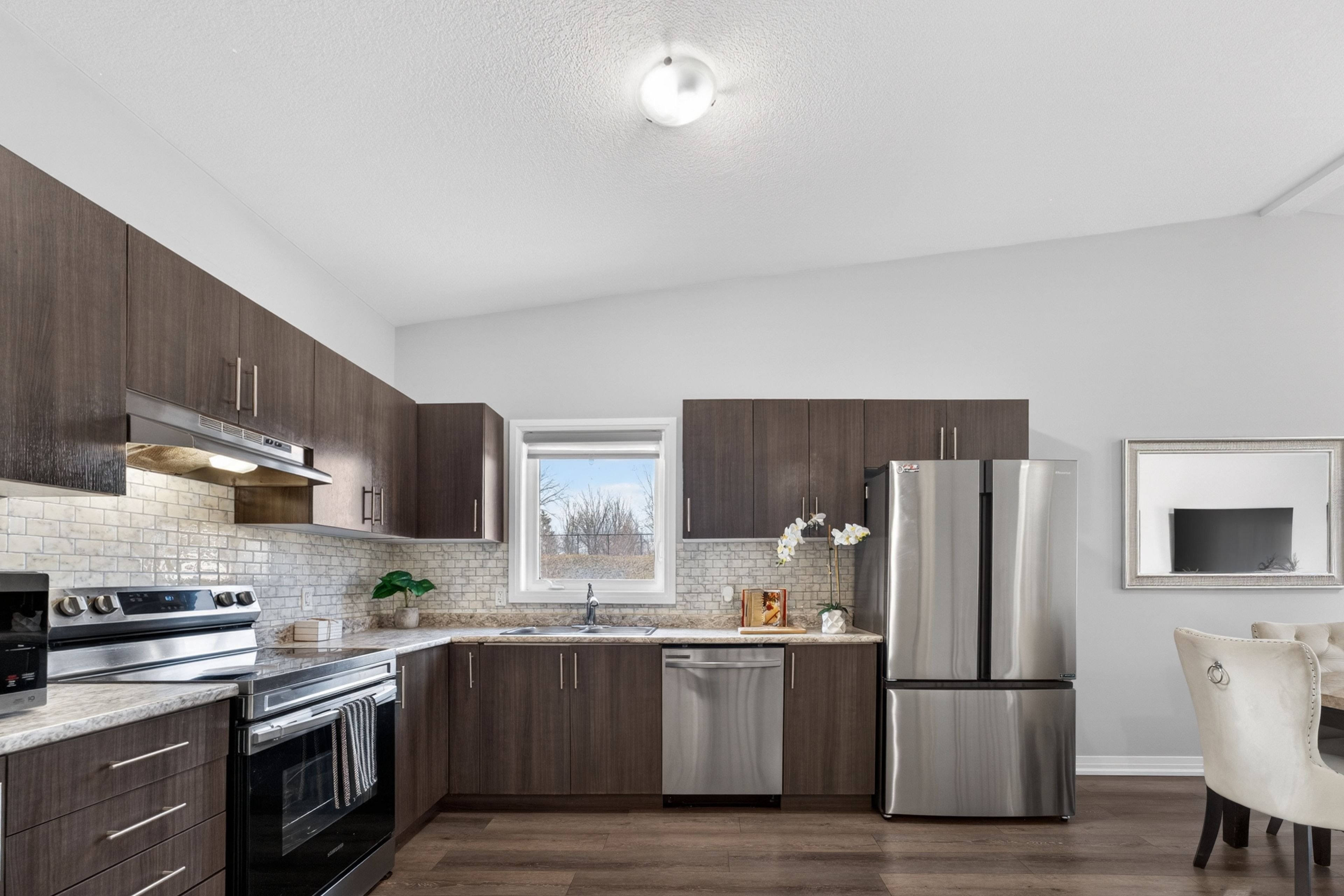 Rare bungalow-style townhouse with no stairs. Nearly new and hard to find in brantford. Welcome to 10-550 grey street, unit 10, located in the highly sought-after echo park residences by winzen homes in the family-friendly echo place neighbourhood. This beautifully maintained "oak" model offers approximately 1,200 sq ft of open-concept, single-level living. This 2-bedroom, 1. 5-bathroom end-unit features a bright, modern layout with no carpet throughout, ideal for low-maintenance living. The spacious kitchen is equipped with stainless steel appliances and flows seamlessly into the living and dining areas, perfect for entertaining. A standout feature is the private backyard, a rare offering for townhomes, providing valuable outdoor space for relaxing or hosting. As an end unit, enjoy additional natural light, enhanced privacy, and a quieter living experience. Parking includes 1 attached garage and 1 driveway space, plus ample visitor parking conveniently located nearby. Conveniently close to parks, schools, shopping, and everyday amenities, this home is ideal for downsizers, families, or anyone seeking modern, accessible living. Bungalow living. No stairs. End unit. Private backyard