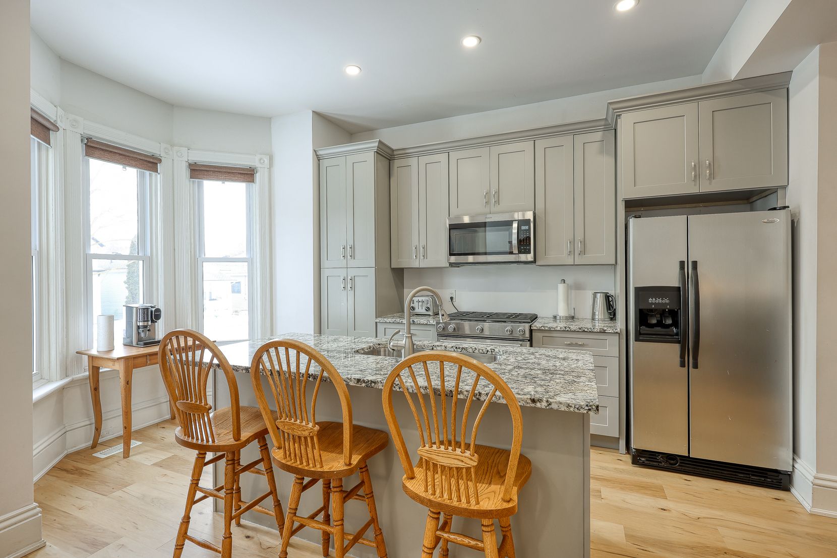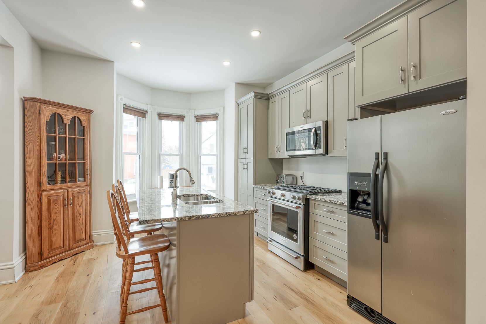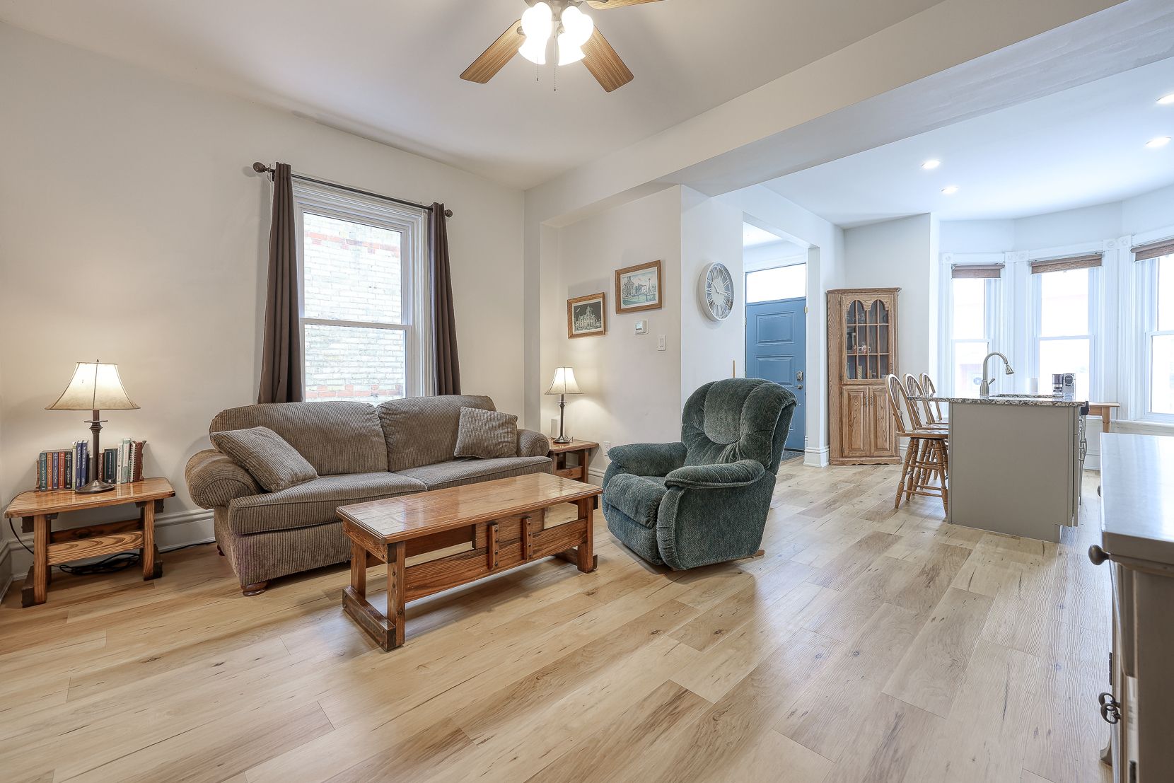Welcome to 550 mary street - a move-in ready home that makes stepping into ownership feel both exciting and manageable. With 1240 sq ft above grade of thoughtfully updated living space. This charming 1 1/2 storey home offers the kind of layout and upgrades that first-time buyers hope to find but rarely do. The main floor features a bright, open kitchen with granite countertops, stainless steel appliances, generous cabinetry, and a breakfast bar that naturally becomes the hub for morning coffee or casual dinners with friends. The living room is warm and welcoming, while the sunroom at the back adds flexible space for a home office, reading nook, or plant-filled retreat. A convenient 2-piece bath and main floor laundry make daily living practical and easy. Upstairs, you'll find three bedrooms along with a full 4-piece bathroom. The unfinished basement offers excellent storage and future potential. What truly sets this home apart is the long list of meaningful upgrades that give first-time buyers confidence, new ac (2021), wett-certified wood stove with chimney liner (2021), furnace components replaced (2021/2023), most windows replaced and exterior doors (2022), attic insulation upgraded to r60, basement re-insulated with rockwool and vapour barrier, soffit/fascia/eaves (2023), and partial foundation parging (2025). More previous updates include roof shingles, pex plumbing and a 200-amp electrical panel, the result is a home that is far more energy-efficient than its age suggests - reflected in efficient utility costs. Outside, you'll appreciate private yard space, and a location within walking distance to downtown shops, restaurants, and amenities. If you've been waiting for a home that combines character, updates, energy efficiency, and a manageable footprint - this is the one that lets you start building equity with confidence. Tap the multimedia button for floor plans, video and more!
