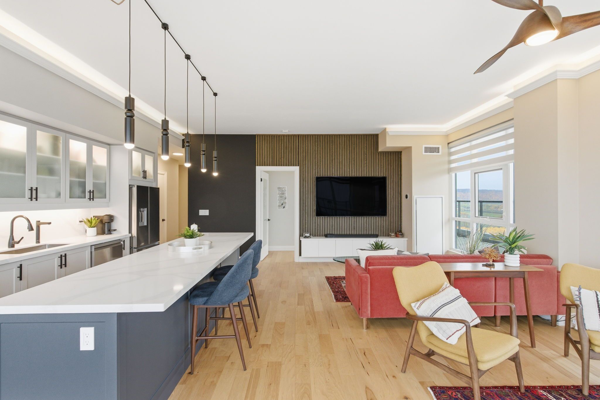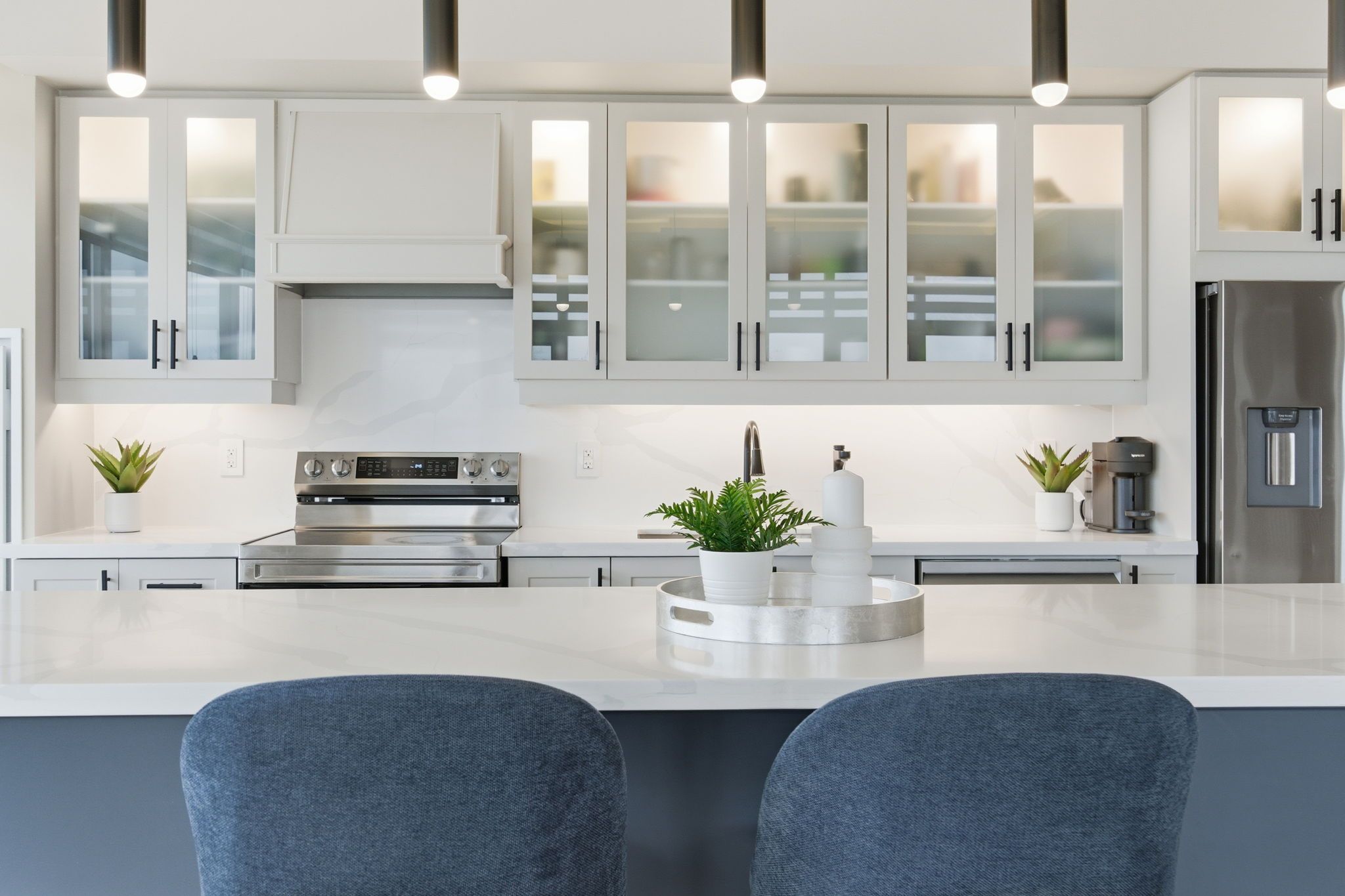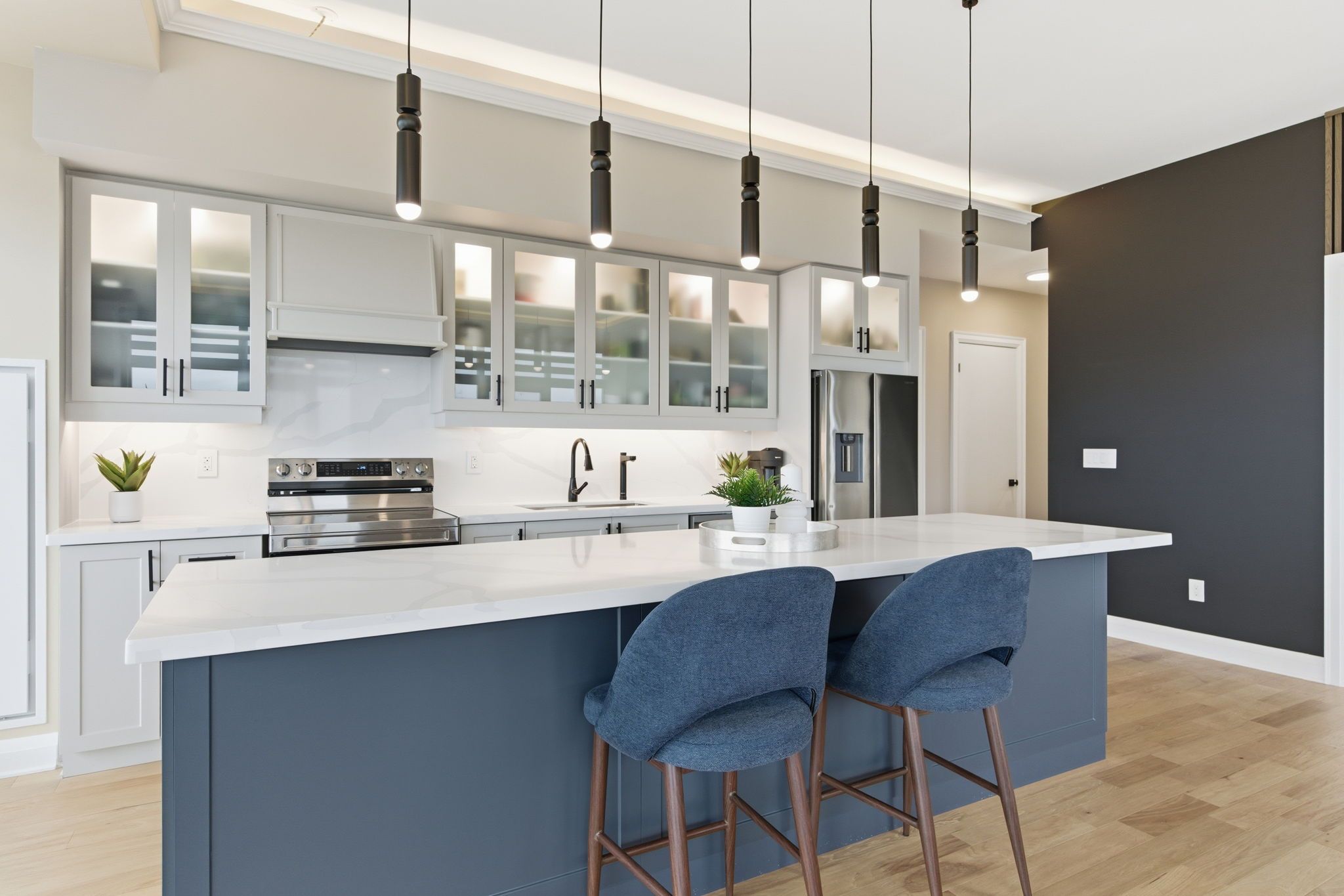 • New kitchen with quartz island and high-end stainless steel appliances.