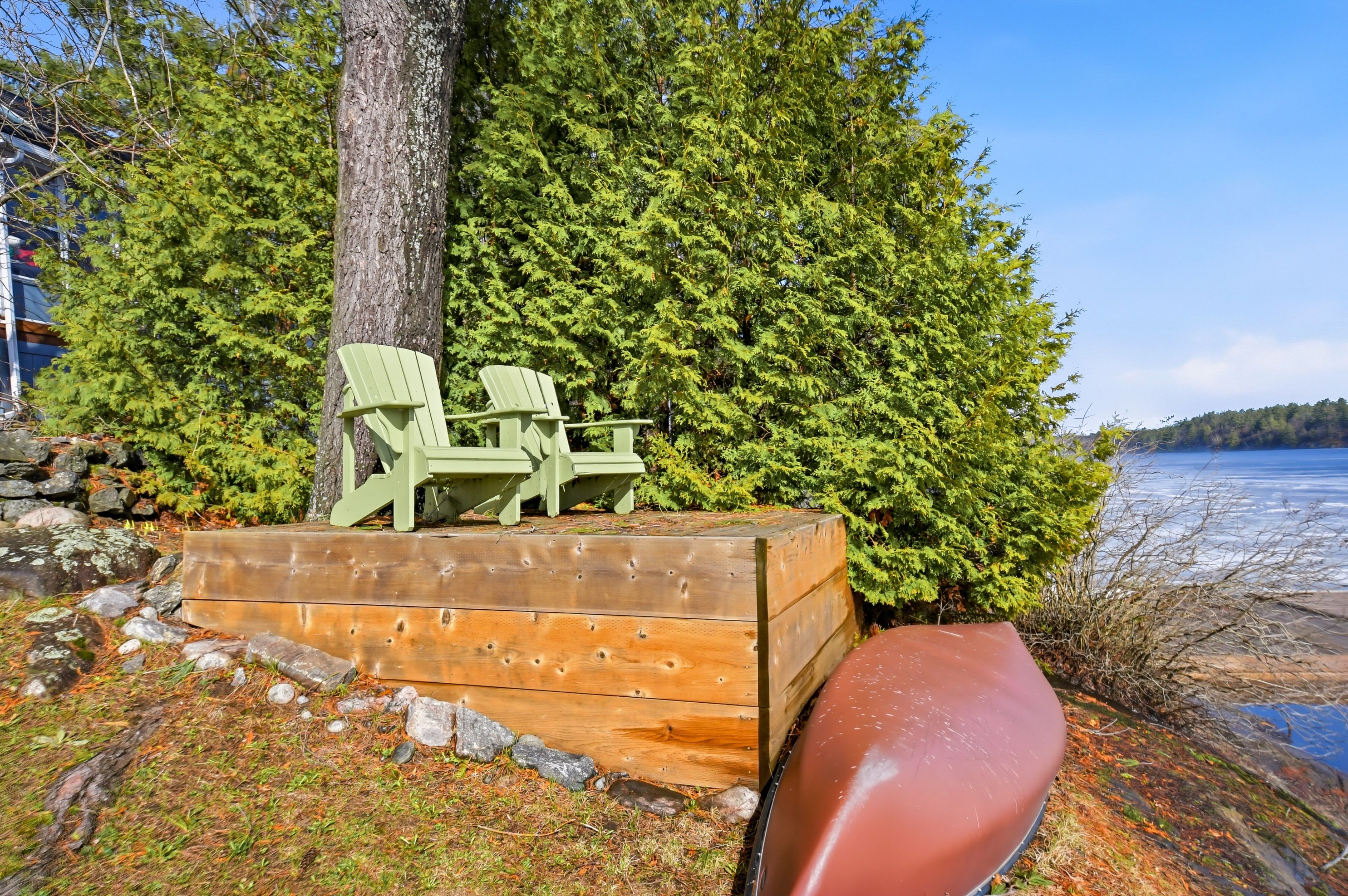 Welcome to this beautifully updated turnkey 1,164 sq ft bungalow cottage on gull lake, offering 75 ft of clean, sandy north-east shoreline and stunning lake views. Perfectly positioned to capture the morning sun, this 3-bedroom, 1-bathroom cottage blends classic muskoka charm with modern updates. Inside, the bright open-concept kitchen, dining, and living room feature large windows that fill the space with natural light and showcase picturesque lake views. The kitchen offers ample cabinet space and island seating, perfect for entertaining or casual family meals. Just off the main living area is the inviting muskoka room with wood ceilings and large windows, providing a beautiful place to relax while enjoying peaceful waterfront scenery. The cottage layout includes two bedrooms at the back and a primary bedroom at the front featuring views of gull lake, along with a 3-piece bathroom. A newly renovated laundry room features extensive built-in cabinetry and functions well as a walk-in pantry and storage area. Step outside to a large deck with glass railings off the muskoka room, leading to new steps down to the water and a spacious dock with pergola, ideal for swimming, boating, and relaxing at the lake. The property offers a long driveway with plenty of parking and a spacious shed. A charming bunkie with wood walls and ceilings, power, and a bedroom loft provides great extra sleeping space, and a cool hang out spot for kids and overflow guests. Nearby the sports court provides added entertainment and activity. A strategically positioned outhouse with a composting toilet offers convenience for bathroom breaks. Serviced by municipal water, natural gas, and septic, the cottage offers year-round convenience. Located less than 3 minutes to town and amenities, and close to a beautiful park with tennis courts, baseball diamond, playground, beach, and volleyball court, this property offers the perfect balance of peaceful waterfront living and convenience.