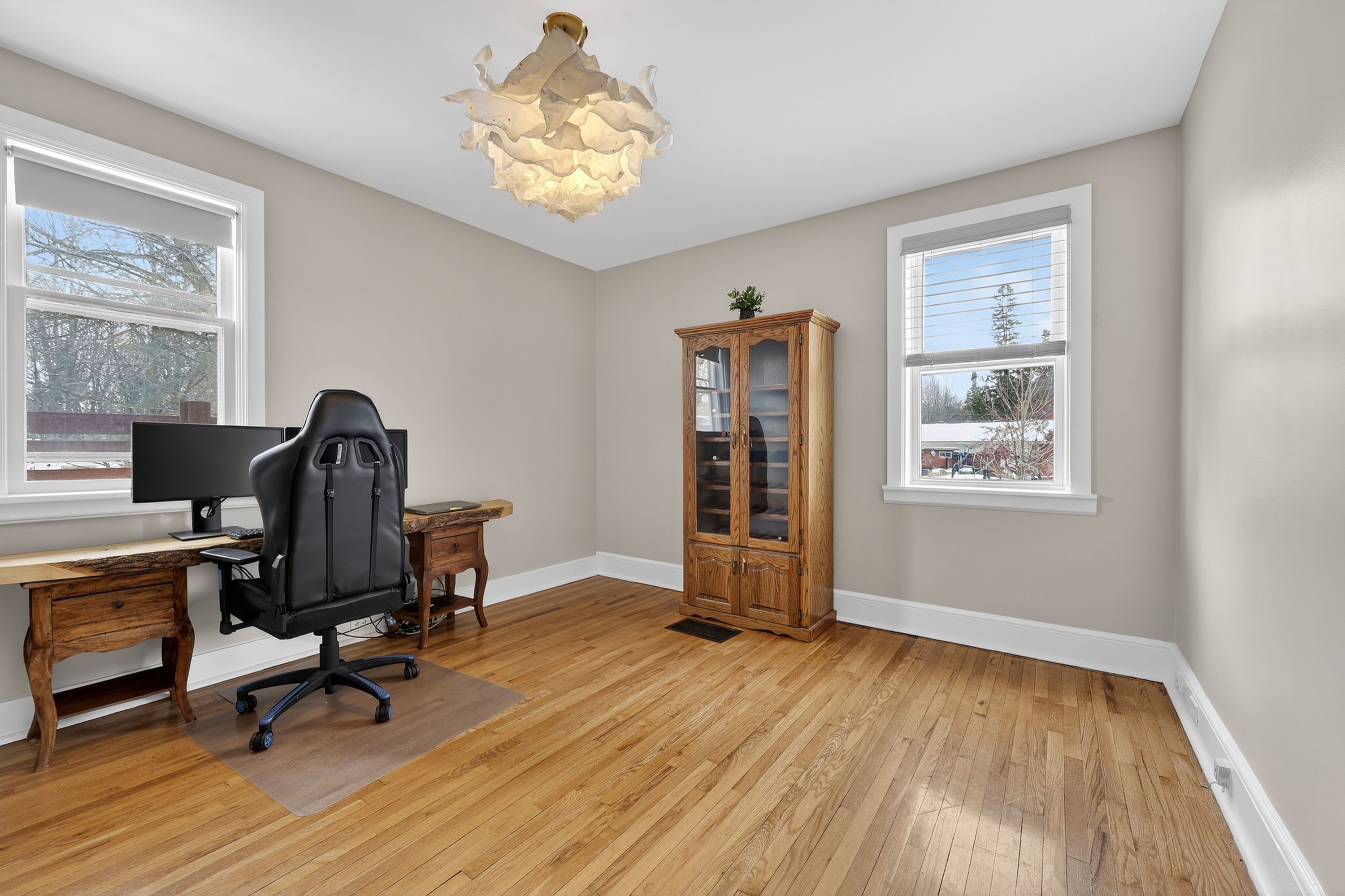 • Versatile main floor bedroom for guests or home office use.