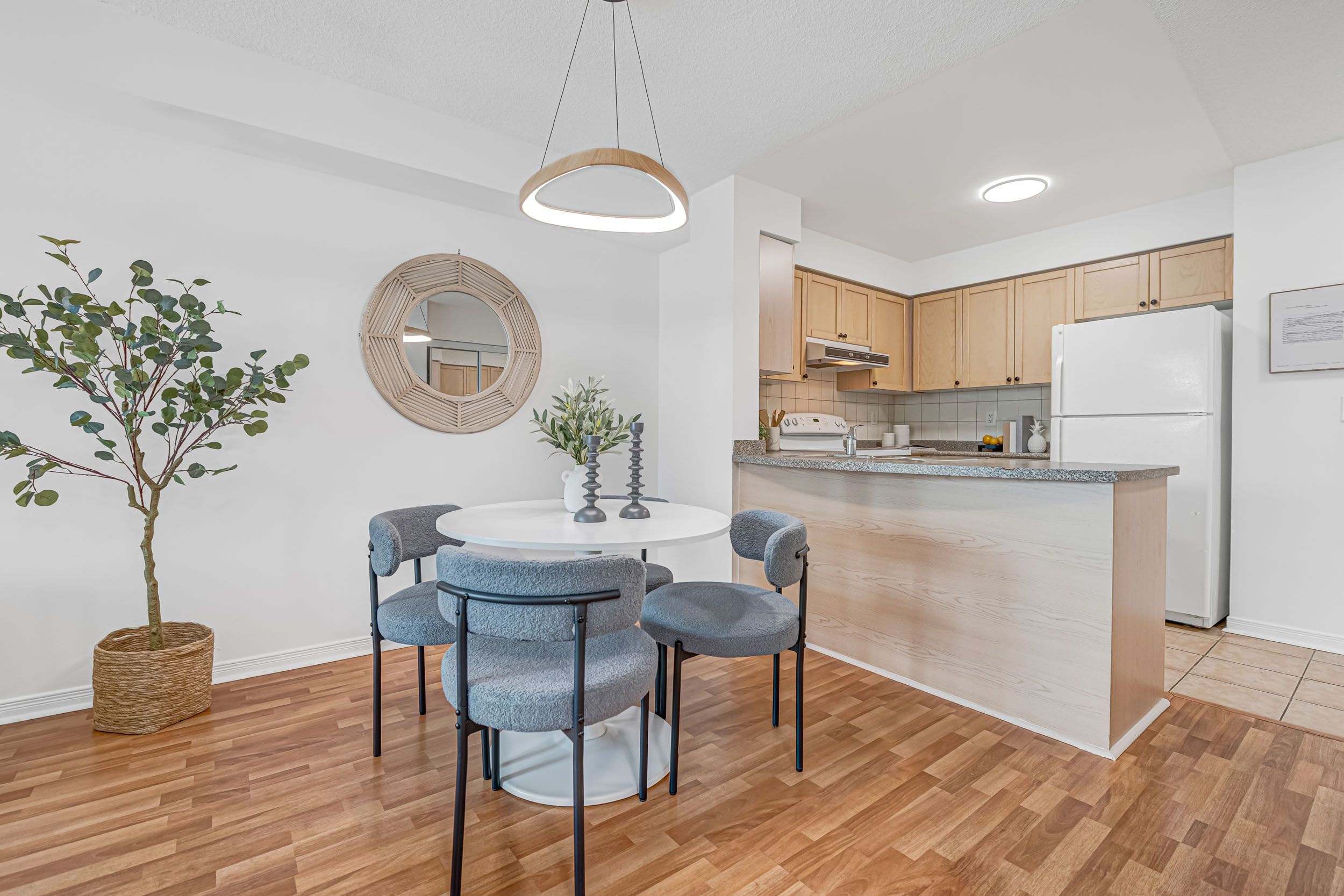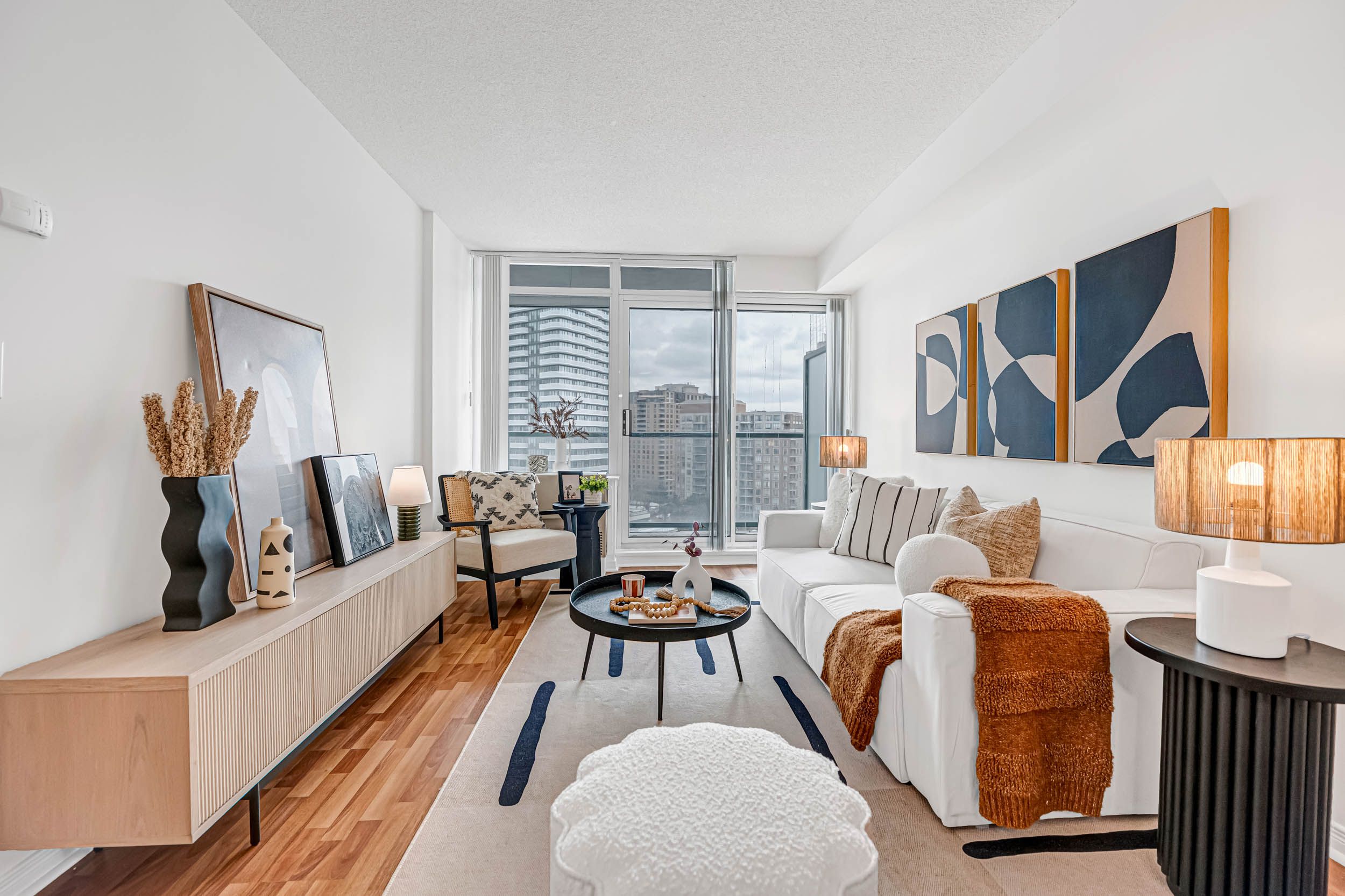 Welcome to this bright and beautifully staged 1-bedroom condo located in the highly sought-after yonge & sheppard community. Freshly painted and upgraded with brand new light fixtures, this east-facing suite offers an open-concept layout with floor-to-ceiling windows that fill the space with natural light and showcase stunning city views. Featuring a functional living and dining area with warm laminate flooring, a modern kitchen with ample cabinetry and a convenient breakfast bar, and a spacious bedroom with large windows and direct access to the balcony. Enjoy your morning coffee on the private balcony while taking in the sunrise. Includes 1 underground parking space and 1 locker for added convenience. Prime location steps to subway, shopping, restaurants, parks, and all essential amenities. Ideal for first-time buyers, professionals, or investors!