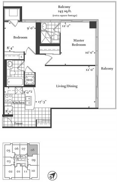 • Large 245 sq ft wrap-around balcony with 2 walk-outs.