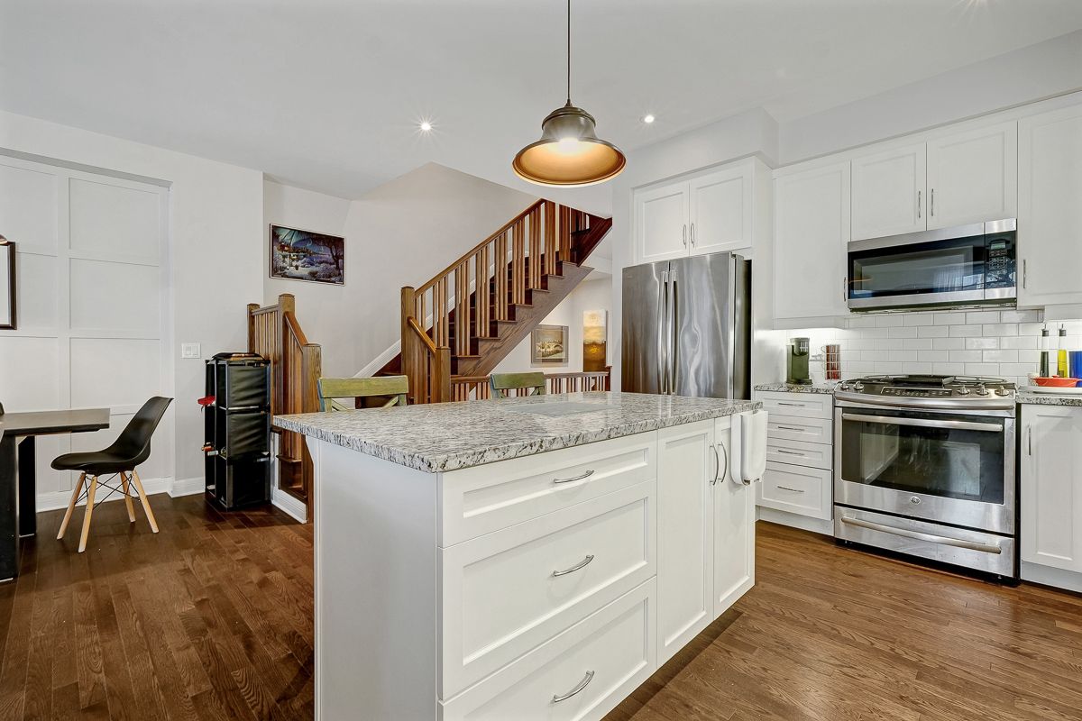 • Gourmet kitchen features granite countertops and stainless steel appliances.