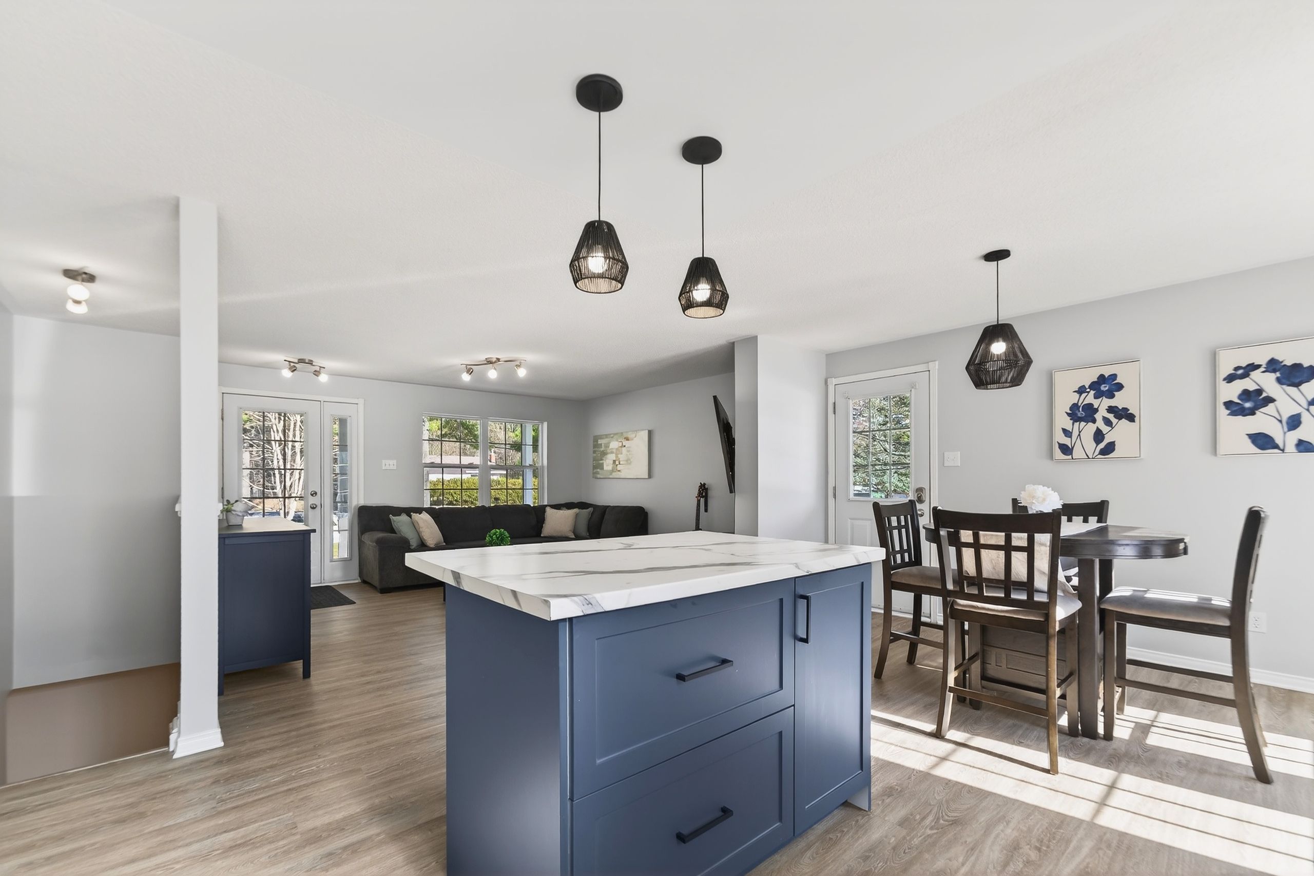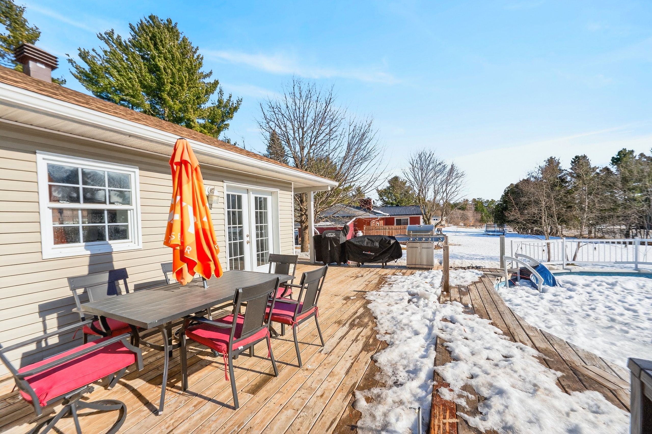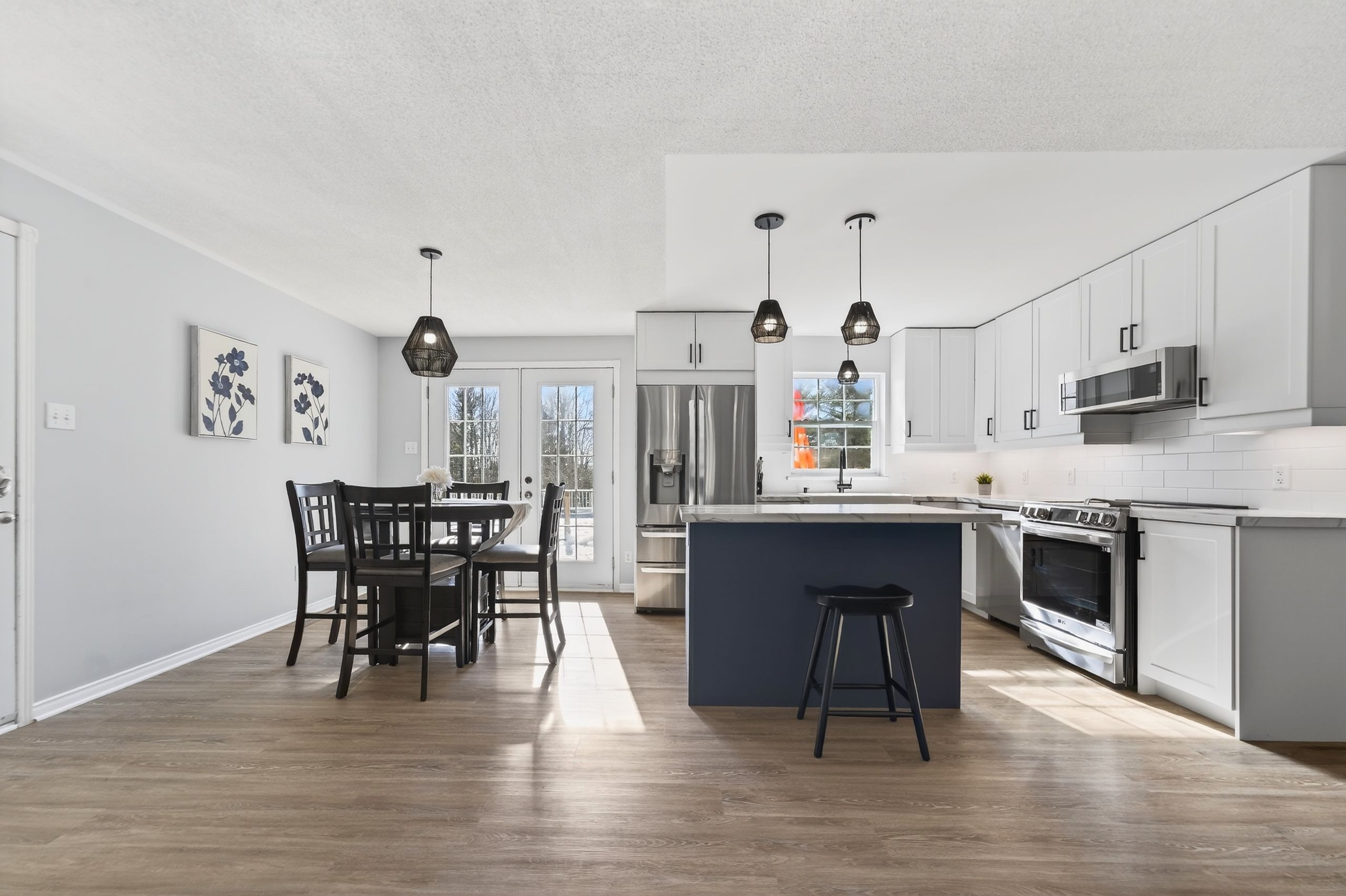 This detached bungalow is located in a prime location situated across the road from white lake & the boat launch. Custom detached garage(2022) is a showstopper!! (30ft x 50ft & 16. 5ft cathedral ceiling, fully insulated & drywalled, w/a loft(pine), heated/cooled & 100 amp service). This home sits on a 1 acre lot w/mature treeline across the back & stunning sunsets views! Wrap around deck w/new armour stone gardens(2025) shows beautifully in the summer. Open concept main floor offers a great space to entertain or hangout w/family. Fully renovated kitchen(2025) w/new stainless steel appliances, modern white cupboards, subway tile backsplash, farmhouse sink & island w/breakfast bar. New vinyl plank flooring throughout the main level. Side door leads to your wrap around deck & back door to the beautifully landscaped backyard w/deck & above ground pool. Lower level features spacious family room w/upgraded pot lights & the 4th bedroom. 5 piece main bath updated(2020). A/c(2022), propane furnace(2022). Garage has new heat pump & propane furnace. Home freshly painted(2026). Home is very dry- no sump pump ever needed. 3 sheds included- 1 w/power. Home has 200 amp service. No rental items. Too much to list, w/$200,000 in upgrades. See attached feature sheets!