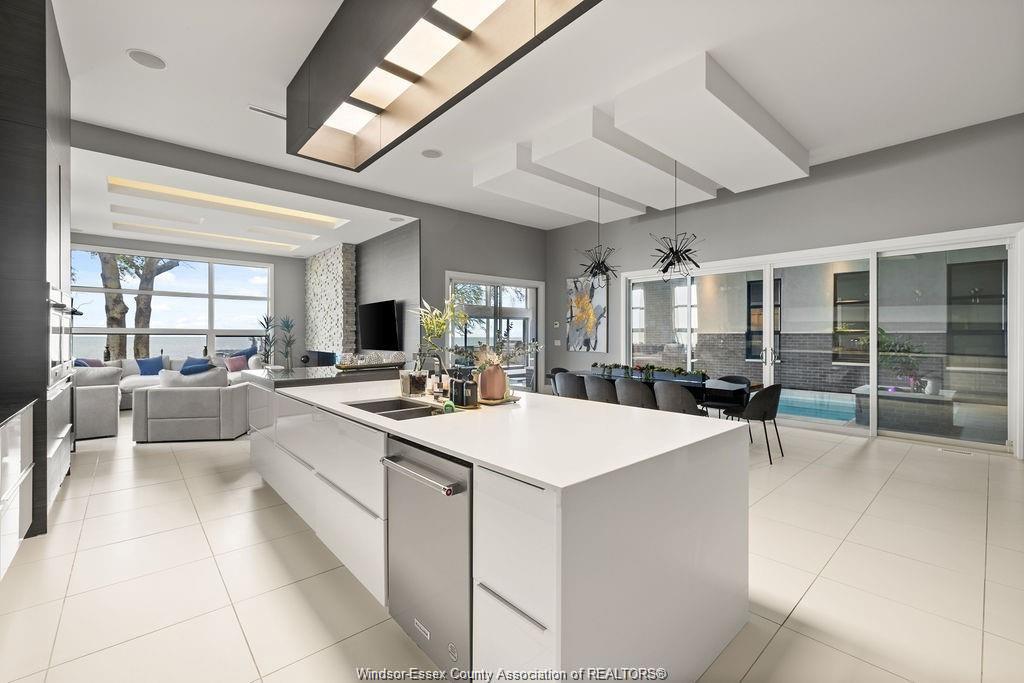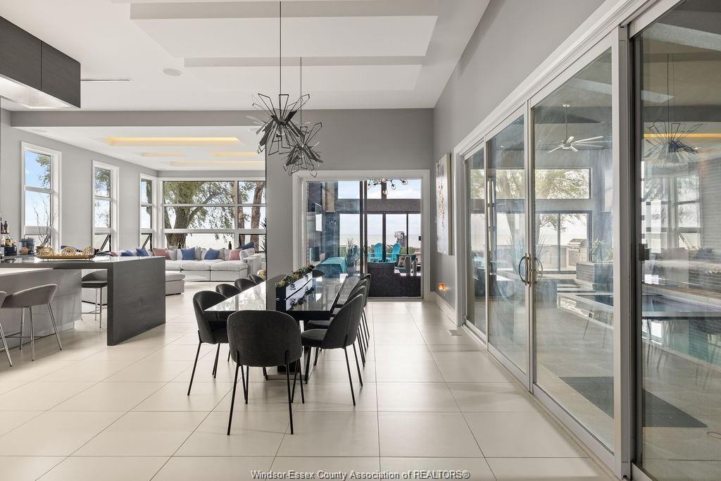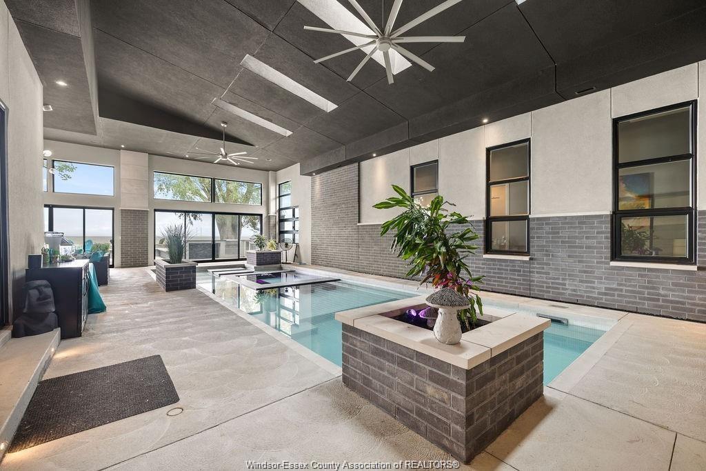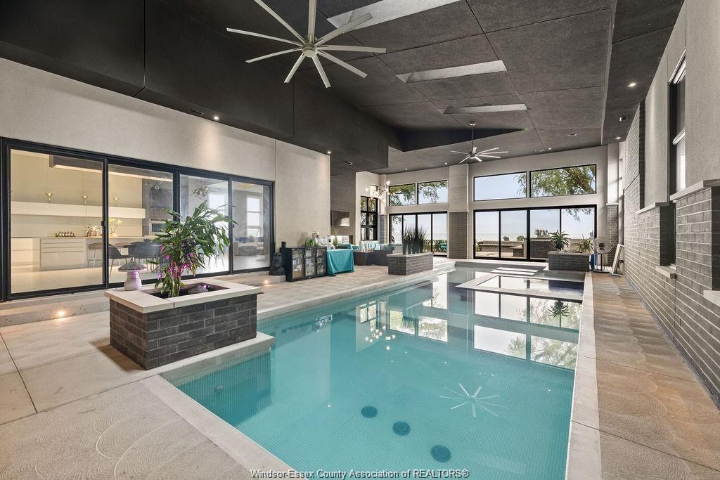 Absolutely stunning 3,500 sq ft custom-built ranch with panoramic waterfront views. Surrounded by water, this home was thoughtfully designed for both relaxation and entertaining, this home features an open-concept layout with a chef’s kitchen, large pantry and island with high-end appliances. The spacious dining and living rooms share a dual fireplace with year-round in the indoor pool with hot tub, swim-up bar and lounge. Three spacious bedrooms each include private ensuites, while the luxurious primary retreat offers a spa-inspired bath with curbless rain shower, soaking tub, walk-in closet, and dressing room. Additional highlights include gym, heated floors, outdoor kitchenette, sunken firepit, and a state-of-the-art boat lift system with three 15,000 lb motorized lifts—ideal for any watercraft enthusiast. Attention to detail is incredible with this home, contact for a private viewing!