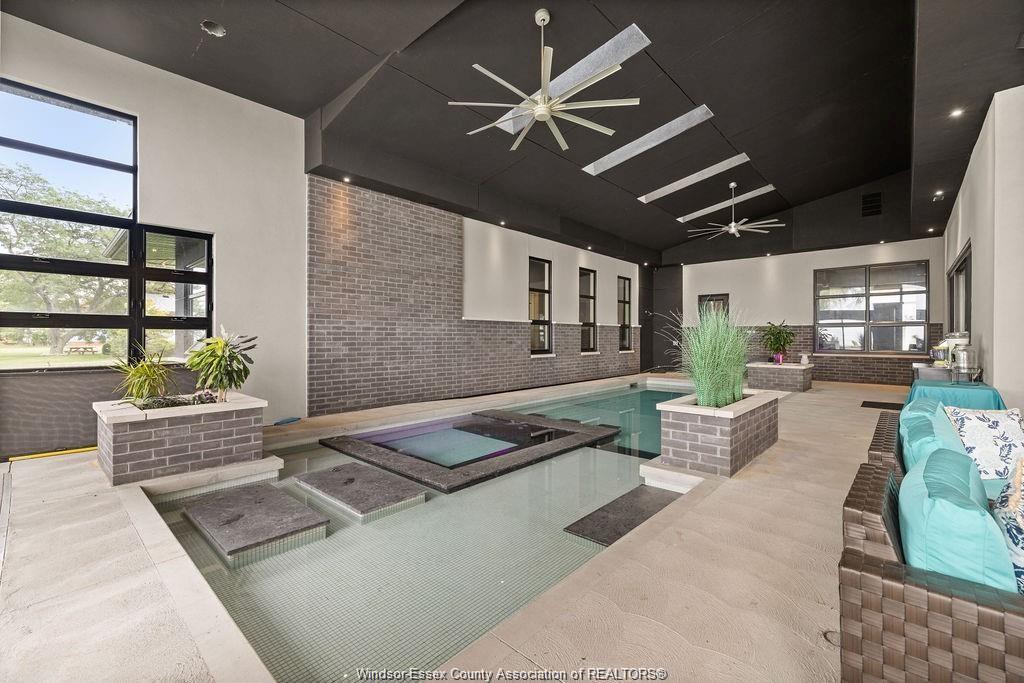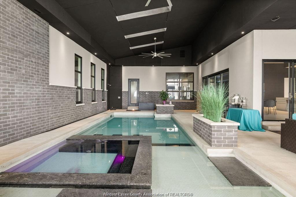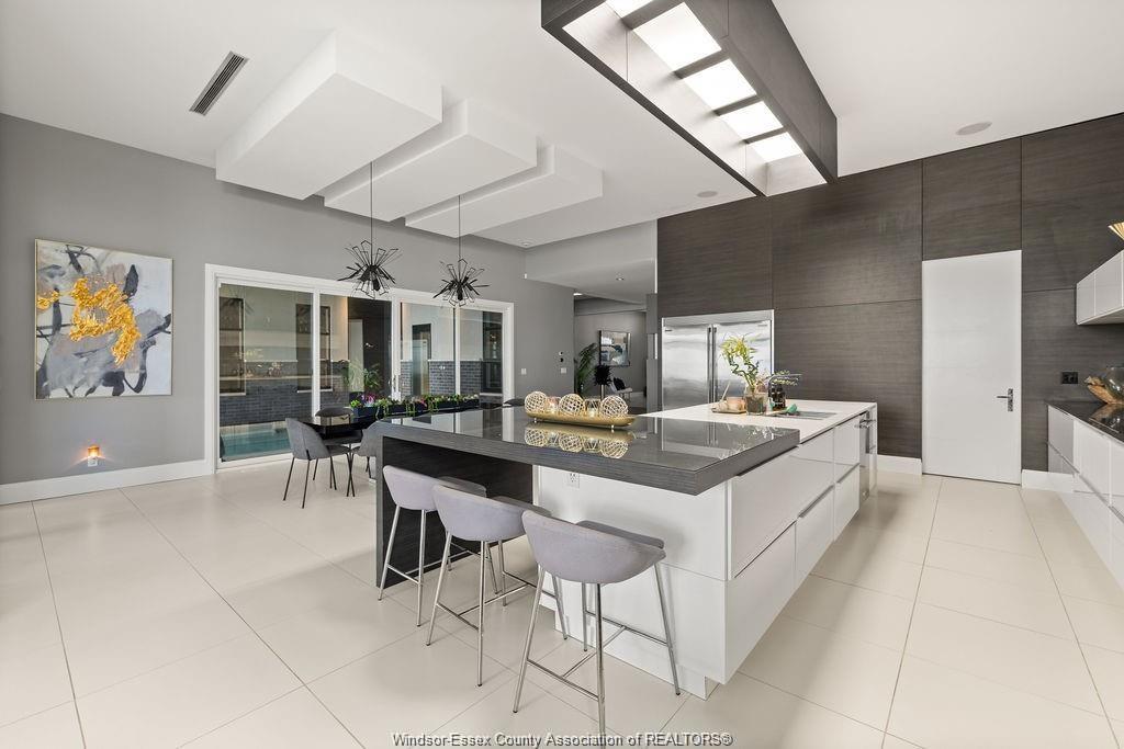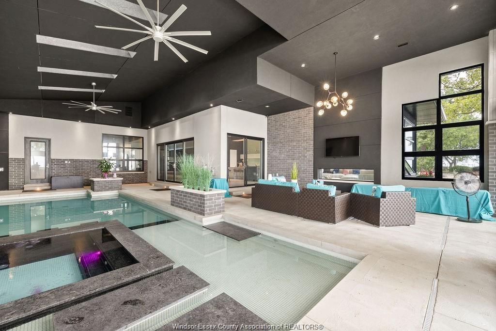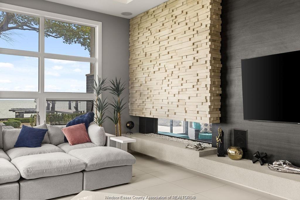 Absolutely stunning 3,500 sq ft custom-built ranch with panoramic waterfront views. Surrounded by water, this home was thoughtfully designed for both relaxation and entertaining, this home features an open-concept layout with a chef’s kitchen, large pantry and island with high-end appliances. The spacious dining and living rooms share a dual fireplace with year-round in the indoor pool with hot tub, swim-up bar and lounge. Three spacious bedrooms each include private ensuites, while the luxurious primary retreat offers a spa-inspired bath with curbless rain shower, soaking tub, walk-in closet, and dressing room. Additional highlights include gym, heated floors, outdoor kitchenette, sunken firepit, and a state-of-the-art boat lift system with three 15,000 lb motorized lifts—ideal for any watercraft enthusiast. Attention to detail is incredible with this home, contact for a private viewing!