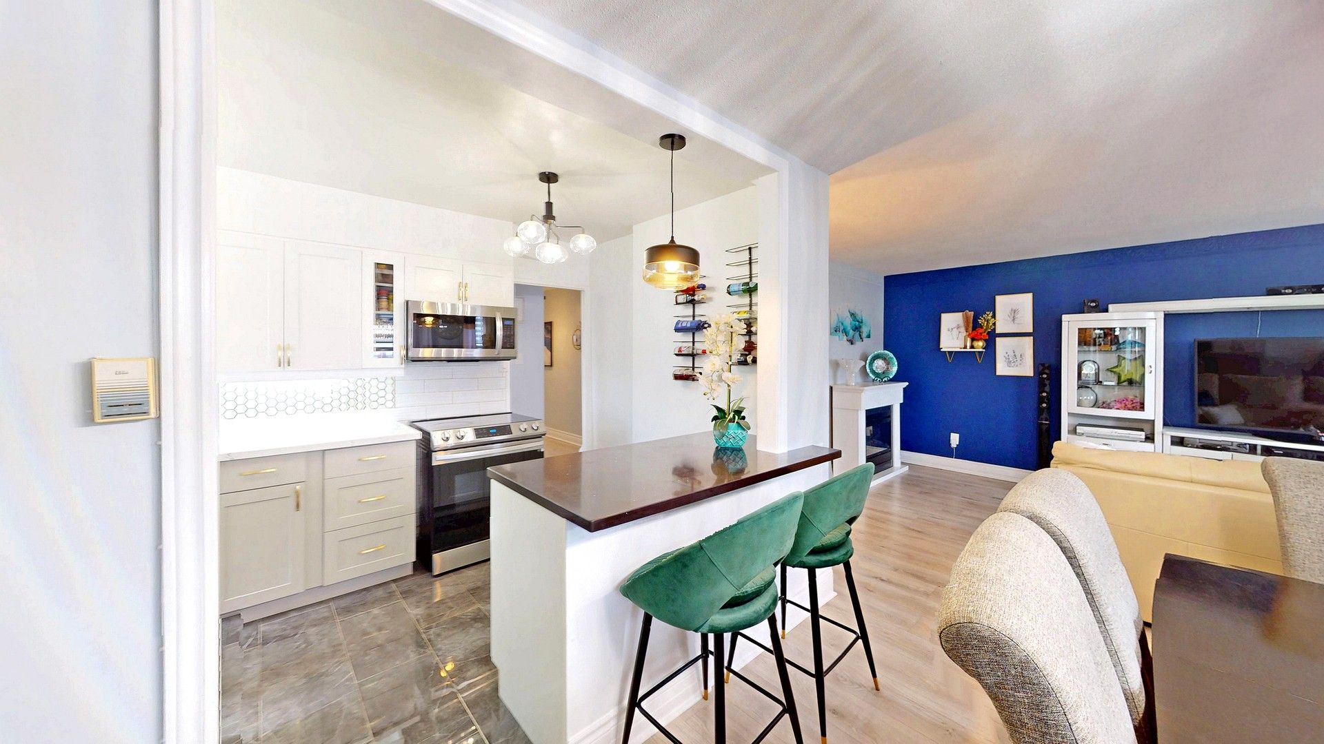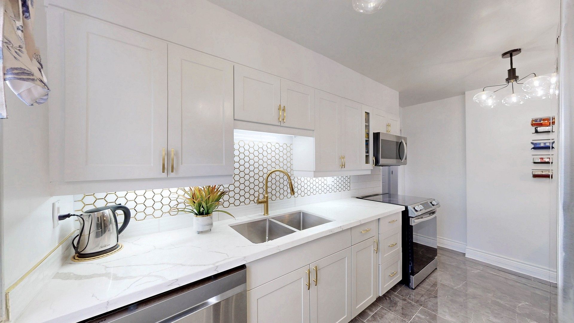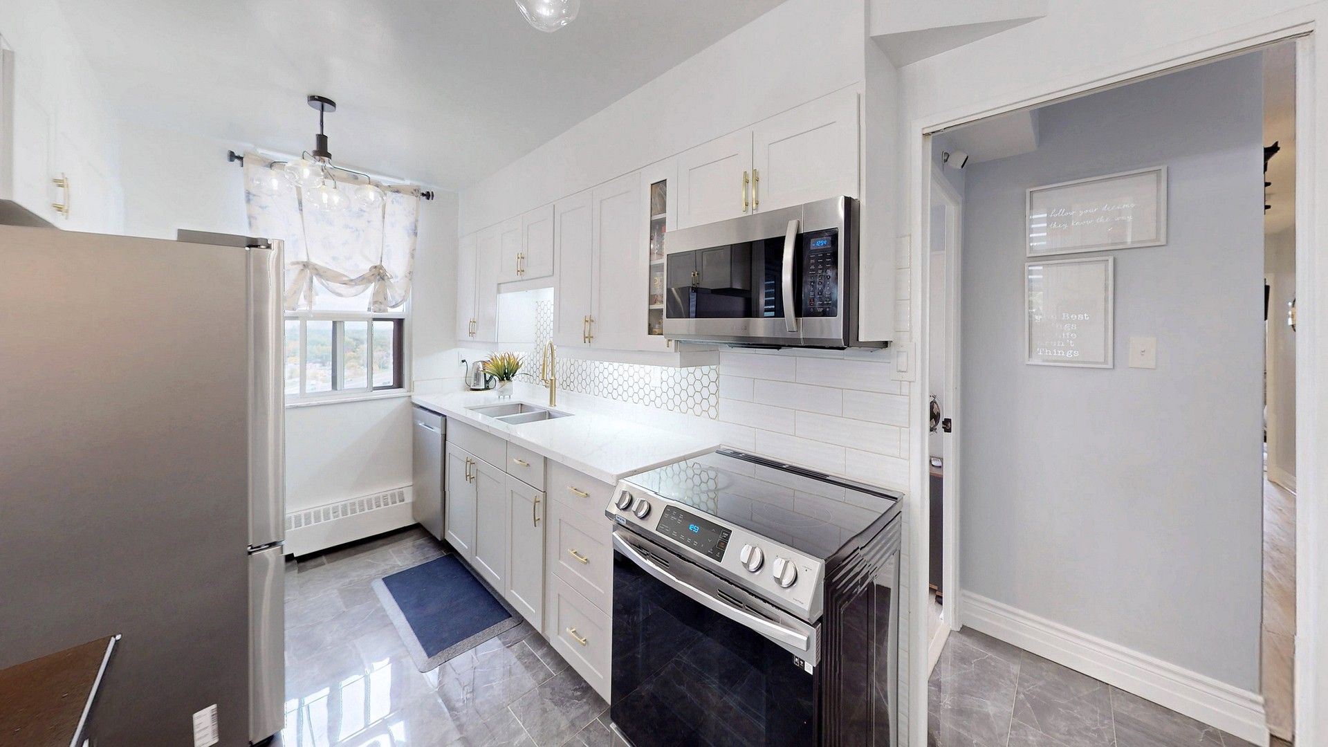 • Beautifully renovated 3-bedroom, 2-bath corner suite with modern, open living space.