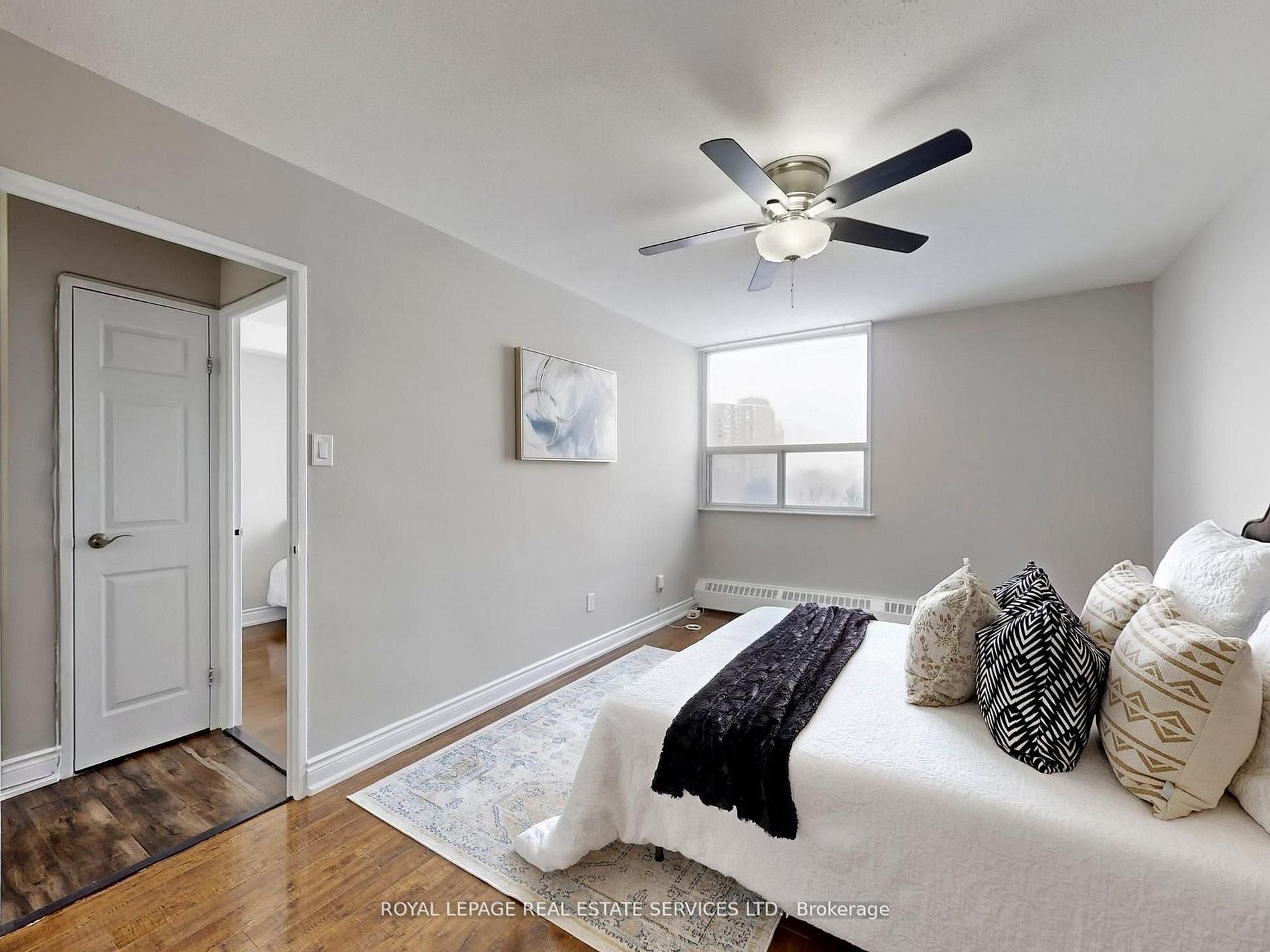 Welcome to suite 702-a beautifully updated, freshly painted 2-bedroom, 1-bathroom corner unit offering 1,100 sq. Ft. Of bright, open-concept living with underground parking. This inviting space features wide-plank neutral laminate flooring throughout and large windows that fill the living and dining areas with natural light, creating an ideal setting for both entertaining and relaxing. The upgraded eat-in kitchen showcases sleek white cabinetry, a modern backsplash, and stainless steel appliances. Both bedrooms are generously sized and finished with the same contemporary flooring for a seamless feel. Additional conveniences include side-by-side laundry, a large in-suite storage room, and a welcoming foyer with wide hallways. Enjoy your private balcony with open views and take advantage of the building's impressive amenities, including an outdoor pool, tennis court, gym, sauna, party room, visitor parking, and underground car wash. Perfectly located with easy access to transit, major highways, shopping, schools, medical centers, centennial park, and toronto pearson international airport, this corner suite offers exceptional light, convenience, and outstanding value. A must-see!