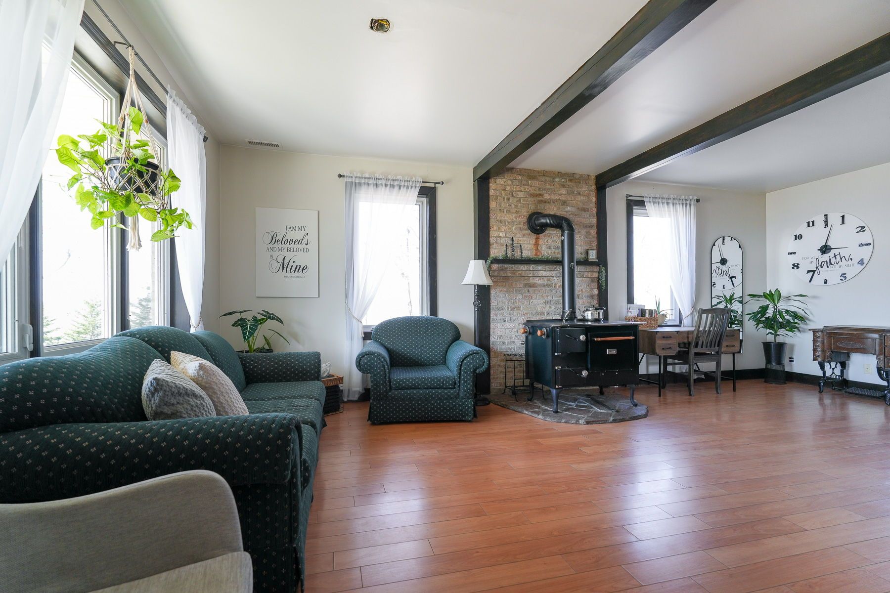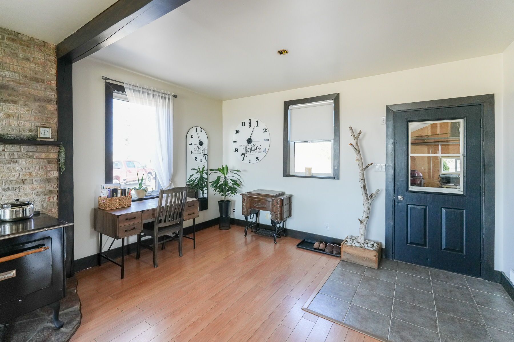 If your family has been dreaming of space, fresh air, and a property that actually does something, this is the one. Set on over four immaculate acres, this hobby farm is tidy, versatile, and ready to go, whether you're arriving with horses, hobbies, or simply a desire for more room to live. The barn, newly reinforced in 2024, means the hard work is already done. Five horse stalls, automatic waterers, and a hay loft make it fully functional from day one, while the decorative paddock fencing at the front of the property adds a handsome, established character to the setting. Pear, apple, and sour cherry trees have been planted and are on their way - a lovely start to something that will only get better with time. The two-storey, three-bedroom home is solid, well cared for, and genuinely appealing; it's the kind of house that feels right the moment you step inside. A large four-piece bath serves the upper floor, with room to add a powder room on the main level as the need arises. The substantial shop addition is one of the property's most exciting features - keep it as a serious workspace, convert it to a hobby studio, or open it up into additional living area. The potential here is real and the bones are excellent. Everything is neat, well laid out, and move-in ready - with plenty of room to grow into it at your own pace. For an active family ready to embrace a different kind of lifestyle, this property checks every box - and then opens up a few you hadn't even thought of yet!
