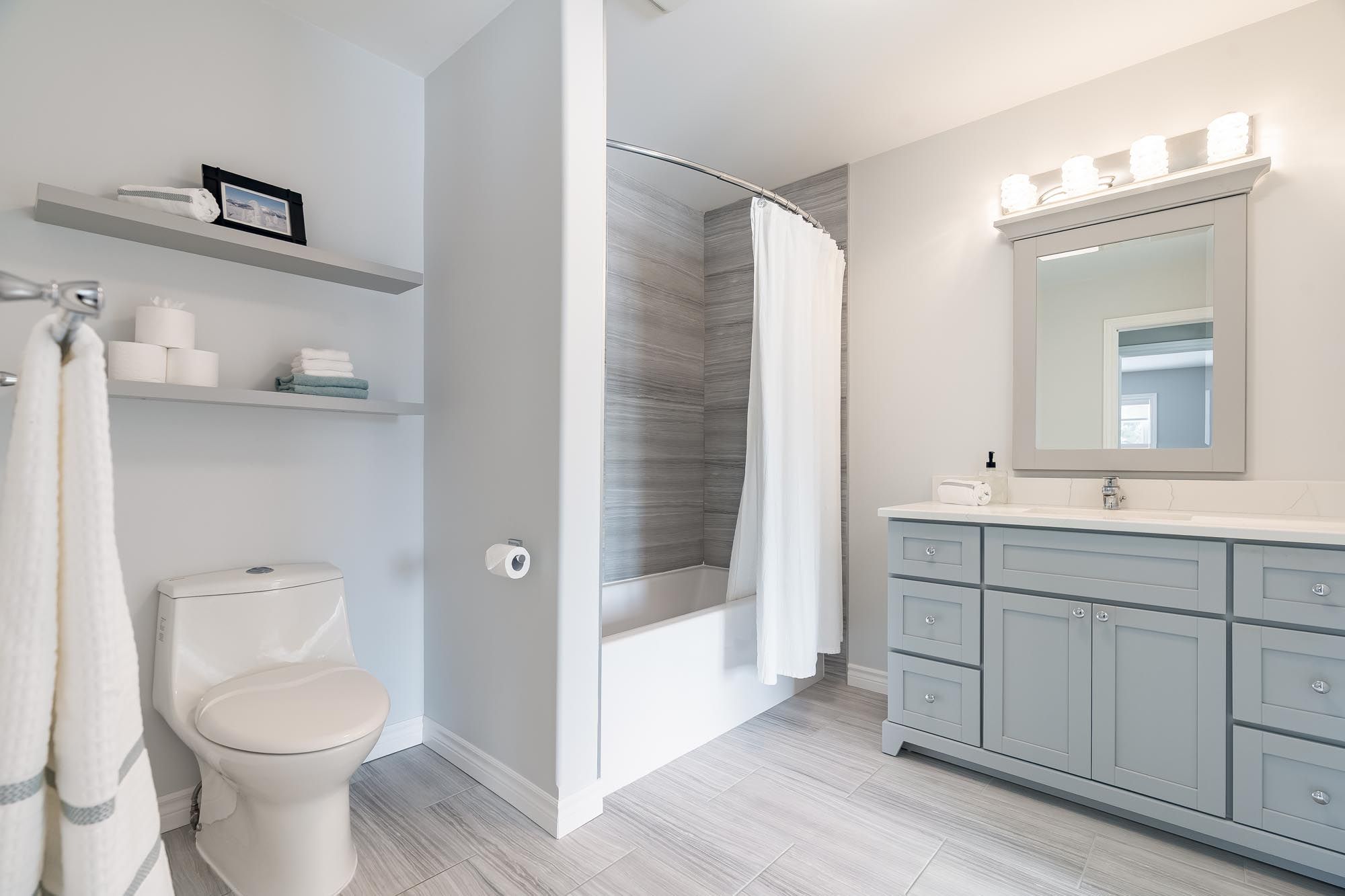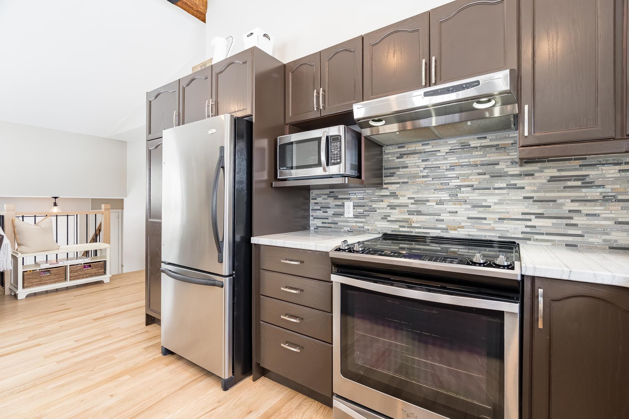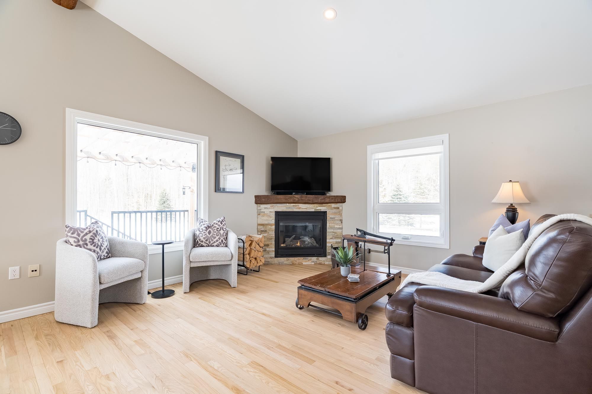 • Bright open-concept main level with vaulted ceilings and large windows.
