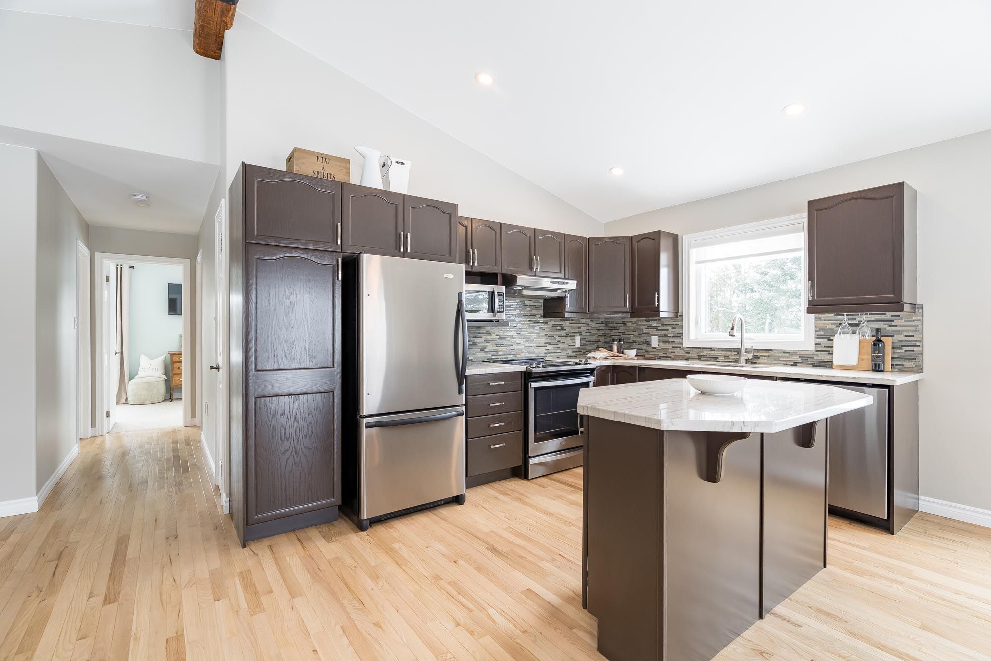 Top 5 reasons you will love this home: 1) immaculately maintained bungalow nestled on 1. 6 private acres, backing onto serene farmland in the charming community of utopia 2) bright, open-concept main level featuring soaring vaulted ceilings and expansive windows that frame breathtaking views of the lush, sprawling backyard 3) mindfully updated throughout, including brand new windows, beautifully refinished hardwood floors, and stylishly renovated bathrooms 4) fully finished lower level offering two generous bedrooms, a well-sized living area, dedicated laundry room, full bathroom, and an exceptionally well-kept mechanical room 5) unwind on your stunning new deck with a pergola or venture to your heated garage as the sun sets over the peaceful farmers' fields, all within an impressive 2,207 square feet of finished living space. 1,226 above grade sq. Ft. Plus a finished basement. *please note some images have been virtually staged to show the potential of the home.