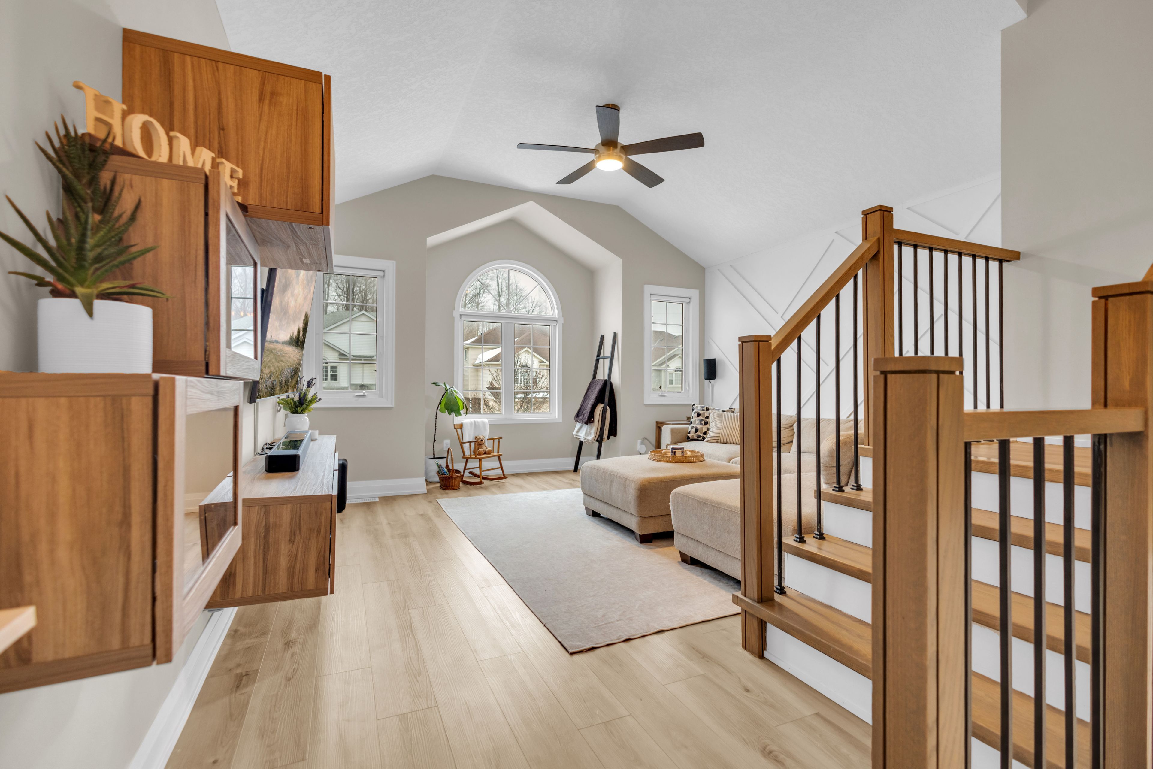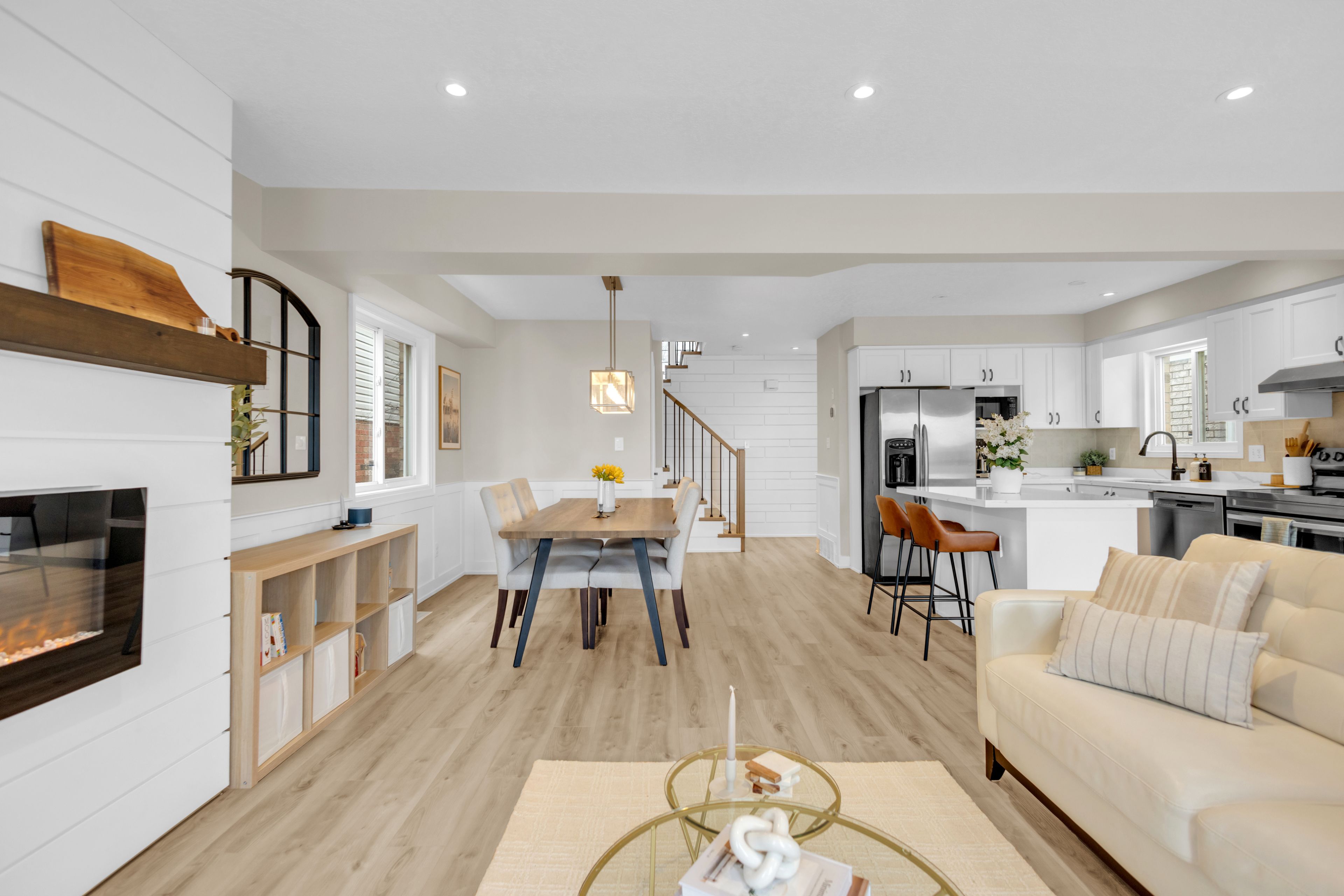 Welcome to this extensively upgraded, carpet-free detached home in the highly sought-after williamsburg neighbourhood of kitchener, ideally located among some of the area's top-rated schools. This beautifully maintained home offers a bright, functional layout with spacious rooms and elegant finishes throughout. The upper level features generously sized bedrooms along with a bonus family room on the upper mezzanine level, providing valuable additional living space perfect for relaxing with family. The finished walkout basement further extends the home's living area and offers direct access to the large concrete patio. From the main floor, step out onto the large wooden deck, creating multiple outdoor spaces perfect for entertaining or relaxing. Conveniently located close to parks, shopping, restaurants, and everyday amenities, with quick access to highway 7/8, making commuting simple and efficient. Well maintained with recent updates including roof (2021), water softener (2021), furnace (2023), and hot water tank (2023). A fantastic opportunity to own a move-in-ready home in a sought-after community.
