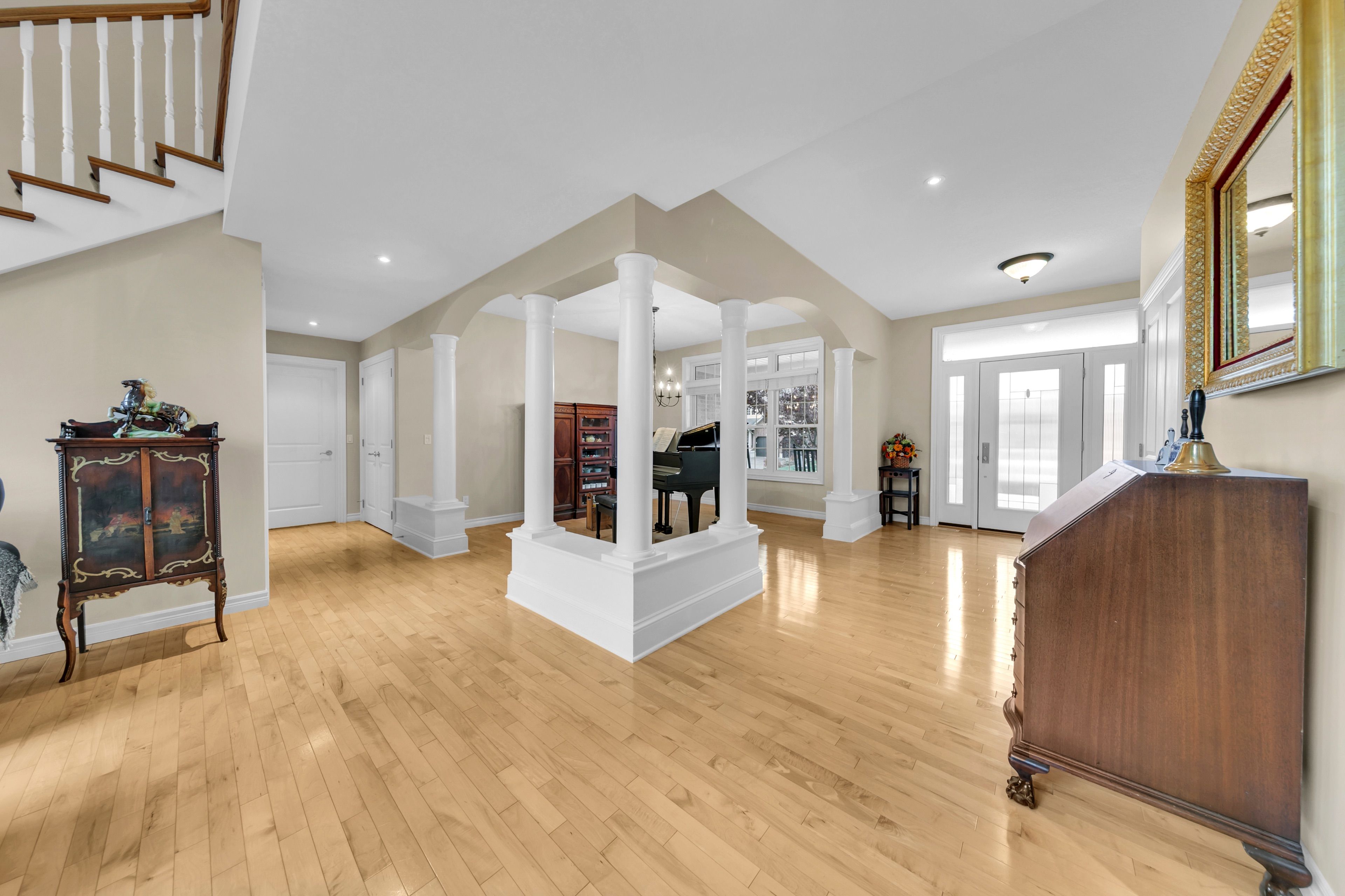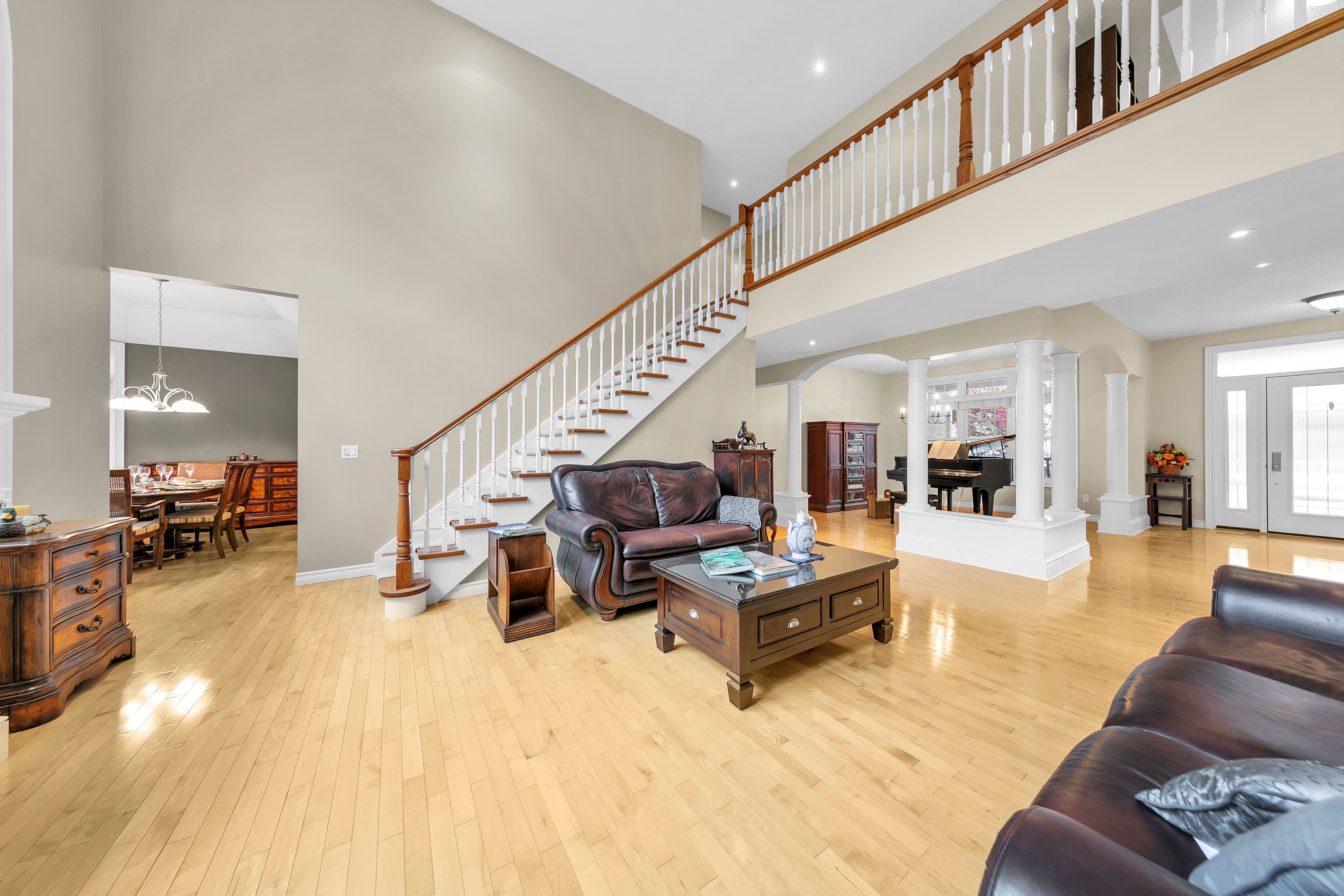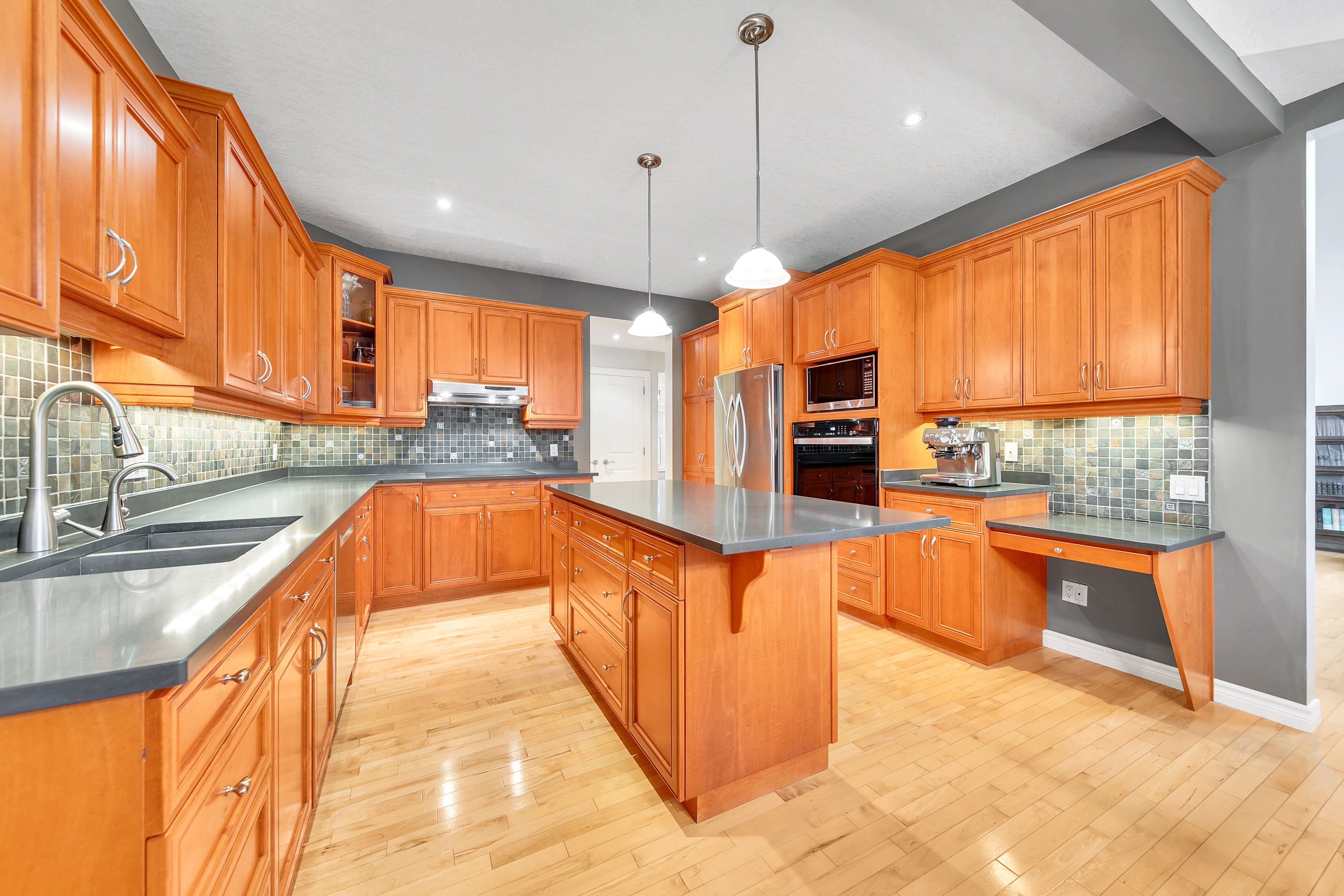 Welcome to 552 falconridge cres, stunning executive family home offering approx 3300 sq ft - (4,700+ sq ft of beautifully finished living space) set on a huge 65' x 119. 75' oversized private lot! Situated on a quiet court in the highly desirable family-oriented neighbourhood of river ridge, kitchener! Boasting 4+1 bedrooms & 4 bathrooms, this elegantly stated home features a bright, spacious, open-concept layout. Formal dining room. Gourmet kitchen is a chef's dream, showcasing quartz counters, centre island, stone backsplash, premium sstl appliances, induction cooktop, pantry, & sunlit breakfast area w/ access to the backyard. The great room serves as the heart of the home, featuring cathedral ceiling, hardwood floors, cozy gas fireplace & stunning windows overlooking backyard. Main floor mud/laundry room with access to oversize garage, *main floor primary master bdrm retreat with dream w/i closet-custom shelving, private 5pc ensuite incl jetted tub & walkout to backyard! Main floor office with large window and built-in shelving. All spacious bedrooms each with walk-in closets. 4pc main bath, bonus 2nd floor room (ideal for office/prayer/bdrm/library) + walk-in attic ideal for extra storage. Finished lower level adds valuable living space w/ an expansive open rec room w/ custom built-in bar, 2nd gas fireplace, office nook, full 3pc bathroom & sep gym area featuring glass sliding door, a full bedroom + walk-in closet, tons of extra storage rooms. Private oversize landscaped fenced backyard, complete w/ mature trees & sprinkler system. The ultimate space for outdoor entertaining! Wide concrete aggregated driveway. Prime location near top schools, universities, grand river, trails, kiwanis park, shopping, restaurants, quick hwy access & more! Don't miss out-this home won't last! Newly freshly painted. Shingles 2023, a/c 2021, water soft 2021. Garage access to side yard, backyard & basement. This could be your dream home!