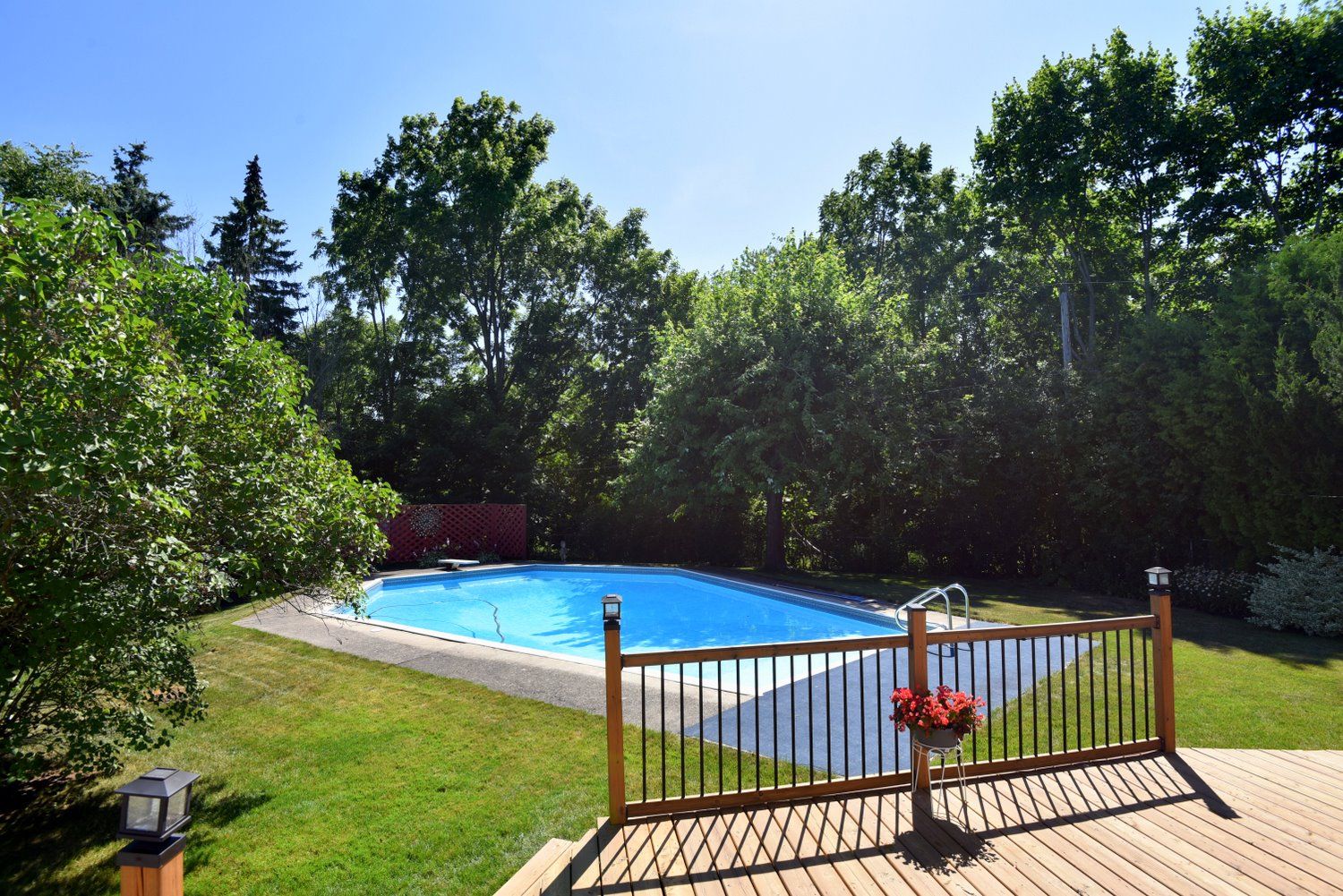 • Private, pie-shaped ravine lot featuring a beautiful backyard oasis and in-ground pool.