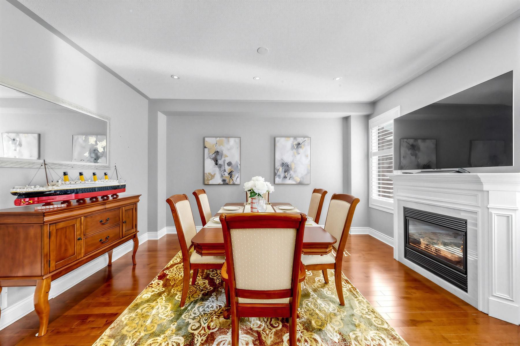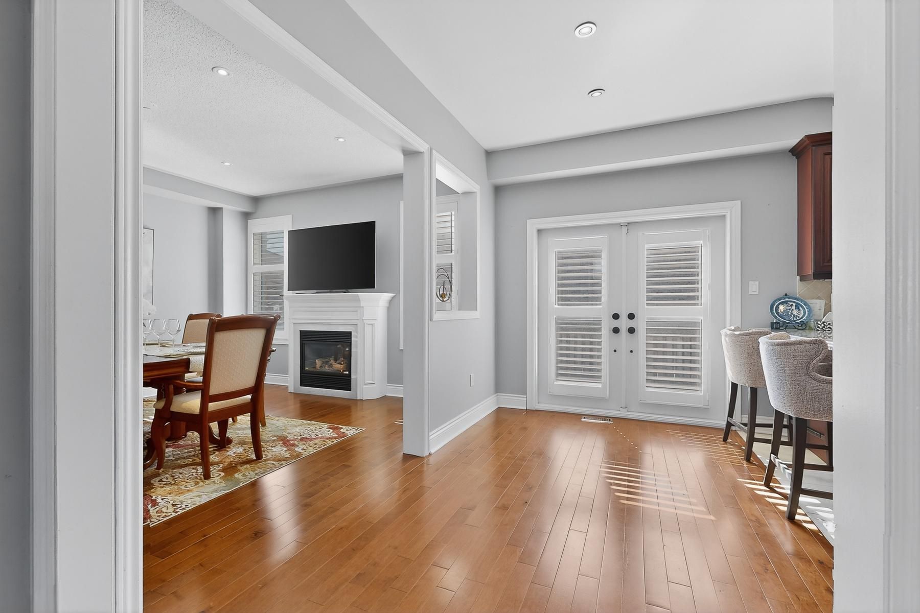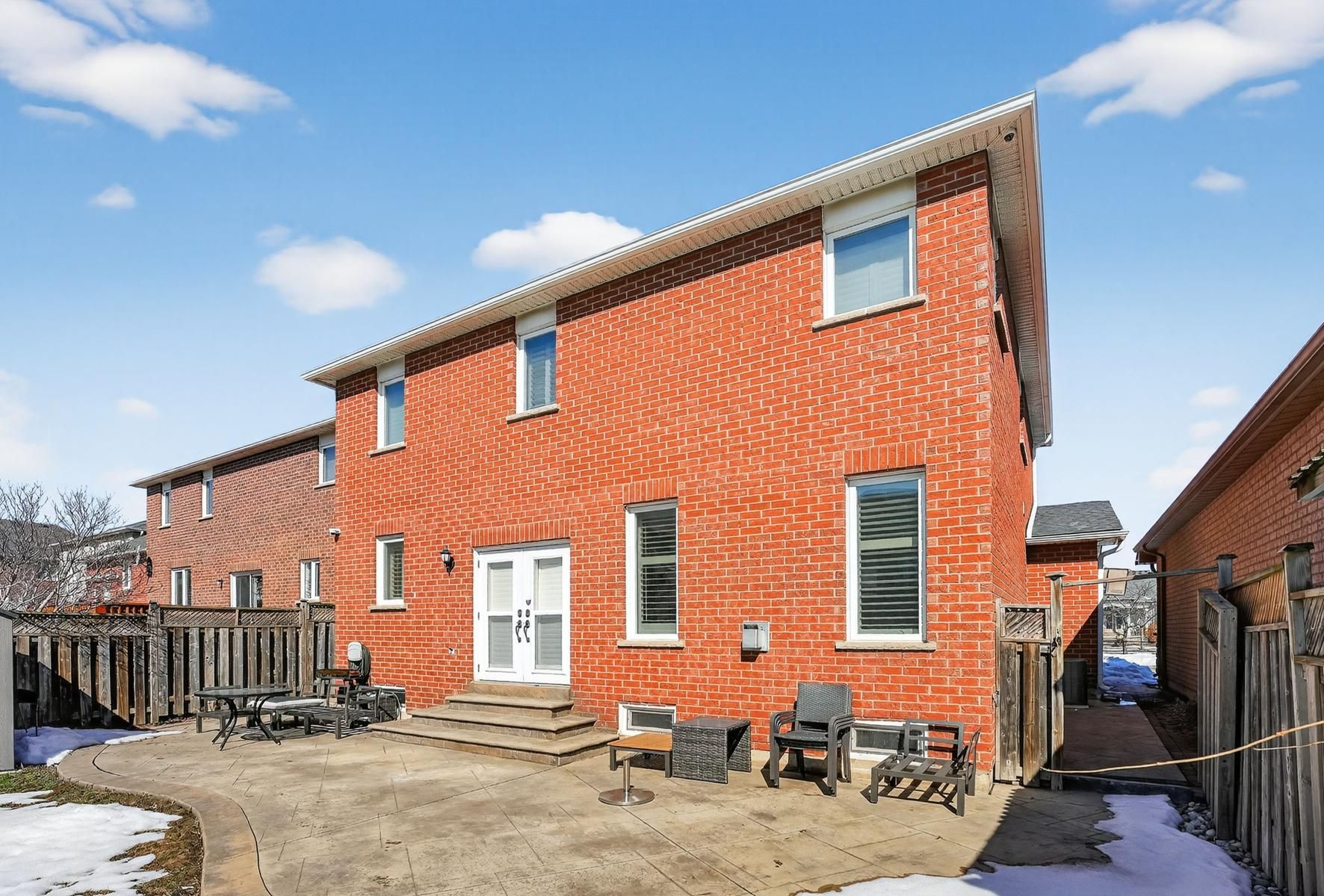 Nearby top school - iroquois ridge high school, community centre & shopping. Beautifully landscaped front and rear yards. This fully upgraded 4-bedroom, 4-bathroom home offers over 3,300 sq. Ft. Of thoughtfully designed living space, including a finished basement. Filled with natural sunlight and featuring a practical layout that maximizes living space. The property showcases a pattern-designed premium concrete driveway, walkways, and patio, along with 9-ft ceilings on the main level. The open-concept main floor features hardwood flooring, spacious living areas, and california shutters throughout. The custom kitchen is equipped with custom cabinetry and granite countertops, perfect for both everyday living and entertaining. The primary bedroom includes a walk-in closet and a 4-piece ensuite. Both second-floor bathrooms feature double-sink vanities for added convenience. The fully finished basement offers a large recreation room and a 3-piece bathroom, providing additional functional living space. Major upgrades completed in 2021, including furnace, a/c, owned hot water tank, attic insulation, dishwasher, water purifier, and water softener. Well-maintained owner-occupied property. Move-in ready.