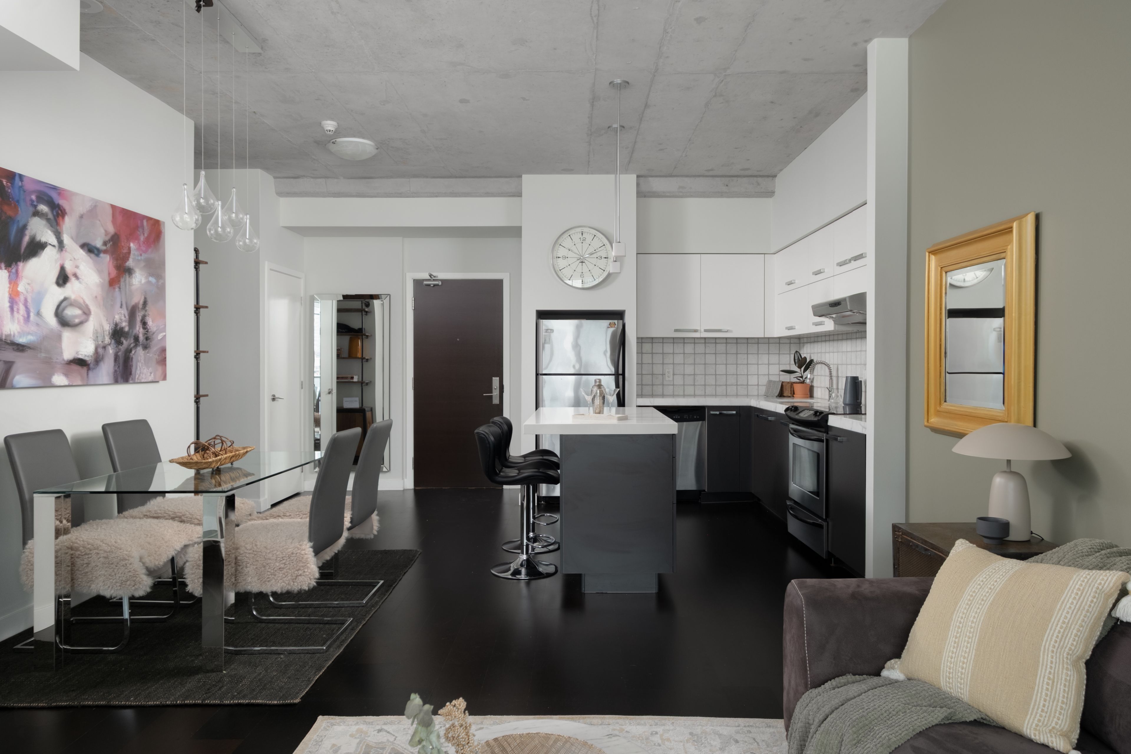 Authentic loft-style meets boutique living at 552 wellington street west, home to the luxury 1 hotel toronto. With only 24 residences, this exclusive offering delivers a level of privacy and quiet rarely found in king west's larger condominium buildings, along with a separate private residential entrance and access to the hotel's exceptional amenities. Life here is effortless. Start your day in the state-of-the-art fitness centre, unwind at harriet's rooftop with skyline views, or enjoy dinner at casa madera, just an elevator ride away. The best of king street west, restaurants, cafés, and boutiques, is right outside your door, with a parkette across the street and trinity bellwoods park and the waterfront just a short stroll away. Inside, the sun-filled 1-bedroom plus den suite features floor-to-ceiling windows and exposed concrete ceilings for a modern loft aesthetic, with a south-east view that captures the skyline and city beyond. The open-concept living space is bright and functional, complemented by a kitchen with stainless steel appliances, granite countertops, and a centre island. The spacious bedroom offers generous closet storage, while the separate den provides a flexible work-from-home or guest space. A private balcony adds a rare outdoor retreat. A unique opportunity to own in one of downtown's most exclusive boutique residences.