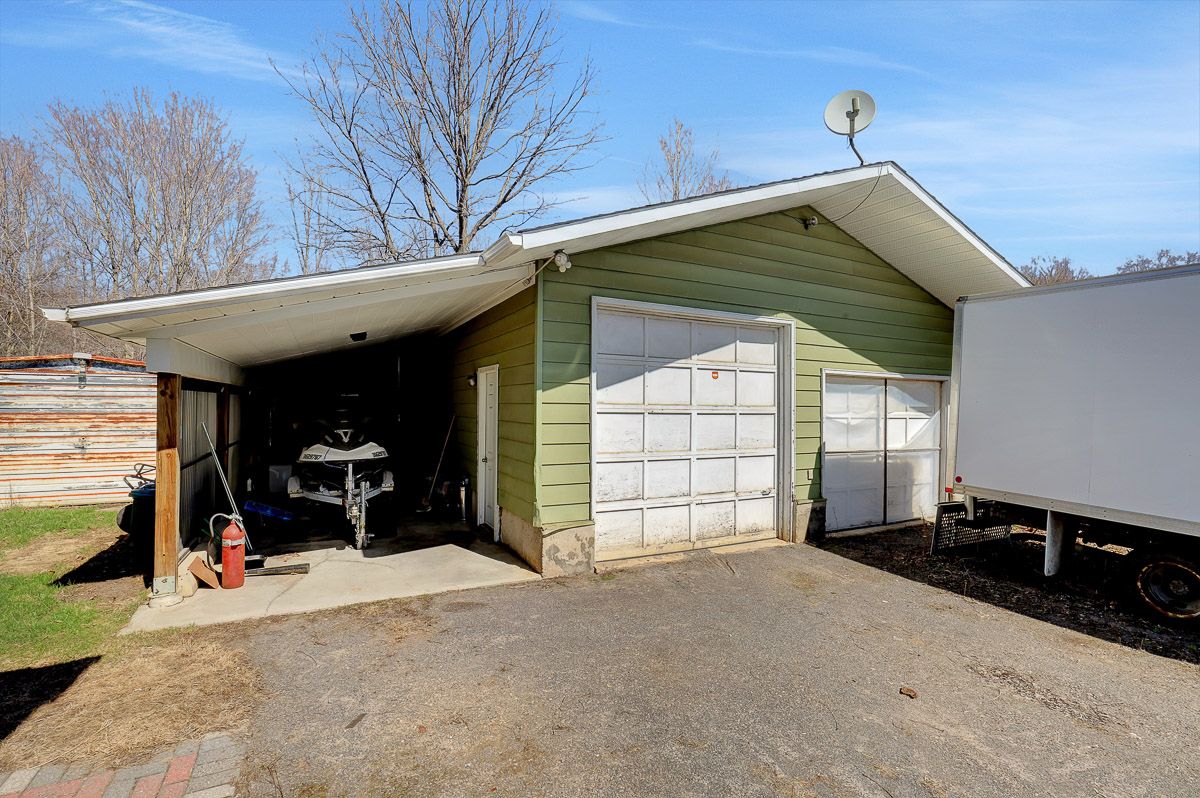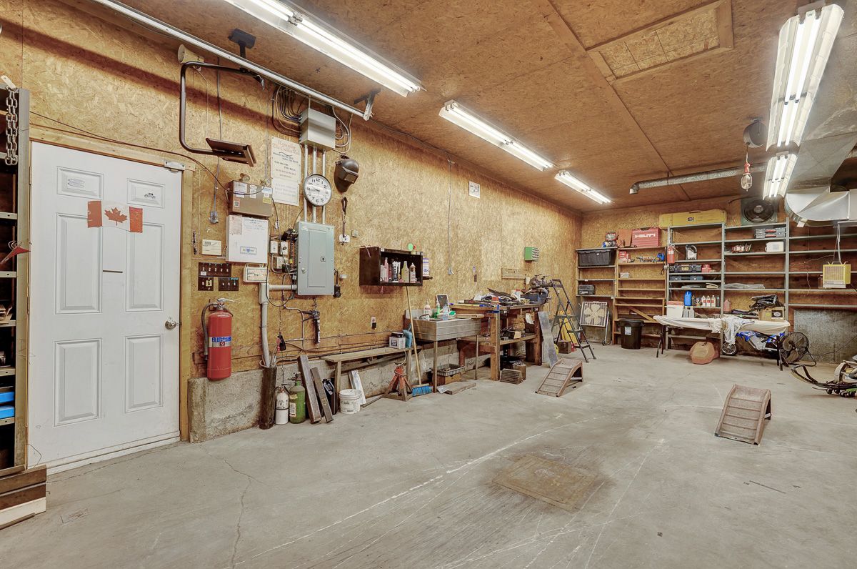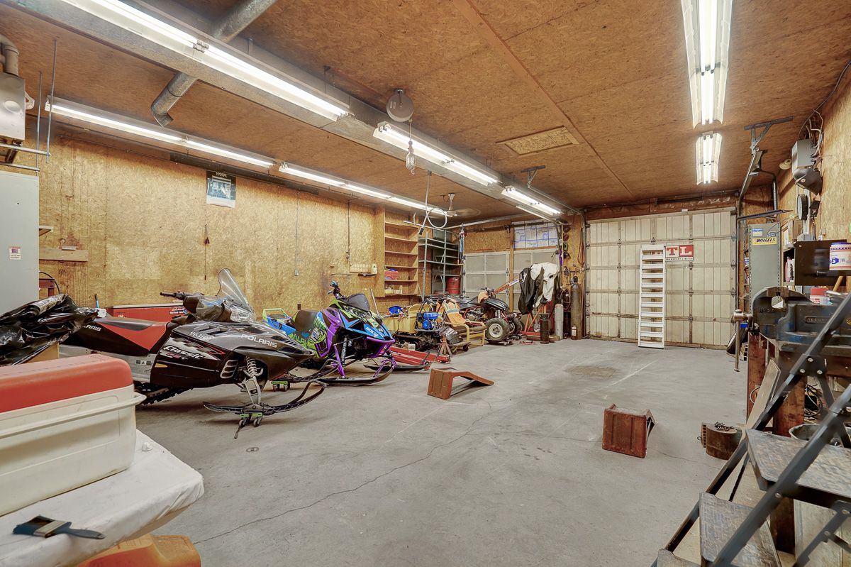 • Expansive garage equipped with heat, electricity, and water.