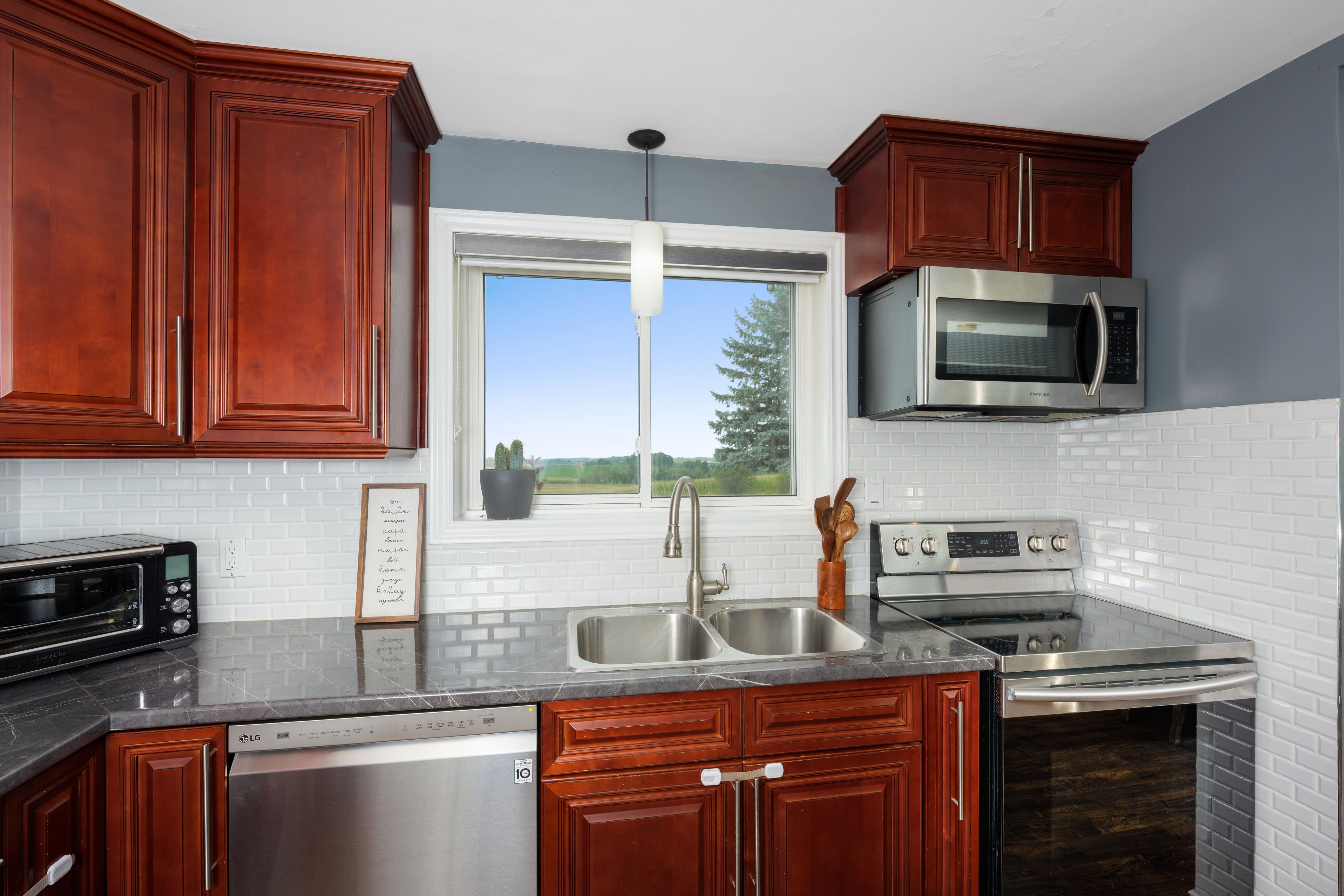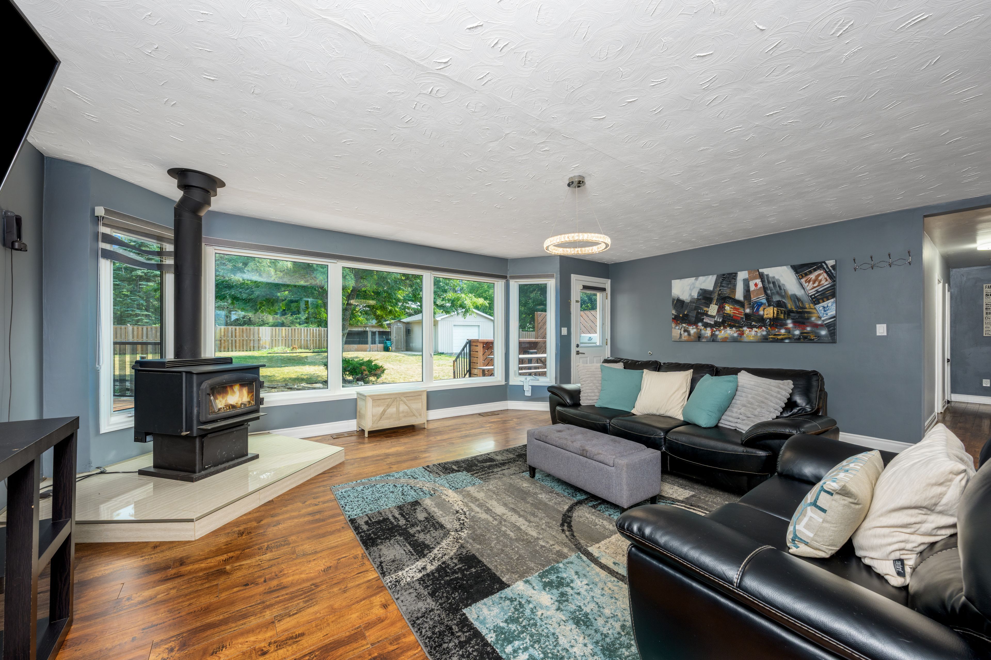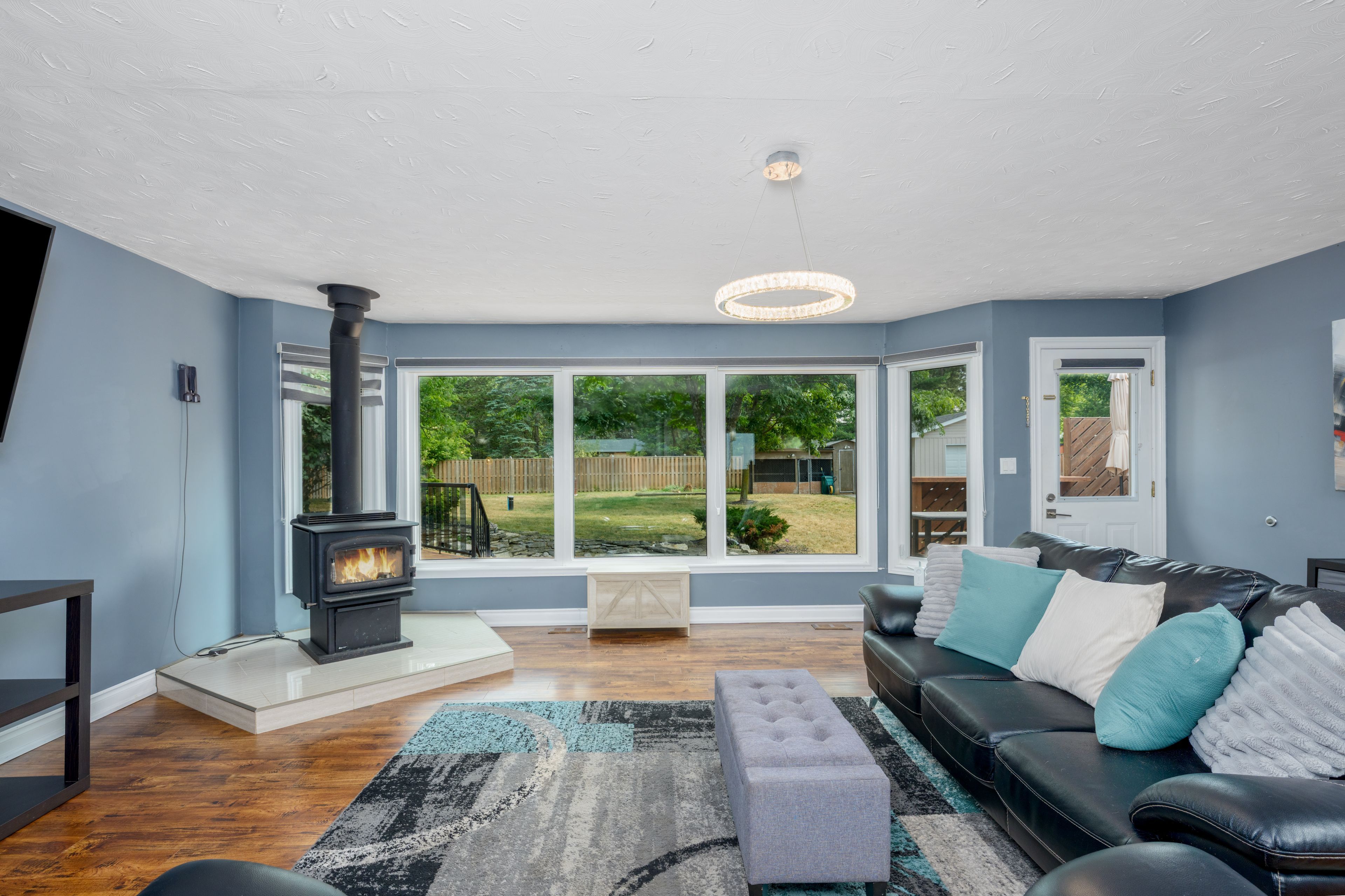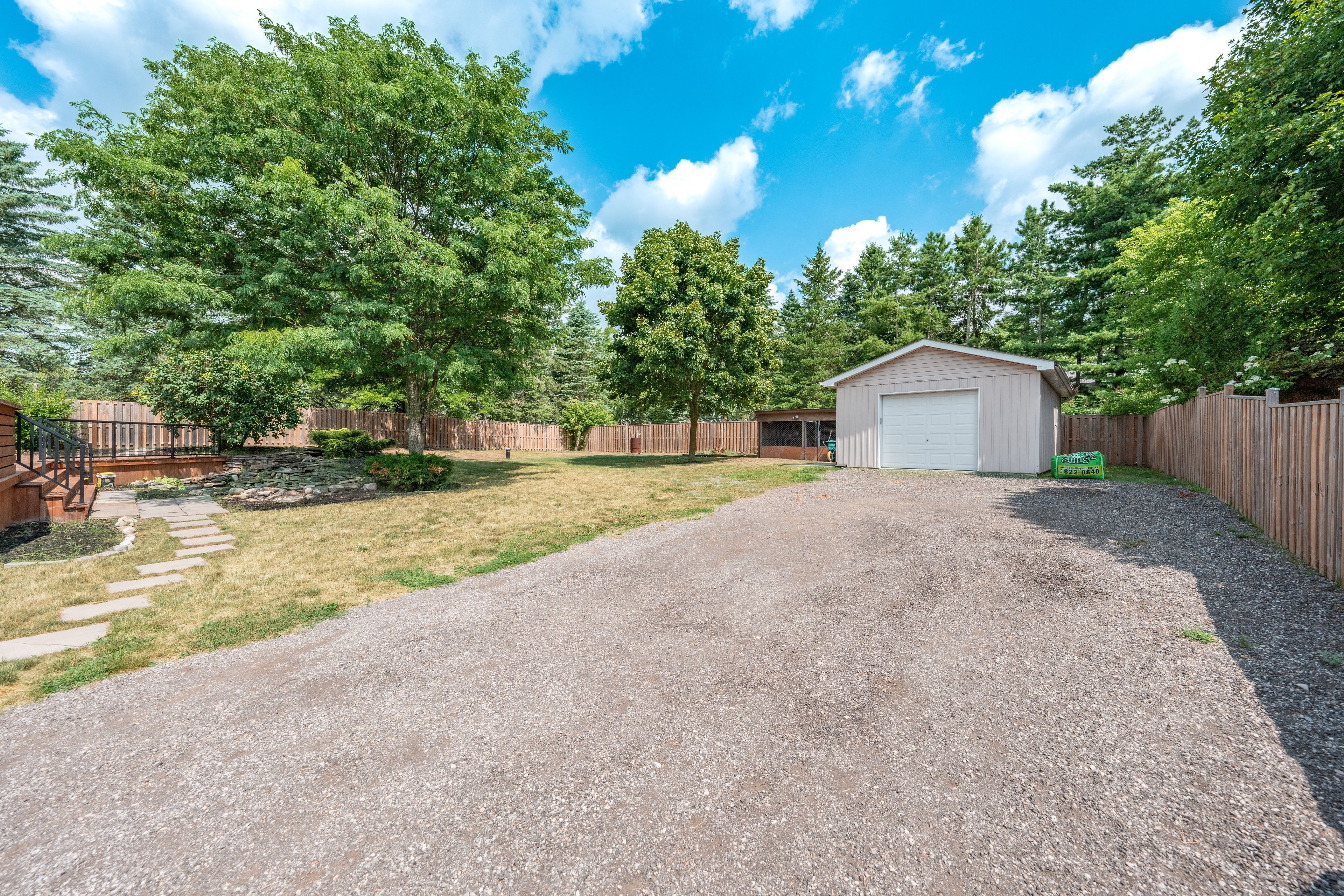 Set well back from the road on a picturesque 1/2 acre lot, this beautifully maintained raised bungalow offers just over a total of 2,000 sqft of refined, versatile living. The bright open concept main level showcases a spacious kitchen, dining area and sun-filled living room with fireplace and serene views of the grounds. Three well-appointed bedrooms, a full bath and convenient main floor laundry complete the space. A separate entrance from the single car garage (with additional storage) leads to a thoughtfully finished lower level featuring a kitchenette, two generous rooms (currently used as an office and an exercise room), an updated 3-piece bath and additional laundry-perfectly suited for multi-generational living or income potential. The office room is soundproofed which provides an ideal setting for remote work, studio use or quiet retreat. Outdoors, enjoy a generous deck overlooking a tranquil pond with waterfall feature and expansive private yard-an exceptional setting for entertaining or relaxation. The detached insulated garage/workshop with its own electrical panel adds further flexibility. Tons of driveway parking! Ideally located just minutes to erin village and hillsburgh, this property offers a rare combination of privacy, sophistication and investment potential.