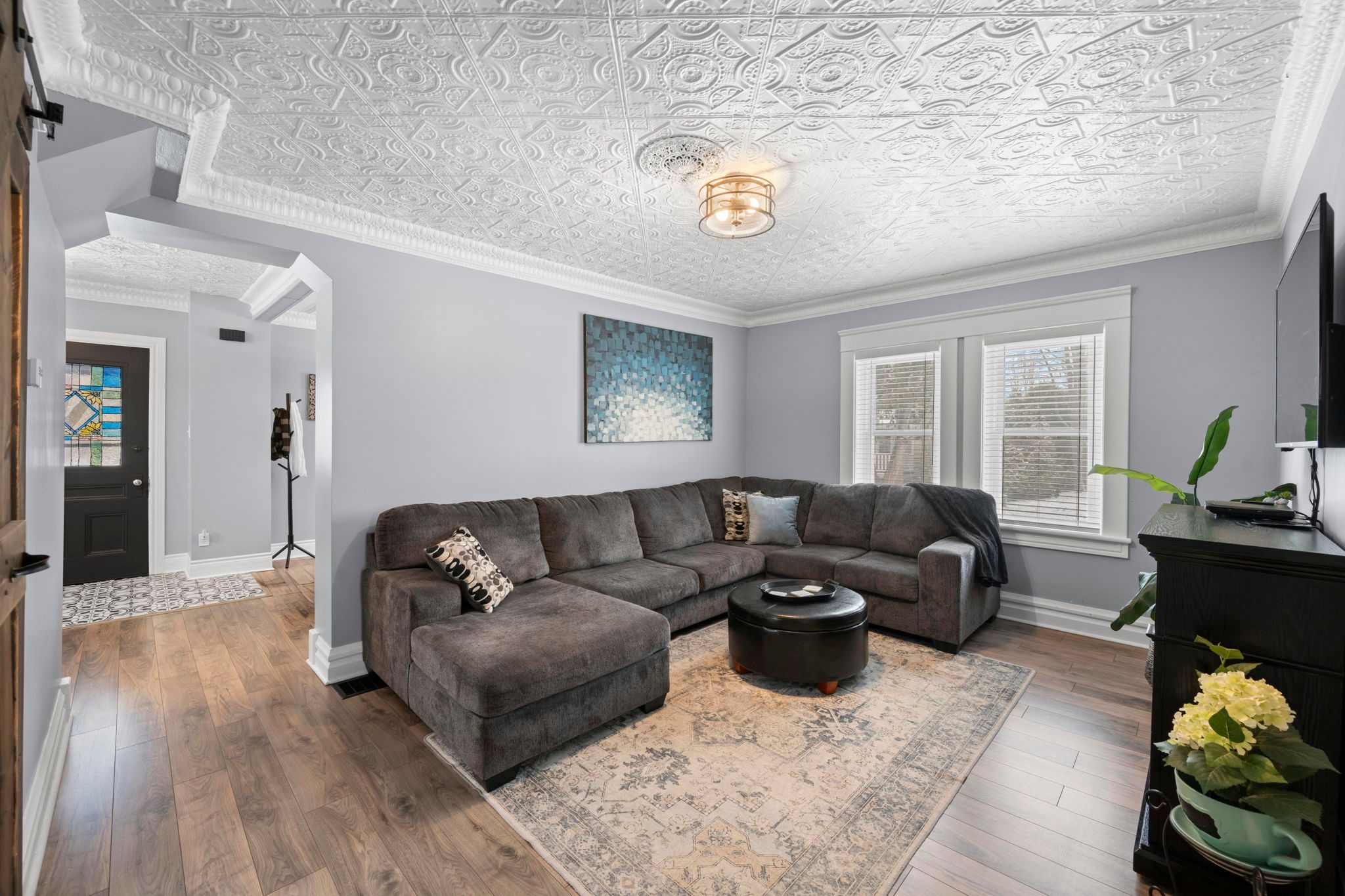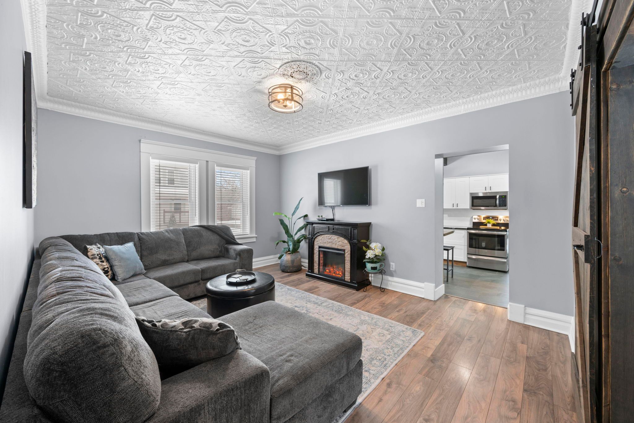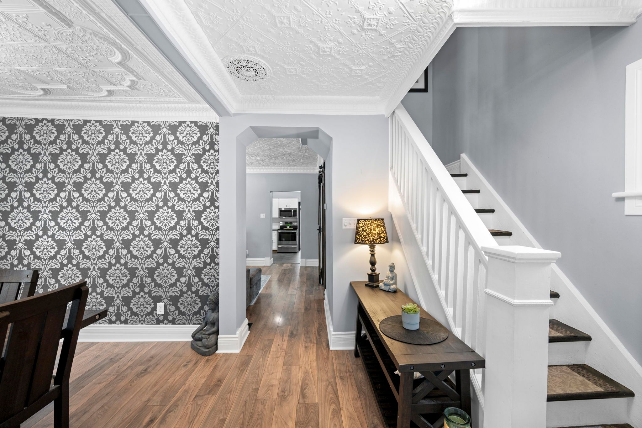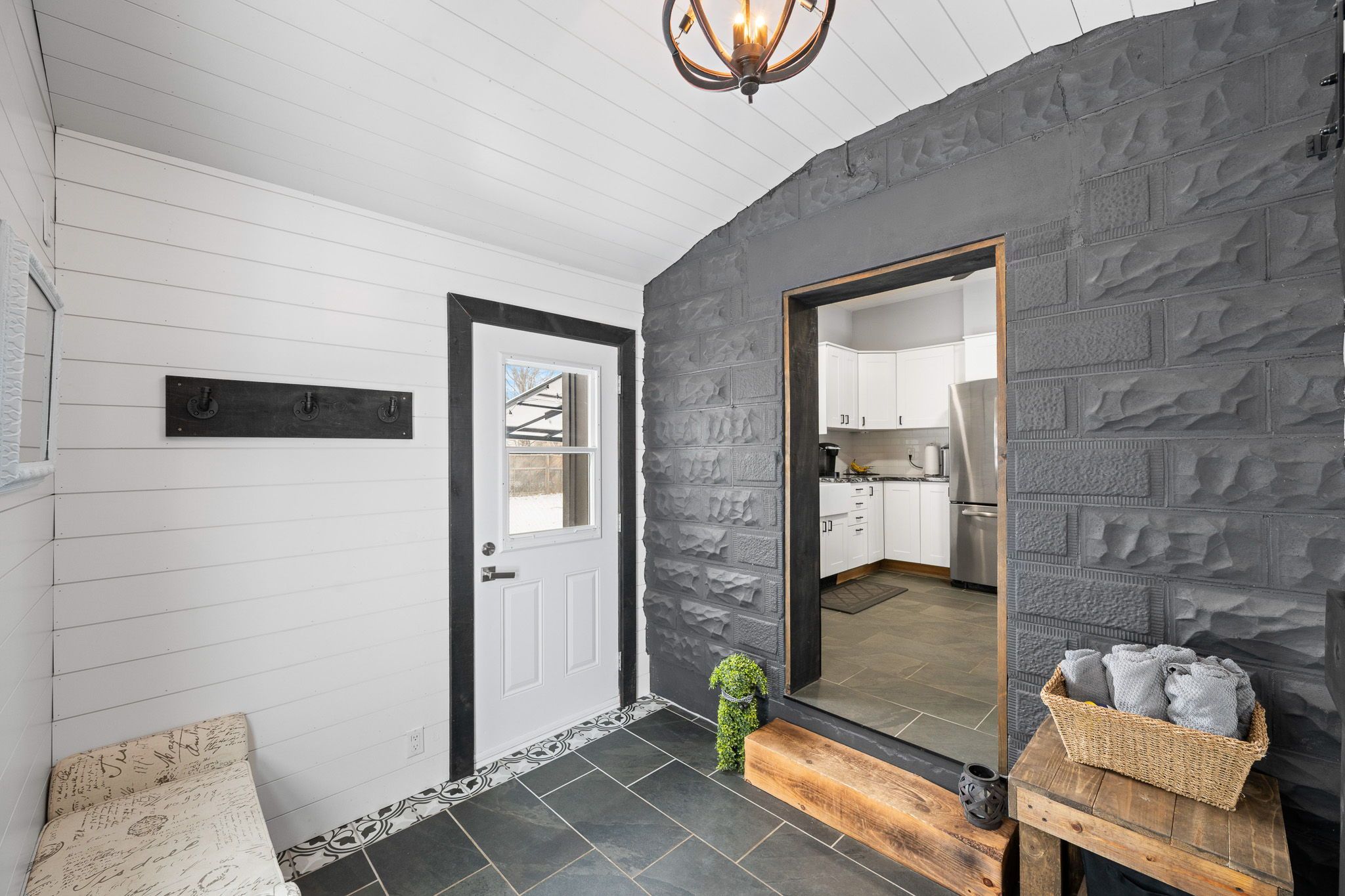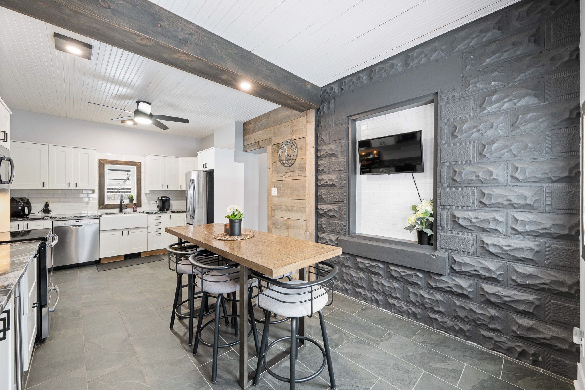 Beautifully renovated home blending modern upgrades with timeless character, ideally situated on a desirable corner lot. Extensive improvements since 2020 include all new flooring throughout, fresh neutral paint, updated lighting, and widened interior doorways with modern 4-panel doors and hardware. The main floor features a fully redesigned kitchen with ge stainless steel appliances, granite countertops, white shaker cabinetry, subway tile backsplash, led pot lighting, and a 32" farmhouse sink. Original 1920 tin ceilings and crown moulding have been refinished in crisp white, adding charm and character. A convenient mudroom addition off the kitchen offers additional storage and access to the backyard, along with a stylish black steel entry door. Upstairs, the second floor includes a renovated full bathroom with new plumbing, a large porcelain tub with full-height tile surround, new vanity and toilet, plus a custom barn board accent wall. The primary bedroom features a newly created walk-in closet. The third floor offers additional living space with updated laminate flooring. Step outside to enjoy a fully fenced yard with double gate access from the street, perfect for trailers, equipment, or added convenience. A standout feature is the authentic original barn with loft, ideal for a workshop, hobby space, or at-home business setup. Additional updates include armour stone front steps, refinished staircases on all three levels, interior barn doors, updated half bath with full-size stackable laundry and new mechanicals including furnace (2024), hot water tank (2020, gas), air conditioning (2020) and sand point well (2025). Windows were previously updated (approx. 2013). Located within walking distance to the public school, post office, and general store, and just a 2-minute drive to the grocery store, this home offers the perfect blend of small-town convenience and modern living. All measurements as per iguide floorplan. Buyer to confirm all room sizes.