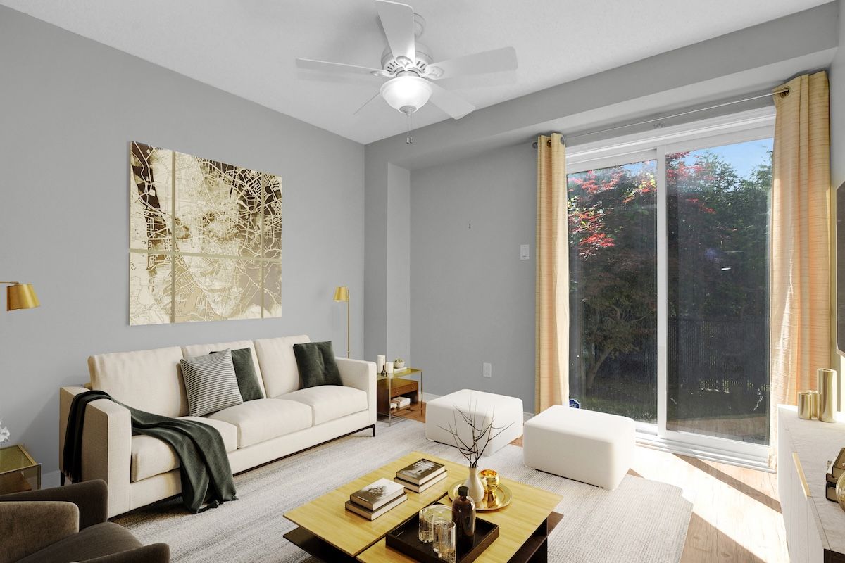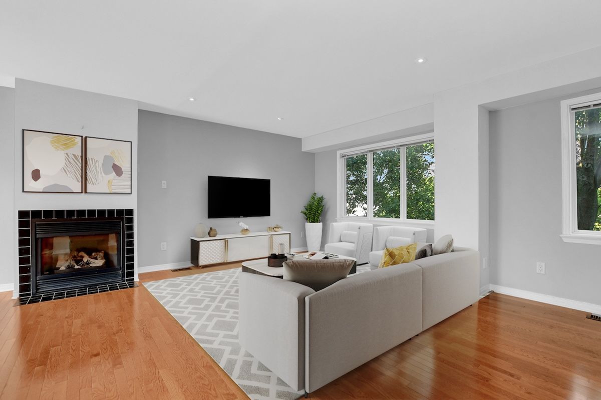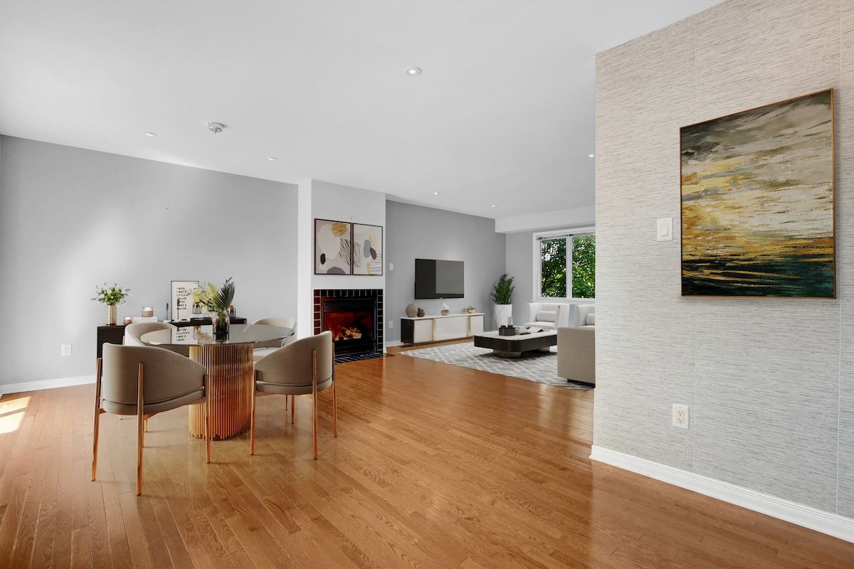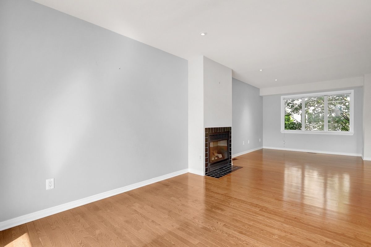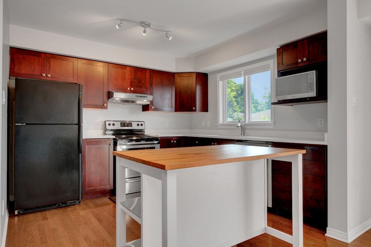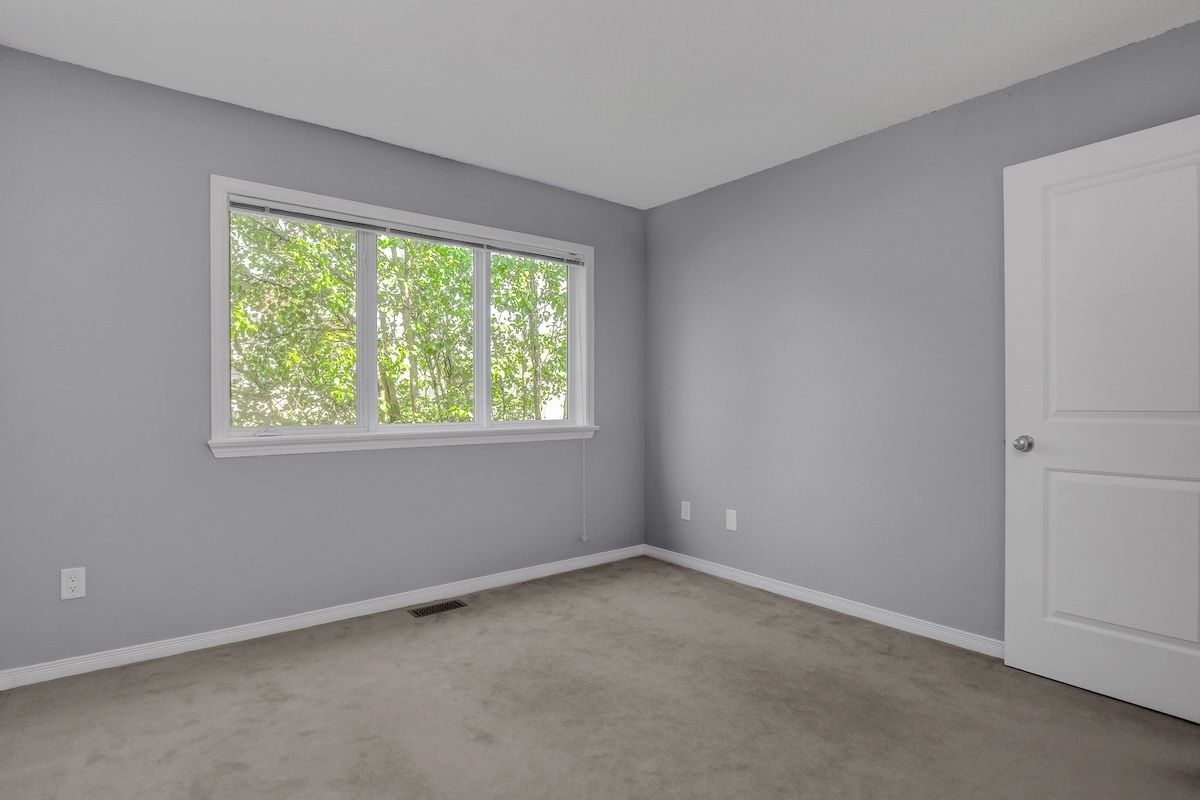 Tucked away in a quiet, private enclave, this domicile-built three-storey executive townhome offers a seamless blend of quality craftsmanship, modern style, and thoughtful design. Natural light fills every level of this bright and welcoming home. The main floor features a versatile space perfect for an office, gym or den along with a convenient powder room and direct access to a private backyard through sliding patio doors. The second level showcases an open-concept living and dining area with elegant hardwood floors, a cozy gas fireplace and access to a charming balcony overlooking the yard. The kitchen is both stylish and functional, complete with quartz countertops. Upstairs, the spacious primary bedroom includes a walk-in closet and an ensuite, while the second bedroom sits adjacent to a large main bathroom with updated ceramic flooring. Additional highlights include oak stairs to the second floor, a large unfinished basement offering ample storage and a private, gated entrance to ken steele park, scenic walking trails and the aviation pathway. With close proximity to the lrt and just minutes from downtown, this beautifully maintained home combines the best of urban convenience with peaceful, park-like surroundings. Quartz countertop in the kitchen, furnace, a/c and owned hot water tank (2019), oak stairs to 2nd floor (2020). Low $900 annual association fee for snow removal and road maintenance. Some photos have been virtually staged.