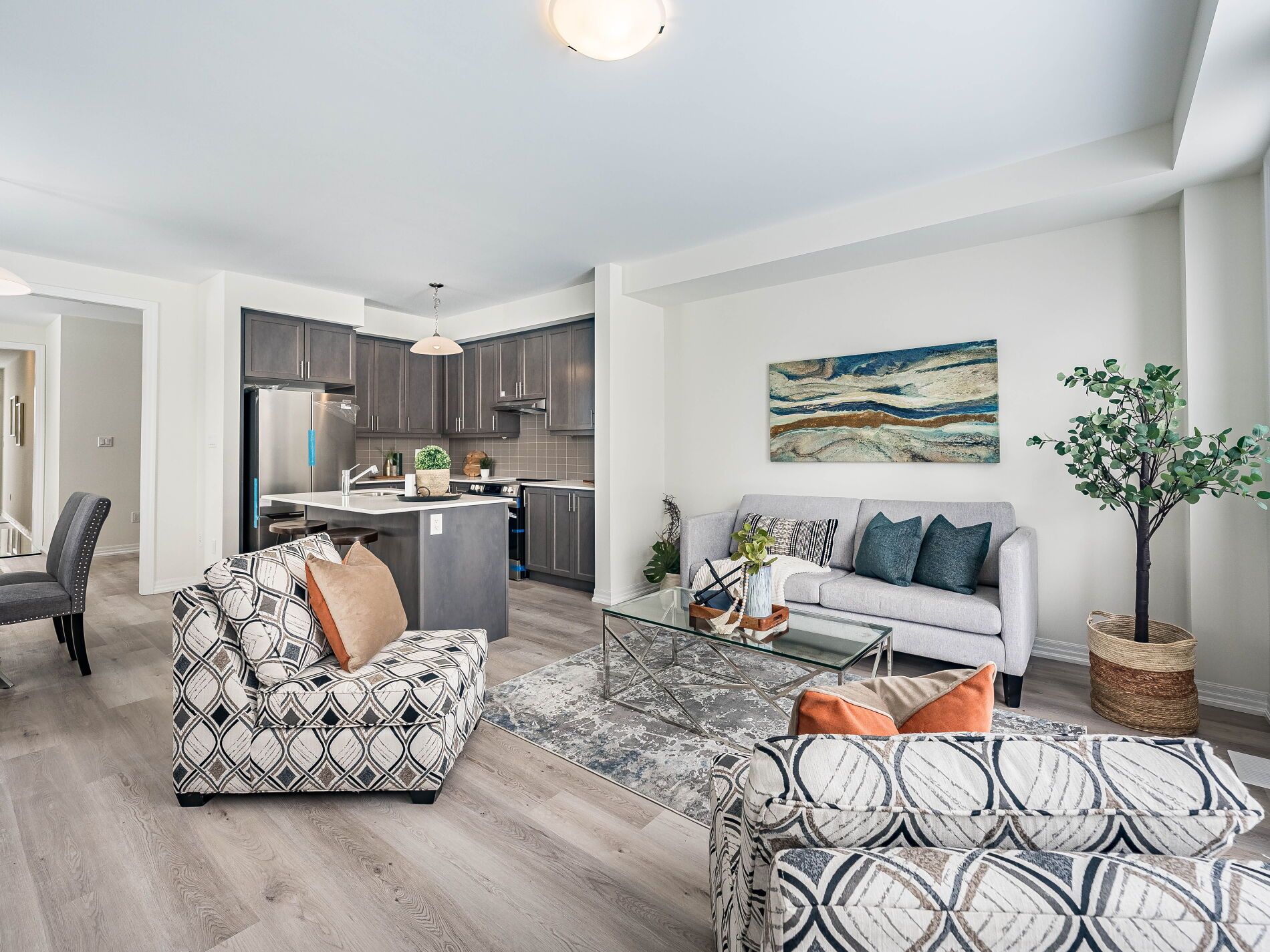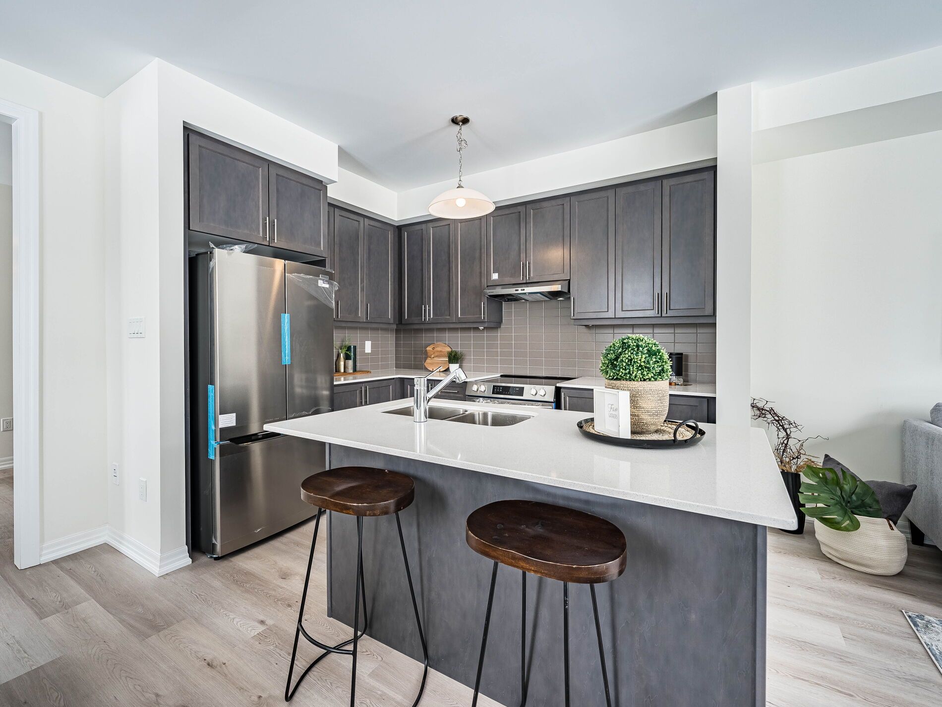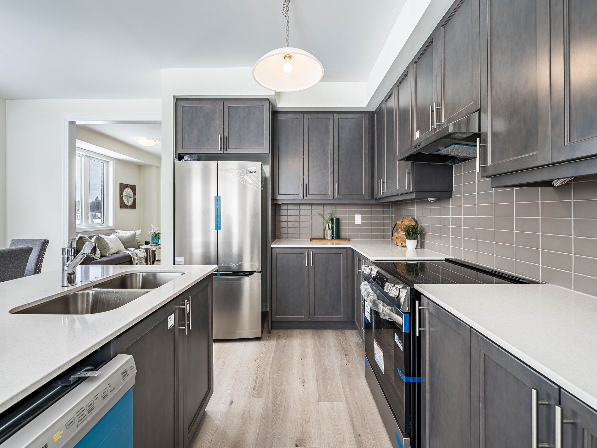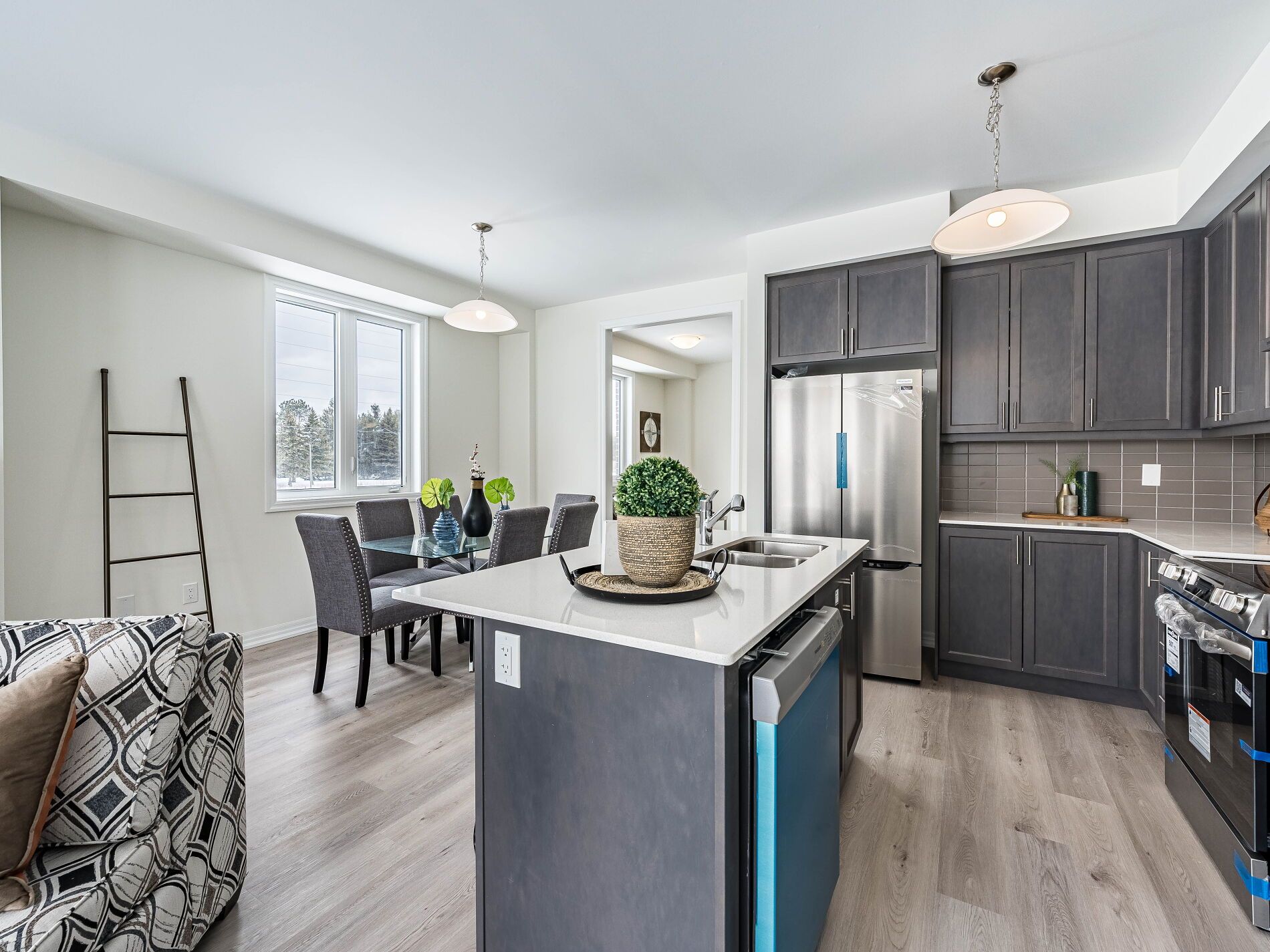 • Open concept kitchen with brand new stainless steel appliances.