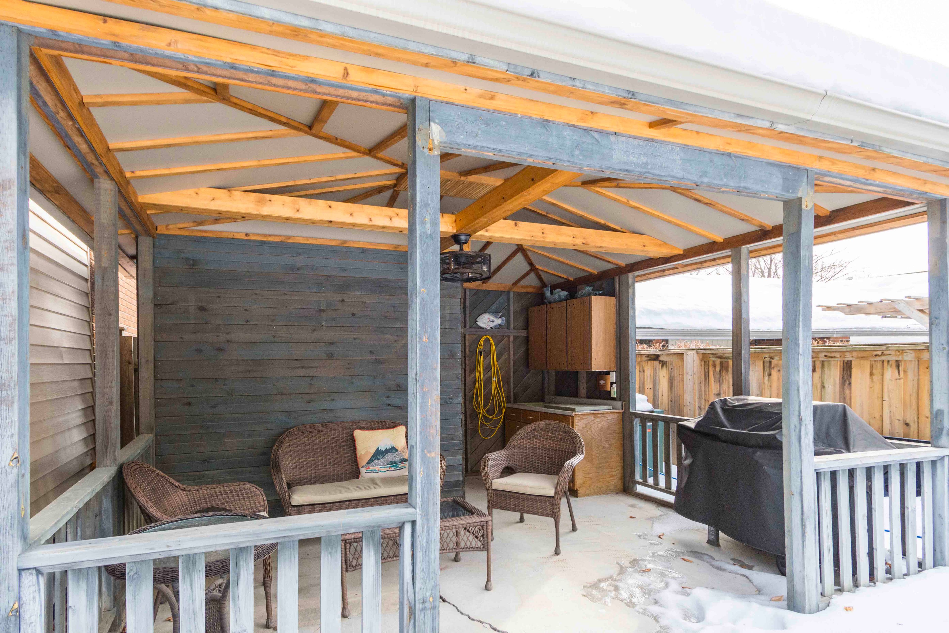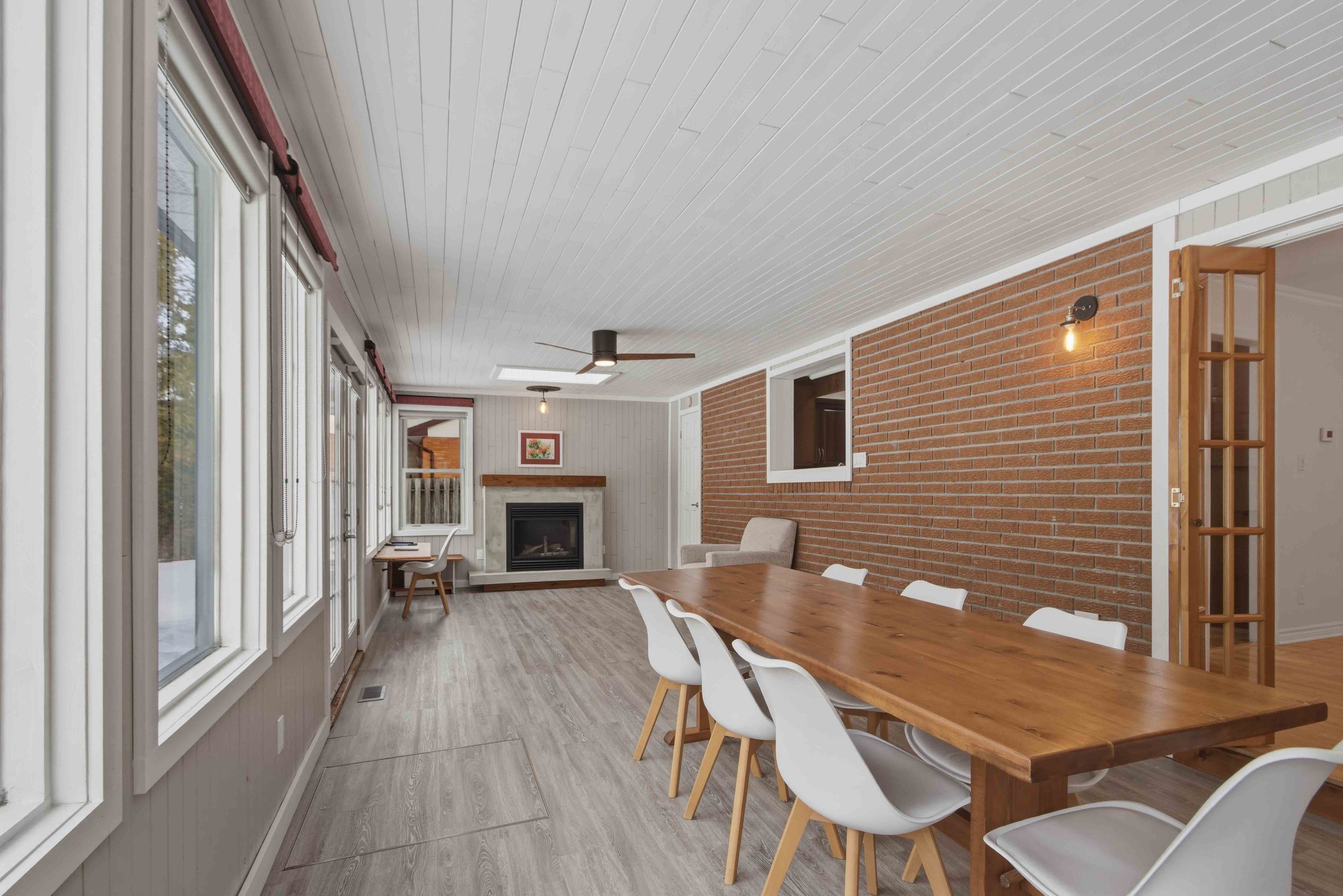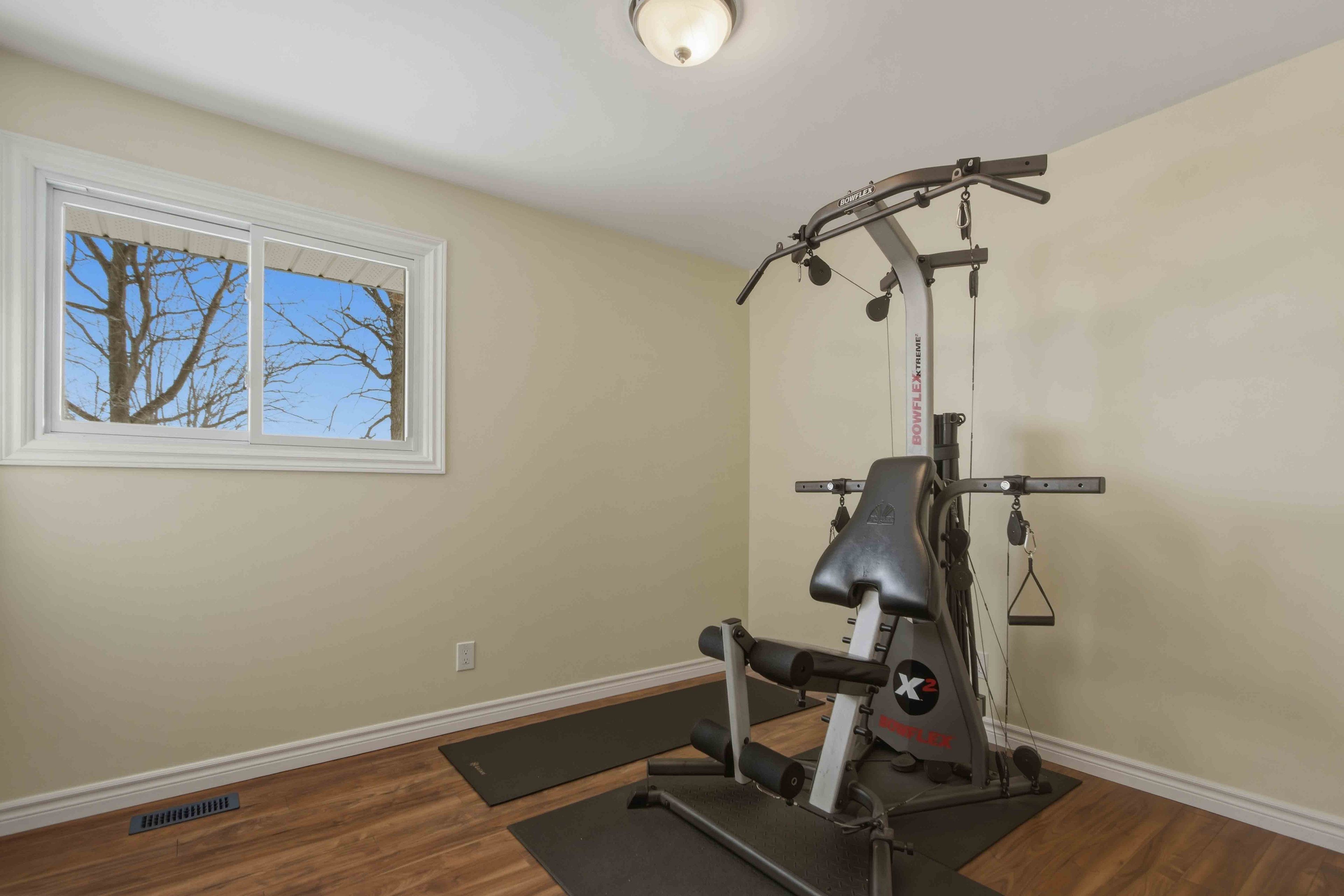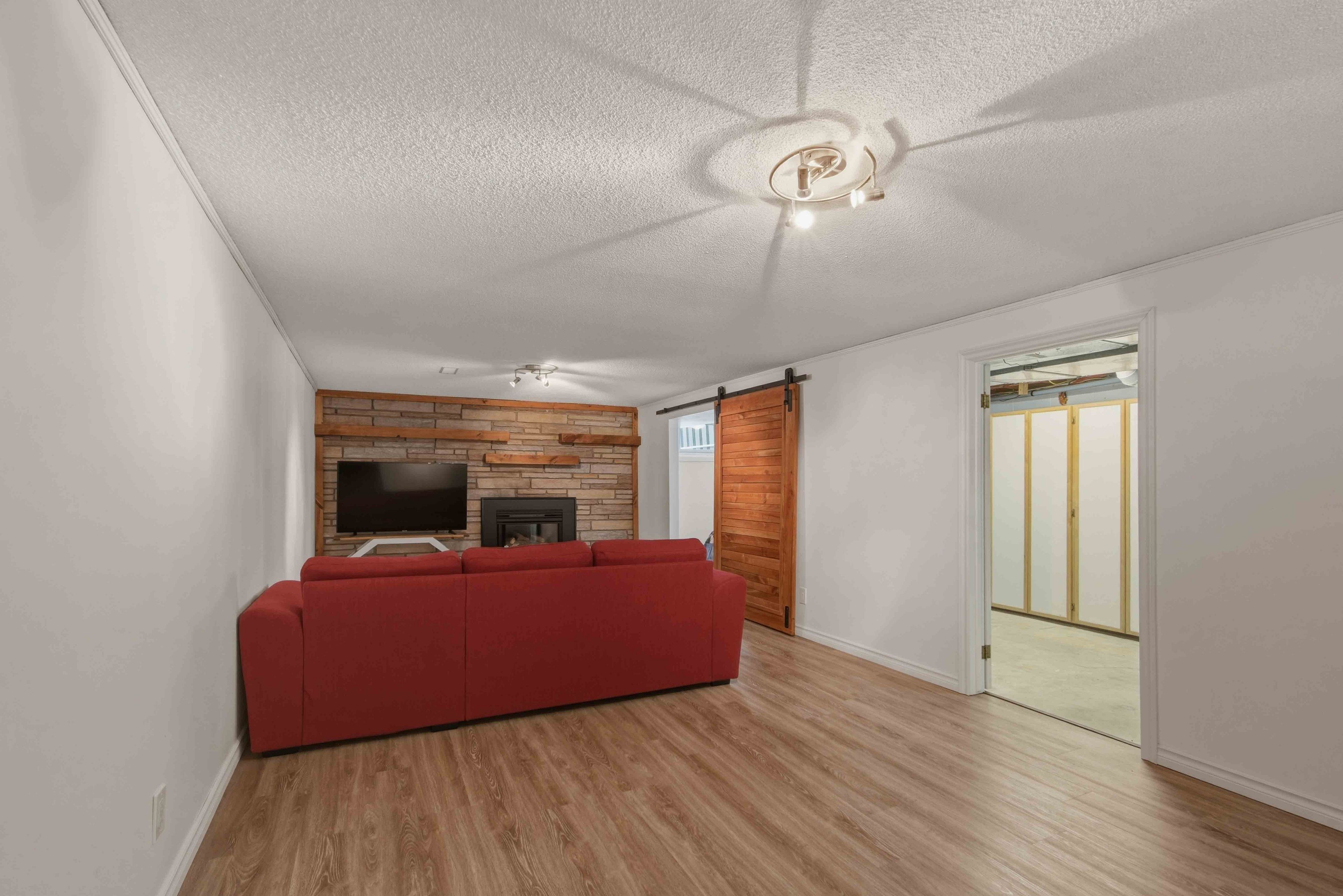 • Finished basement and cozy rec room with a gas fireplace.