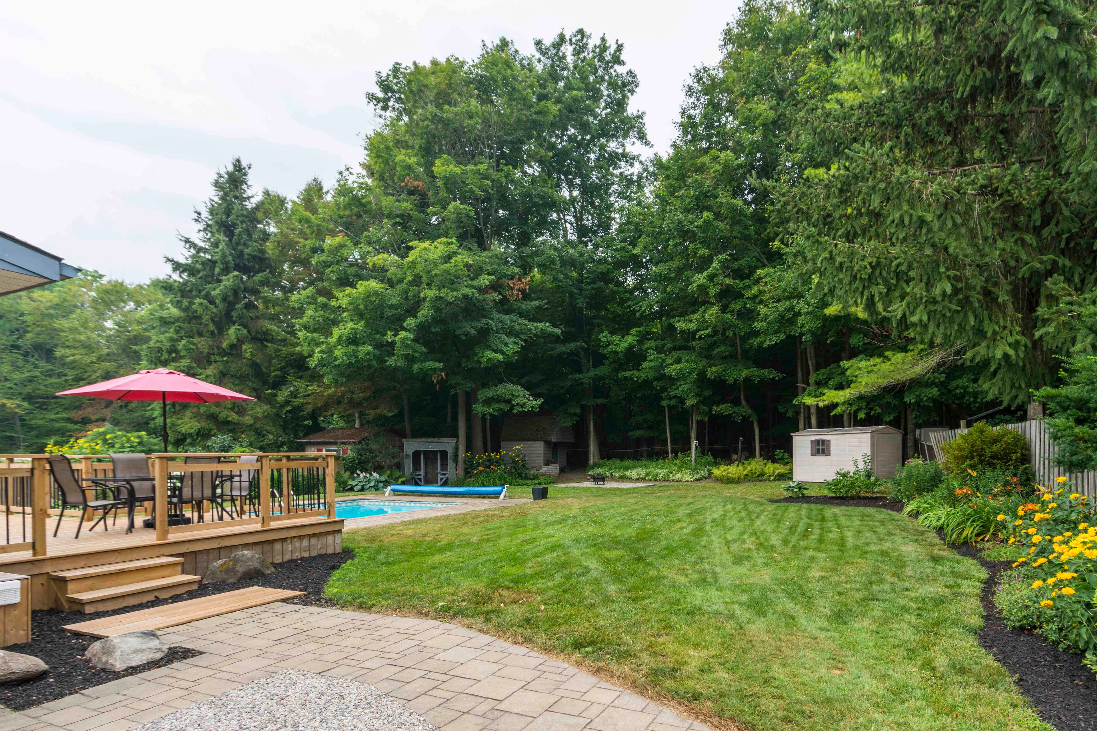 • Oversized private backyard with a fenced in in-ground swimming pool.