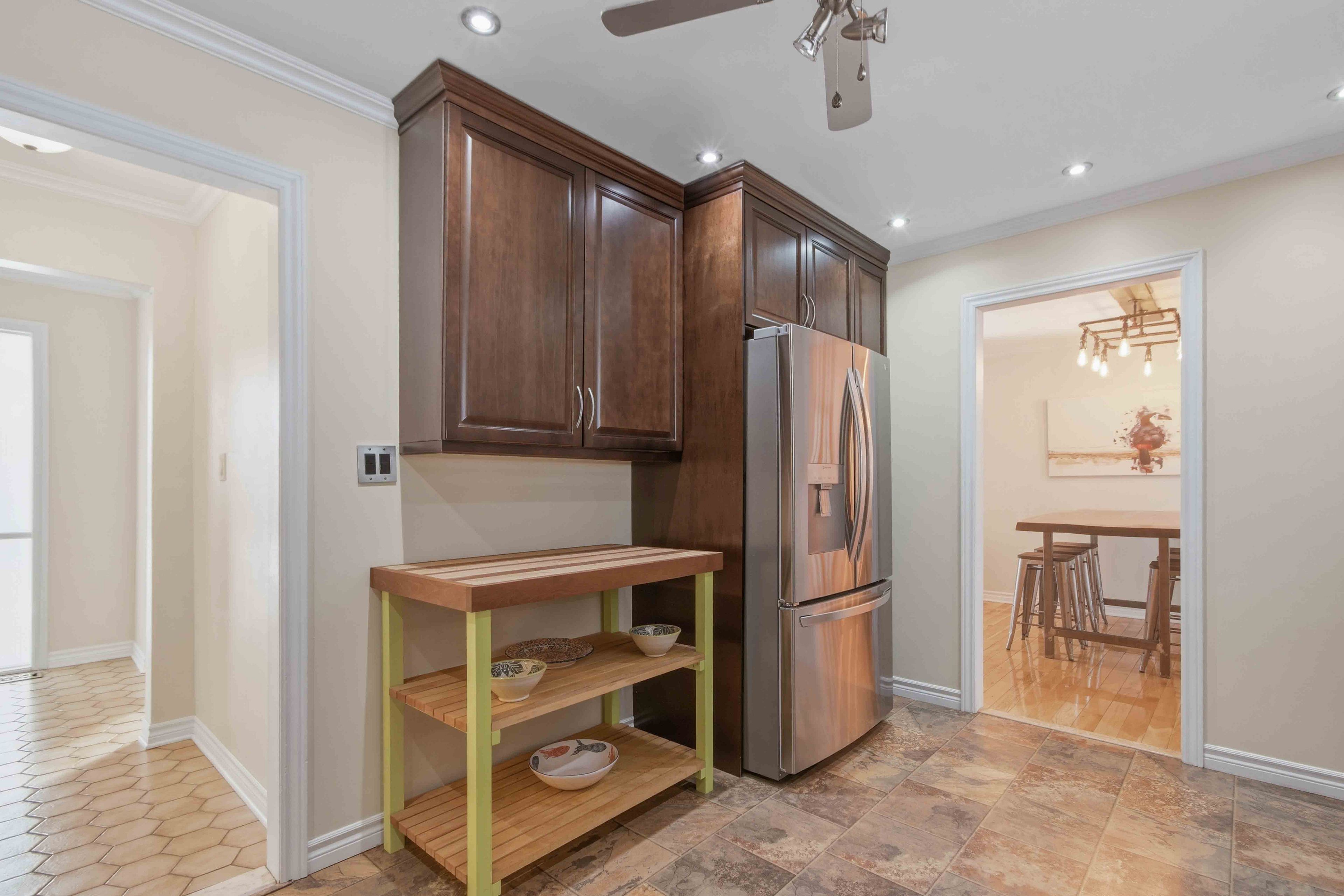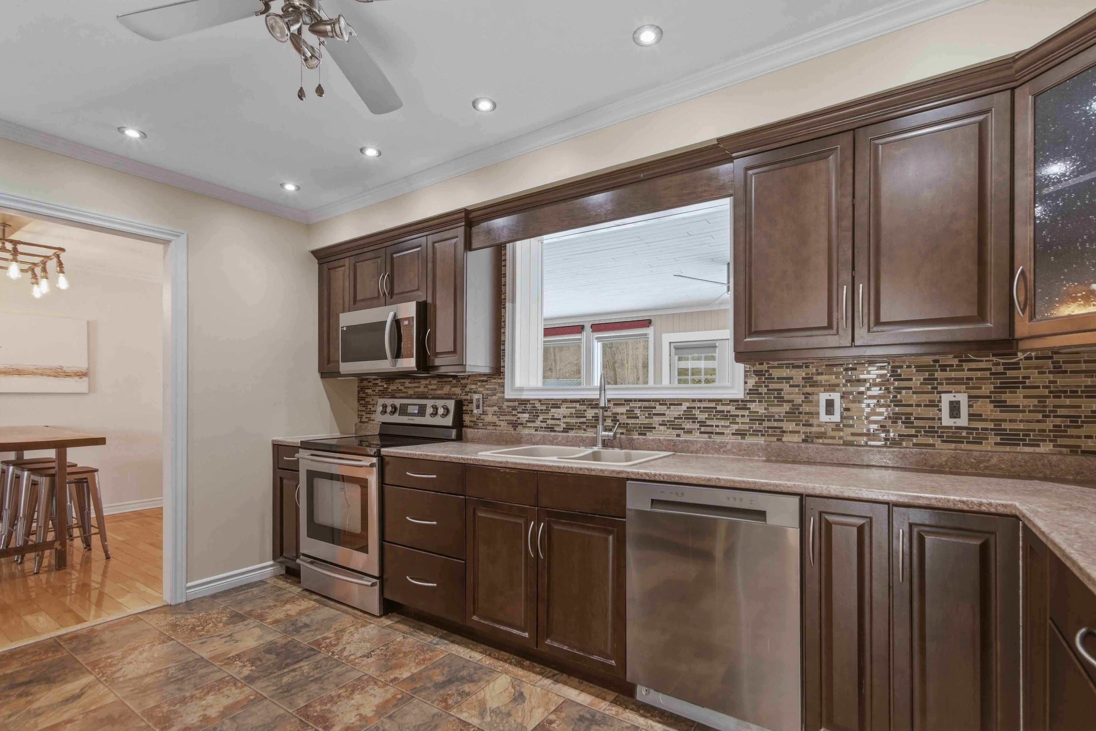 • Large kitchen with ample cabinetry and workspace for cooking.