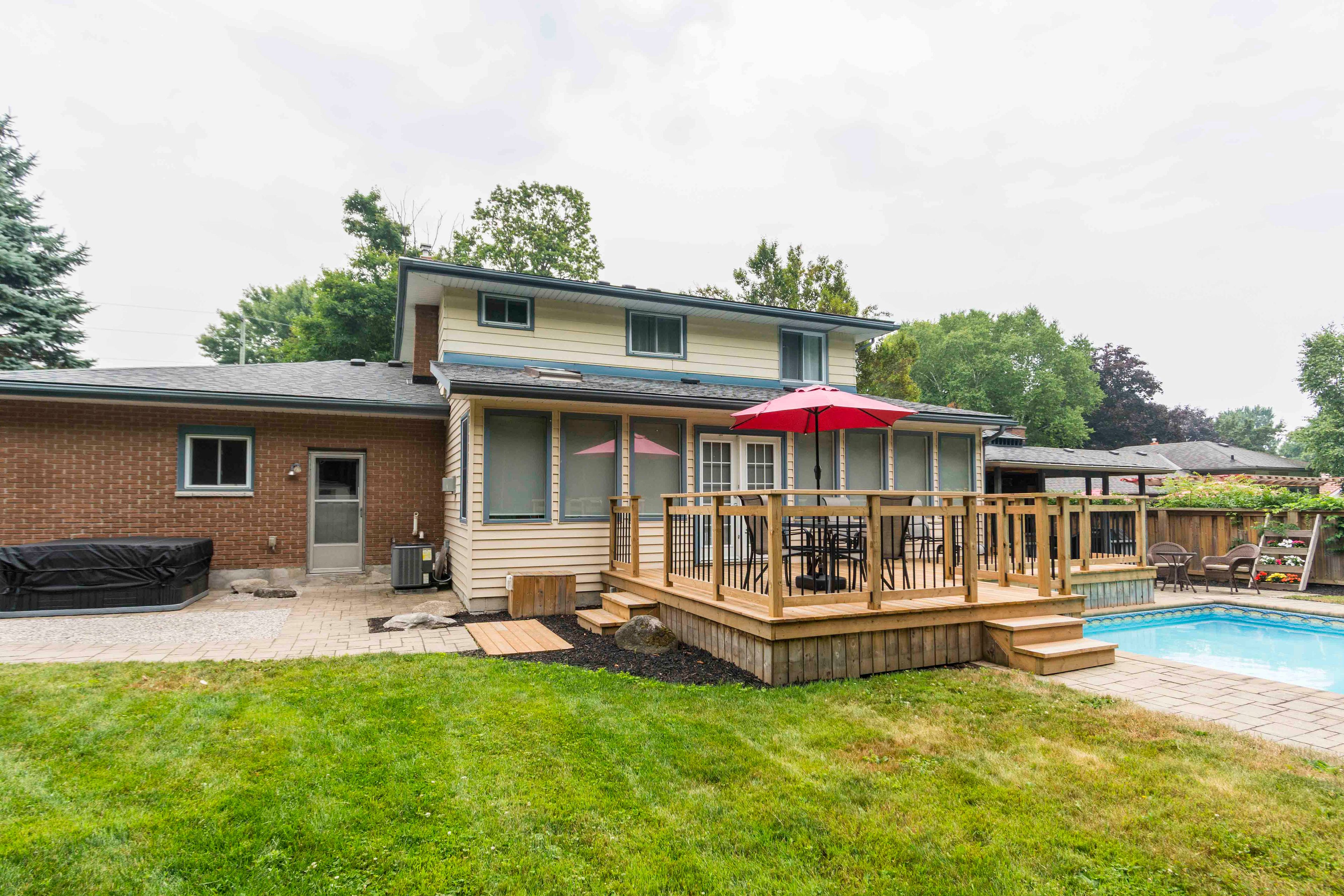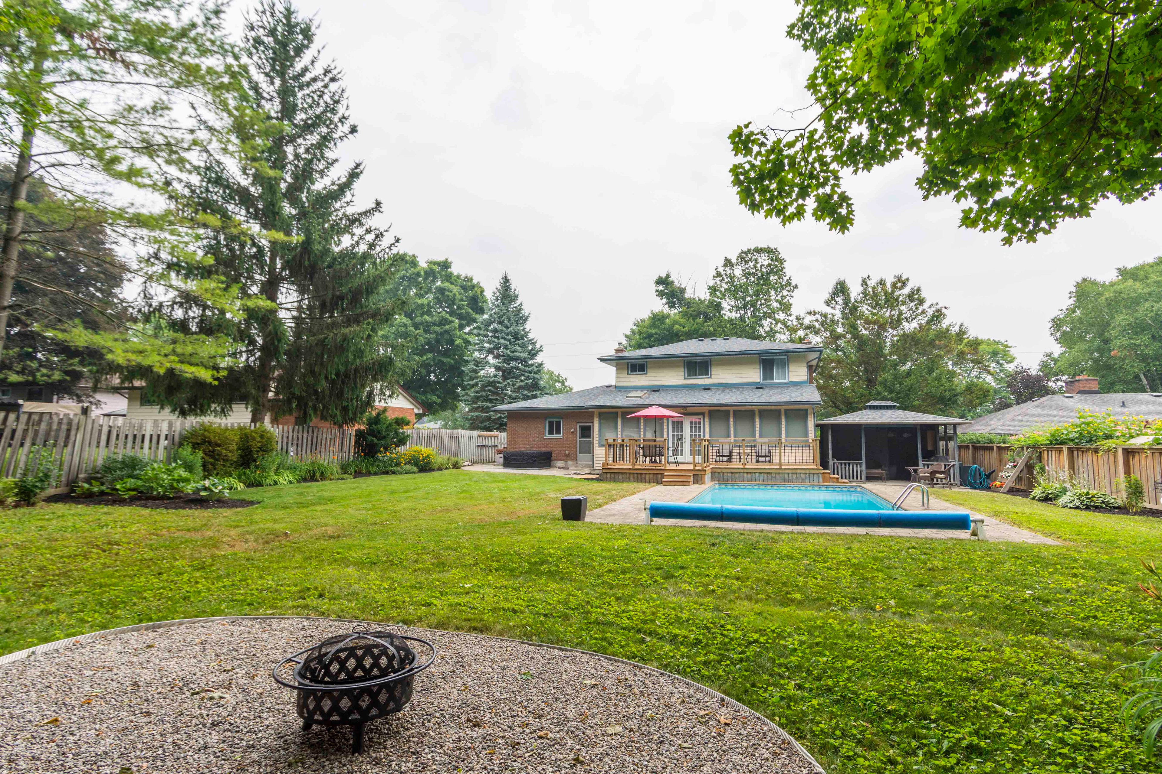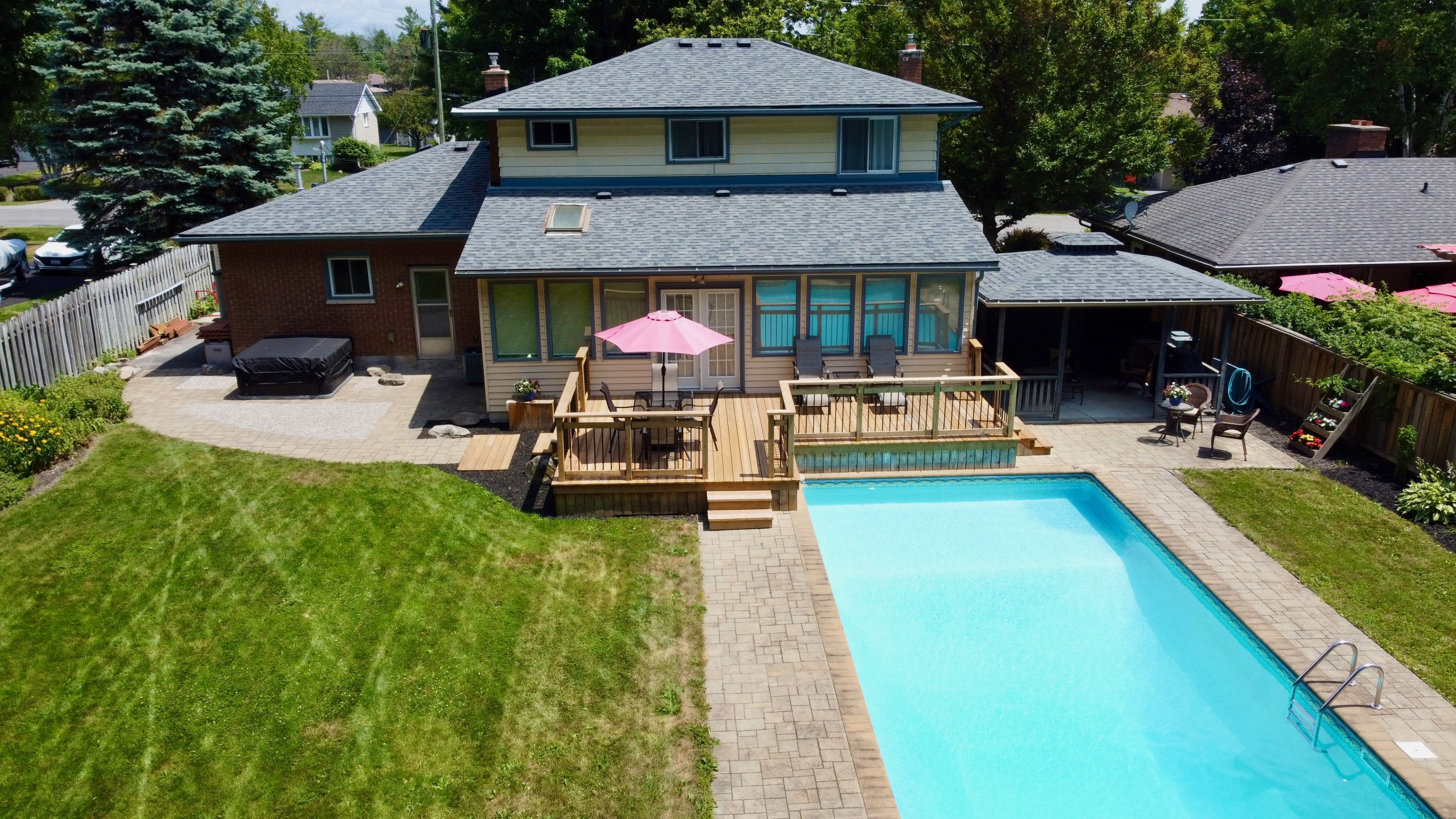 Welcome to this beautifully maintained two-story home, conveniently & privately situated; perfect for family living. Featuring 3+1 bedrooms, a finished basement, and a heated double car garage, there's plenty of space for everyone. The large functional kitchen offers ample cabinetry and workspace, while overlooking the fenced in, oversized, and private backyard with in-ground swimming pool. The ample west facing sunroom, with gas fireplace, is flooded with natural light and makes for a great dining room, family room, office, or even a gym. It's big enough it can have two uses. The front facing living room features a large window and hardwood flooring. Upstairs is the large primary bedroom, two more bedrooms, and main washroom. Downstairs is the cozy rec room with another gas fireplace, large utility room and cold storage. Located between trenton and belleville with excellent 401 access and walking distance to the nearest park. Video walkthrough available.