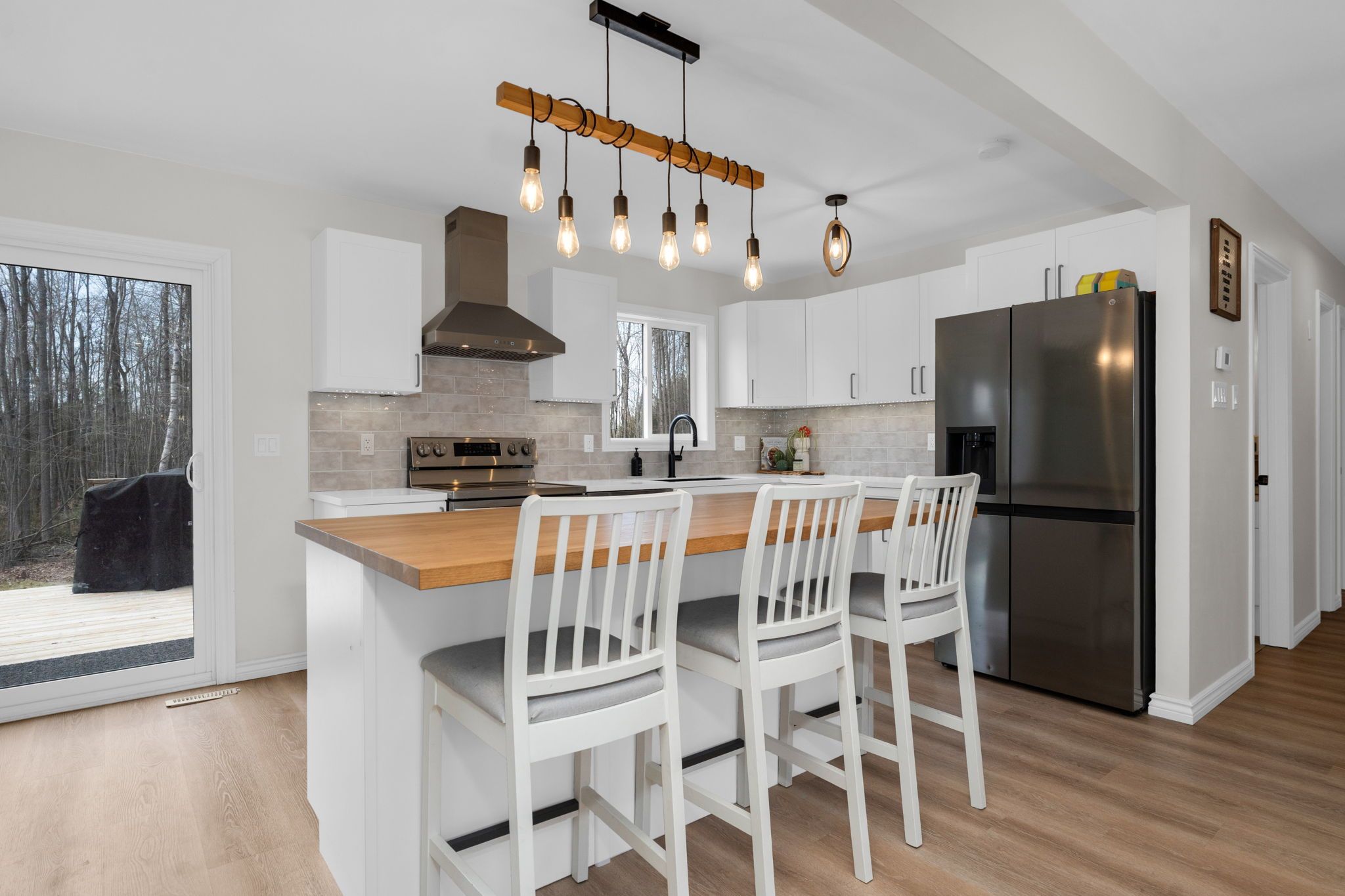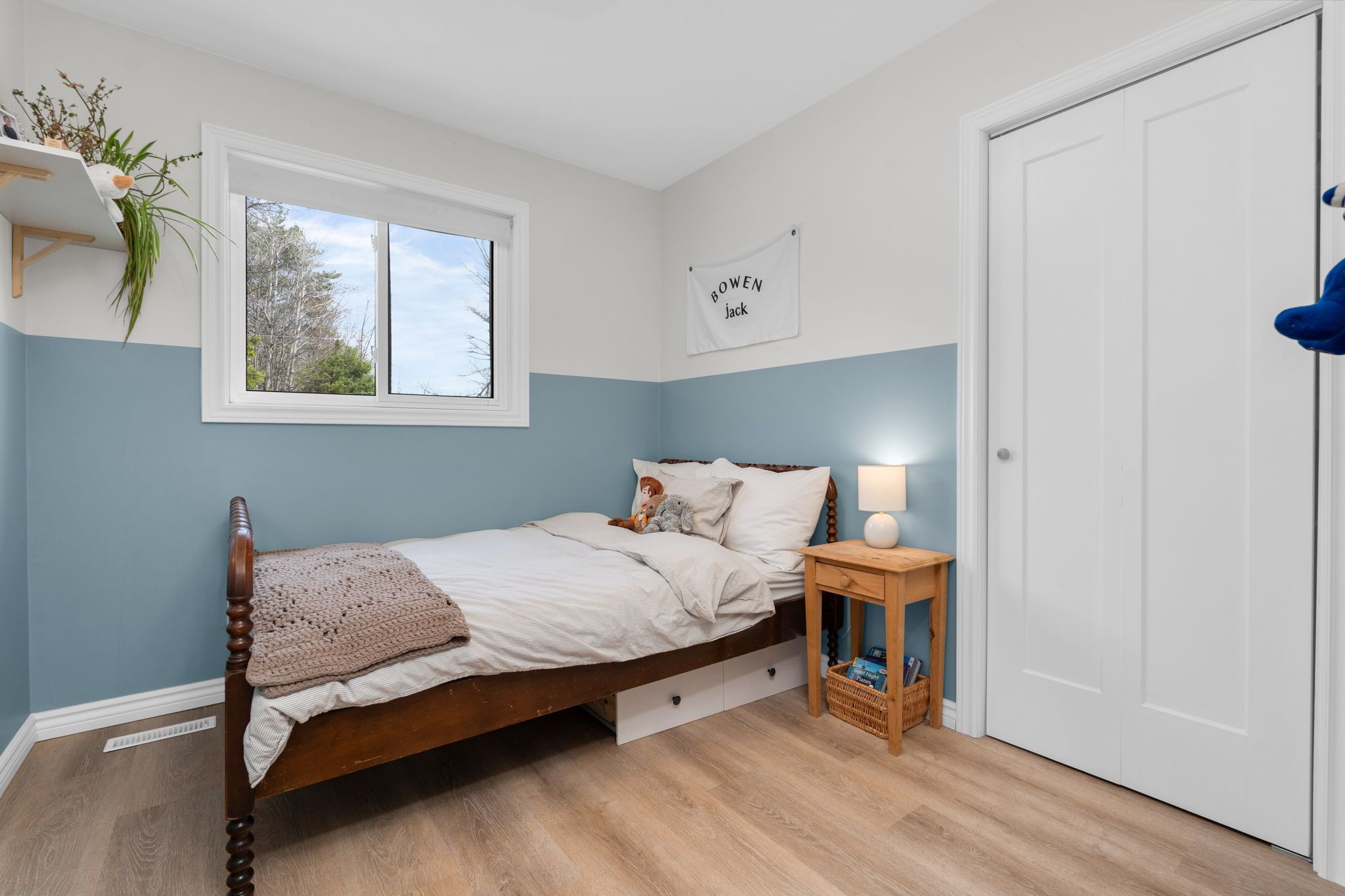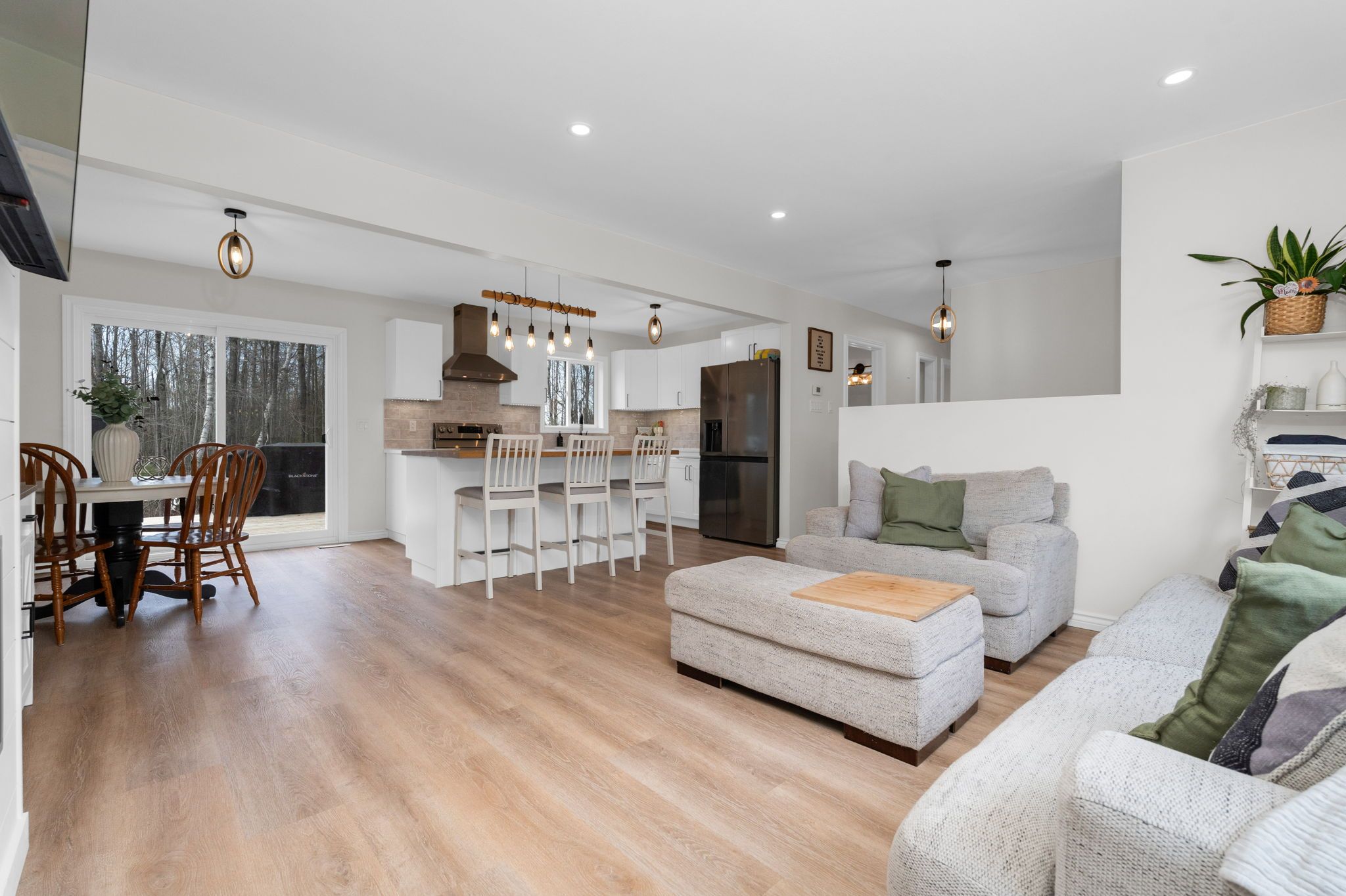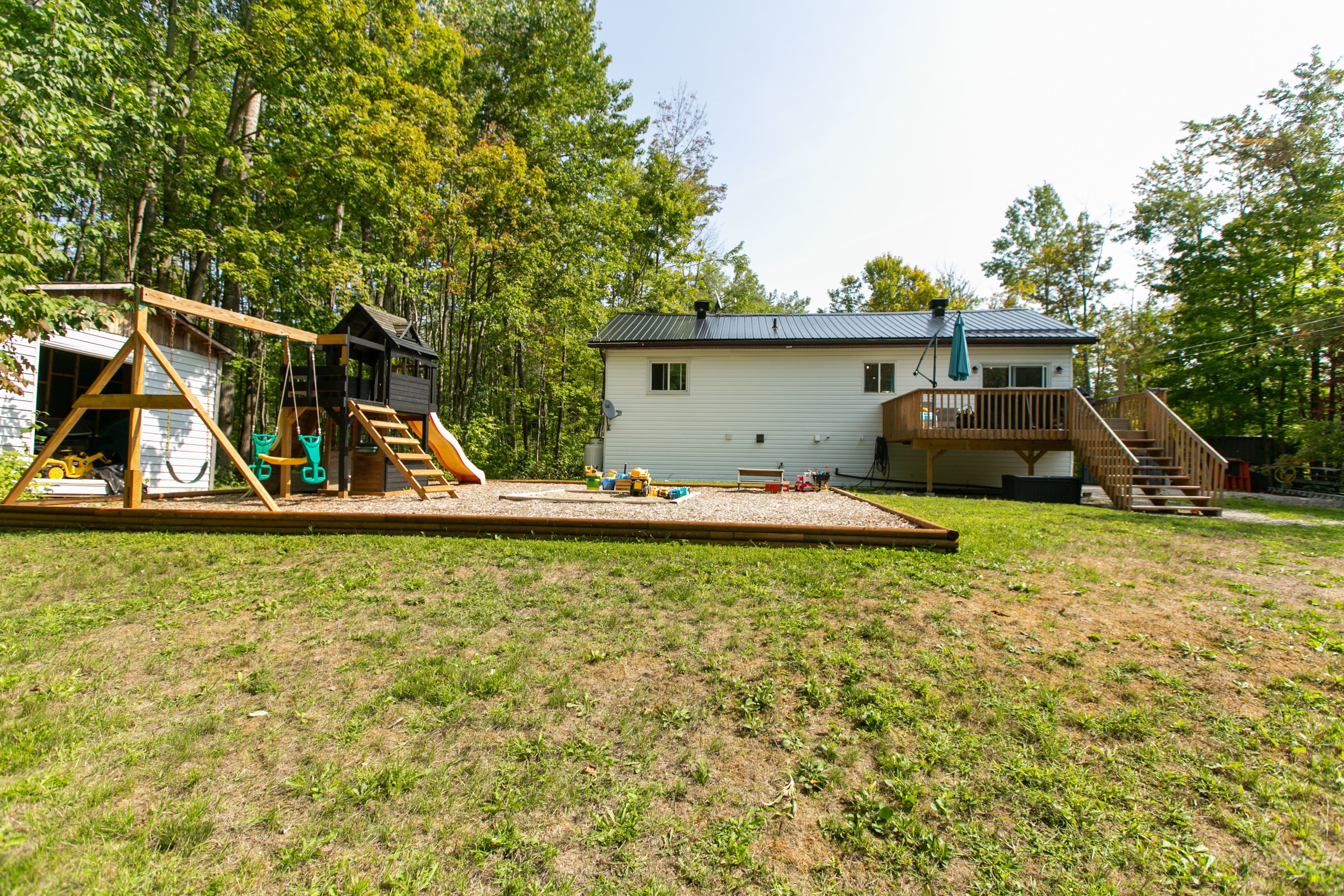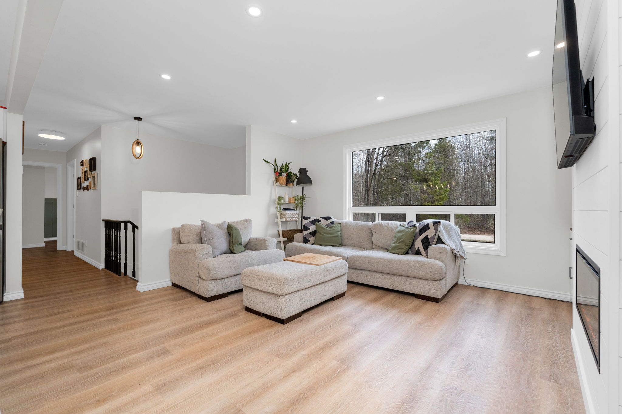 This beautifully renovated 4-bedroom, 2-bathroom family home sits on a full acre of private land, just 20 minutes from downtown orillia and accessible via a well-maintained dead end year-round road. The main floor features 3 bedrooms & a 4-piece bathroom. Downstairs includes a spacious 4th bedroom with a brand-new 3-piece bathroom & walk-in closet. Additional is a versatile rec room/kids playroom, and a convenient laundry room. Enjoy modern finishes throughout, including all-new luxury vinyl flooring, new light fixtures including pot lights, electric fireplace with built-ins, fresh paint, and all-new appliances. Step outside to a brand-new deck and take in the serene surroundings. Recent upgrades include a steel roof (2023), new windows and doors (2023/2024), owned water treatment system (2024), and a propane furnace with heat pump ac (2024) this home is completely move-in ready!