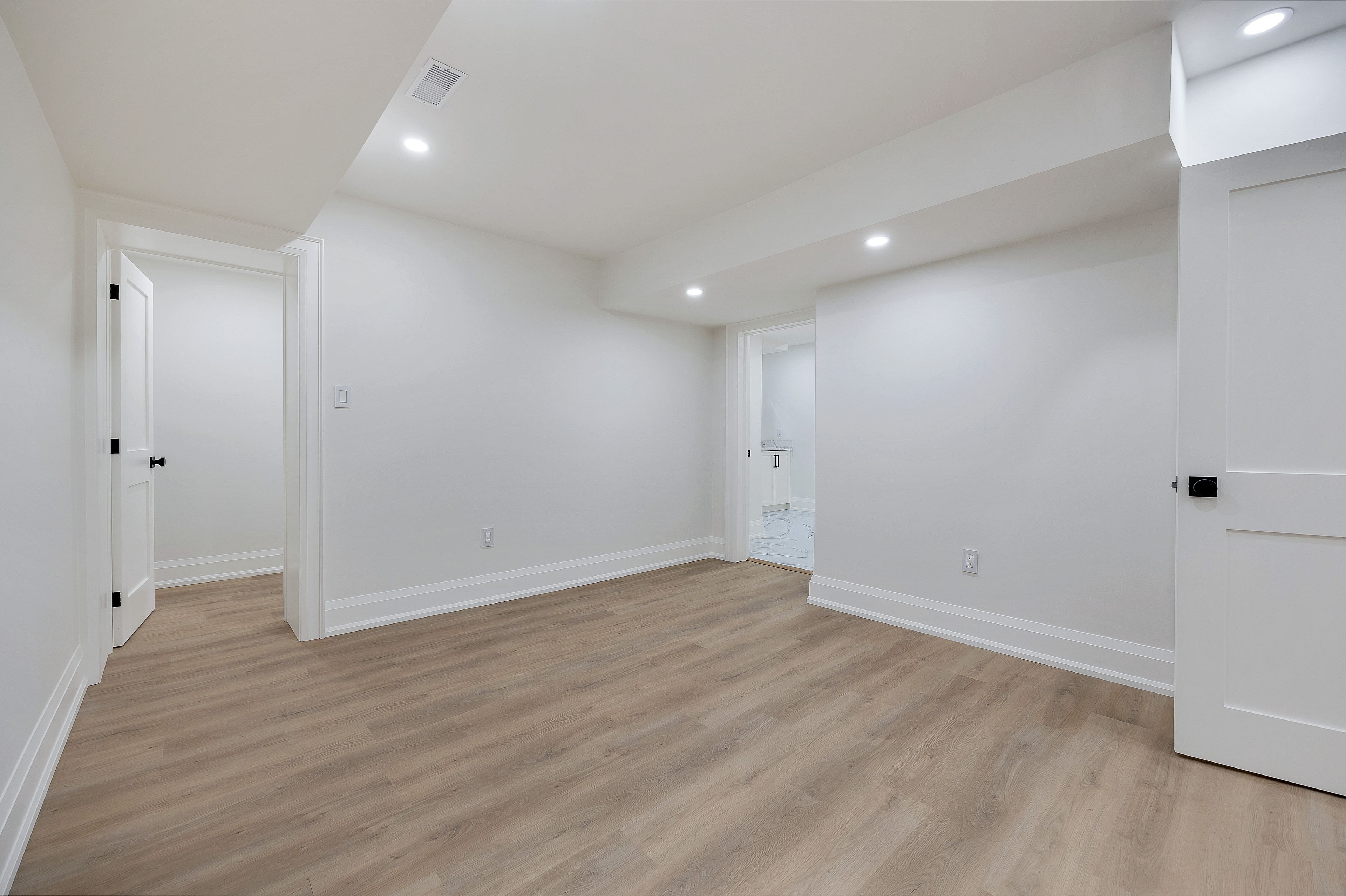 • Spacious bedrooms with custom walk-in closets for ample storage.