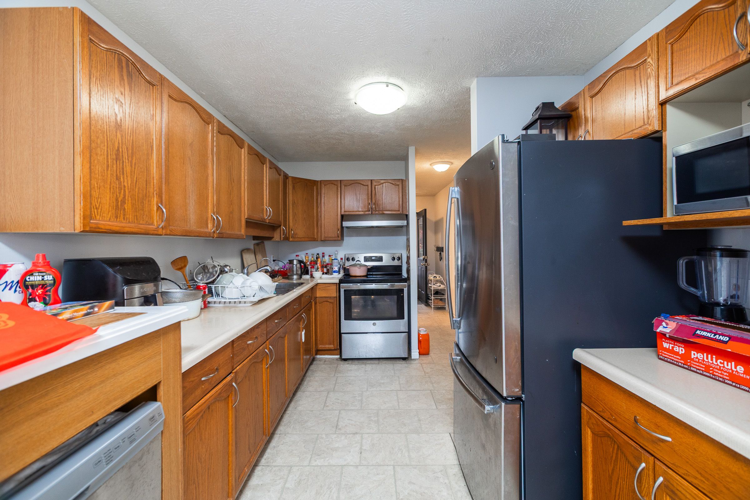 Great opportunity for investors or first time home buyers. This 3-bedroom 2. 5-bath townhouse comes with solid updates already completed, making it an easy, low-maintenance addition to your portfolio. The main floor offers an open layout with a bright kitchen with patio doors leading to the fenced in back yard. The primary bedroom has updated flooring (2024), and the fully finished basement features new flooring and a new ceiling added in 2024-giving you extra space for a recreation room, home gym, or play area. Other recent upgrades include: smart garage belt/opener, concrete front entrance stairs, new backyard stairs updated blinds on the windows. With practical updates already done and a functional layout throughout, this townhouse is move-in ready and located close to parks, schools, and everyday amenities.