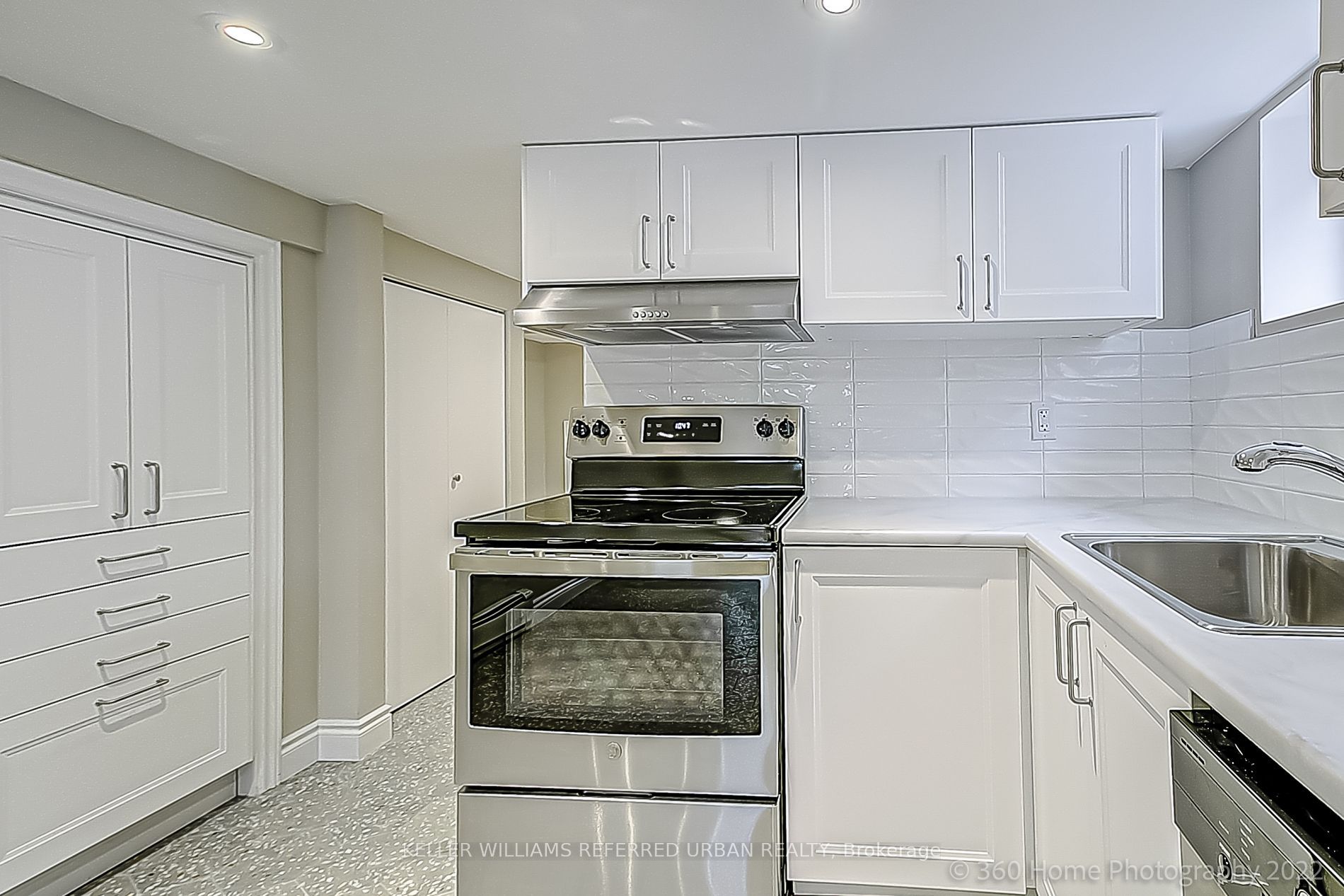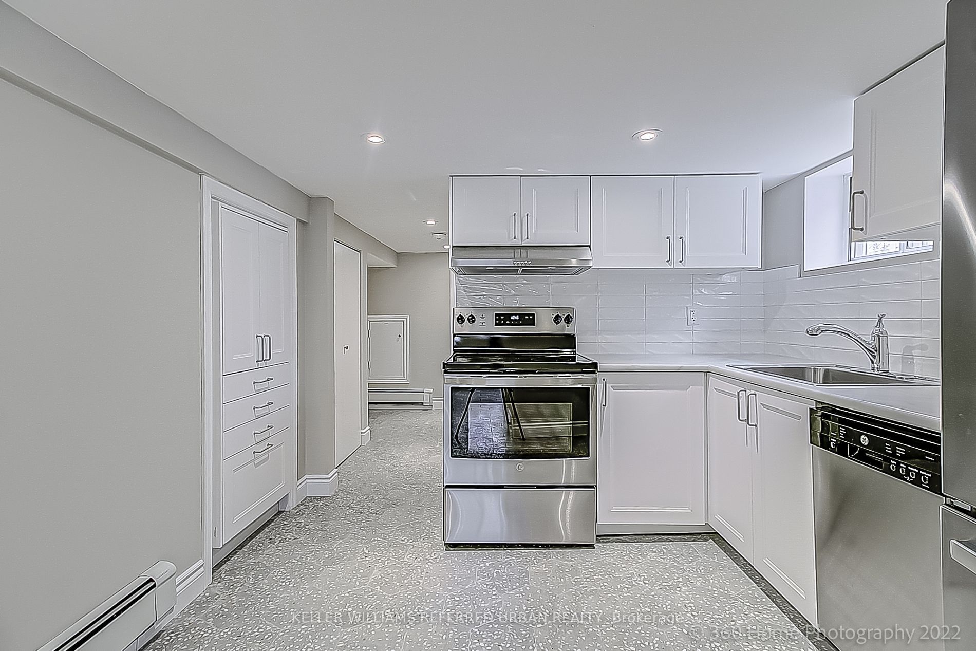 • Includes pot lights and tiled flooring for a sleek look.
