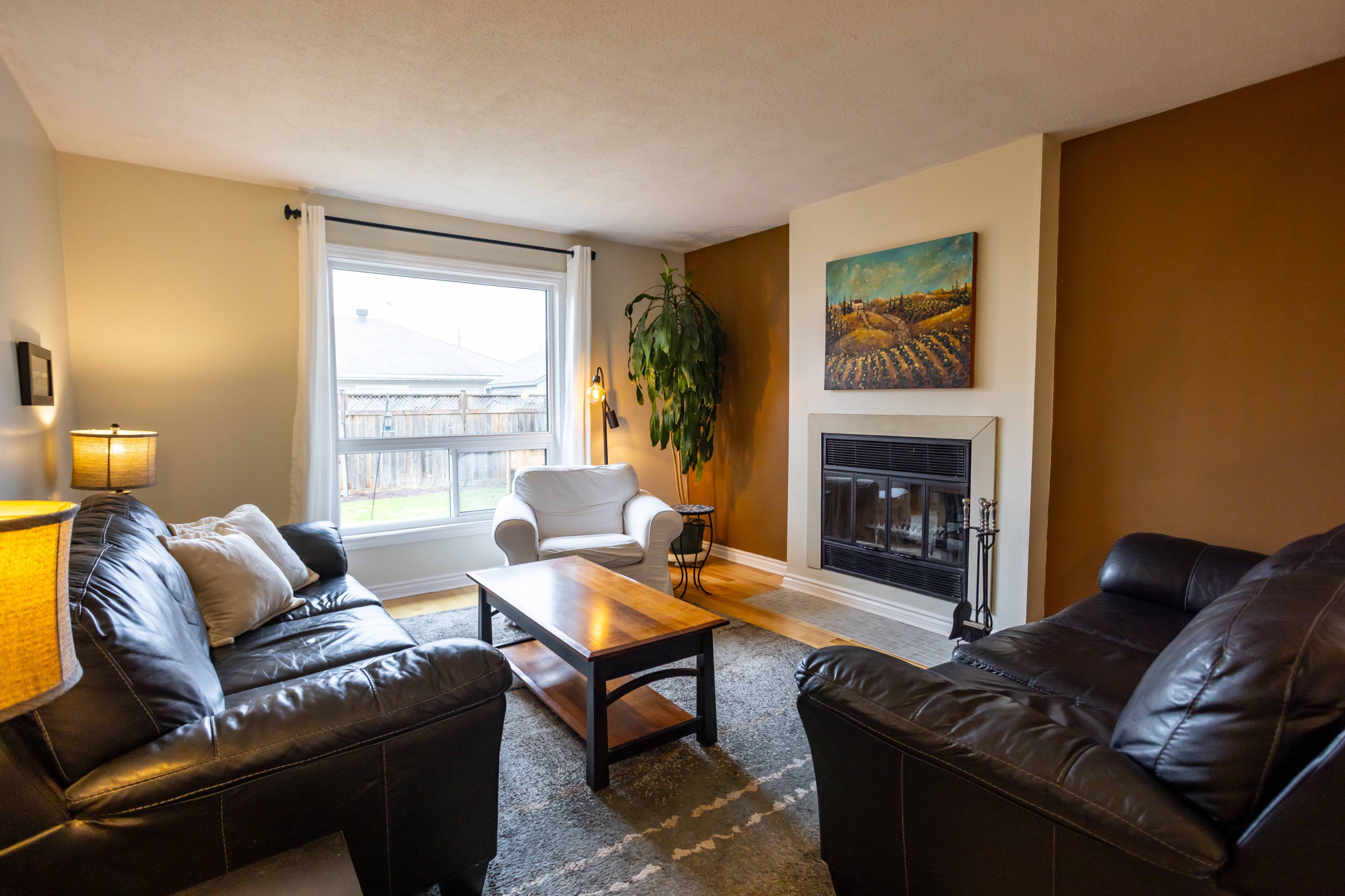 • Main floor family room features a cozy wood-burning fireplace for relaxation.