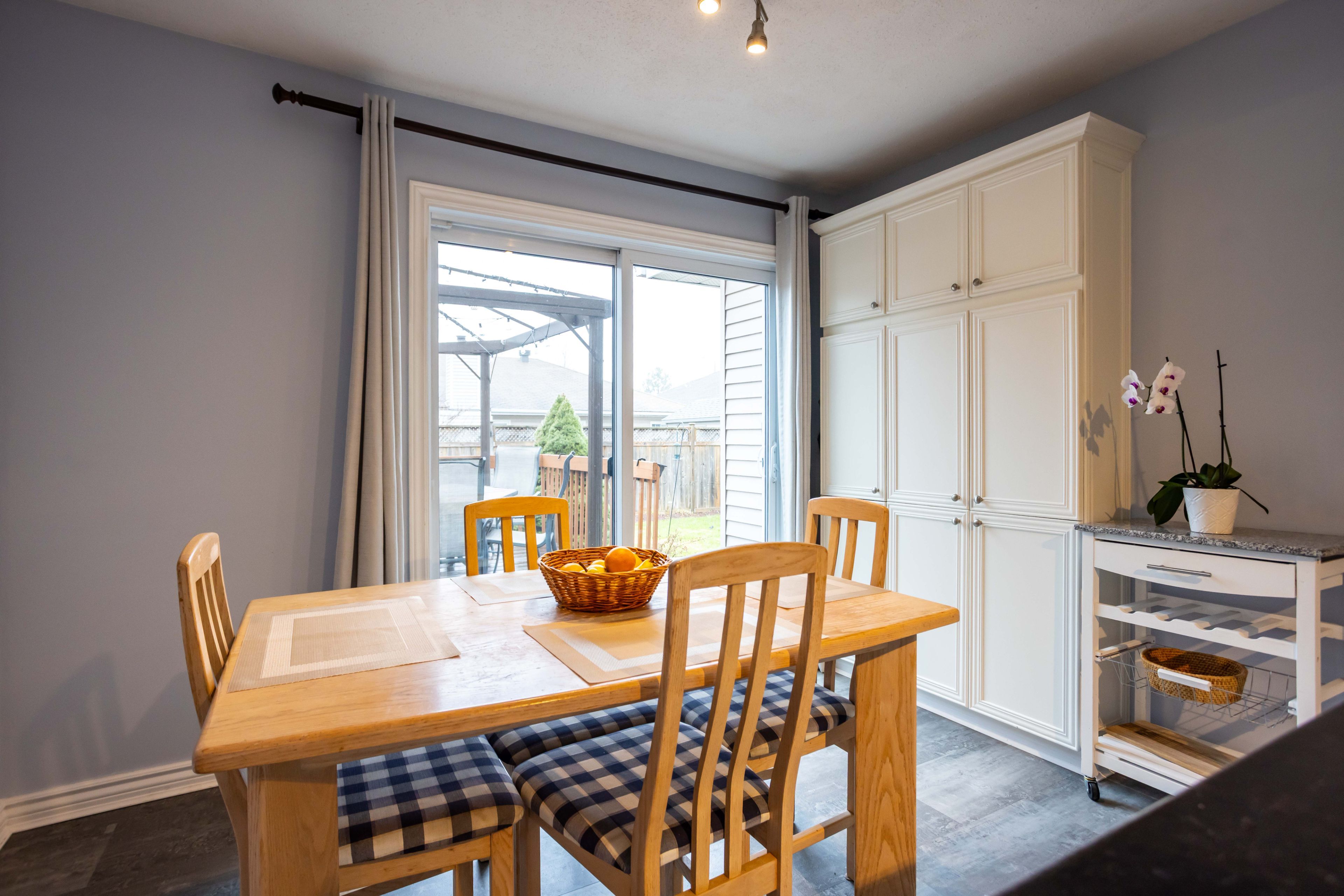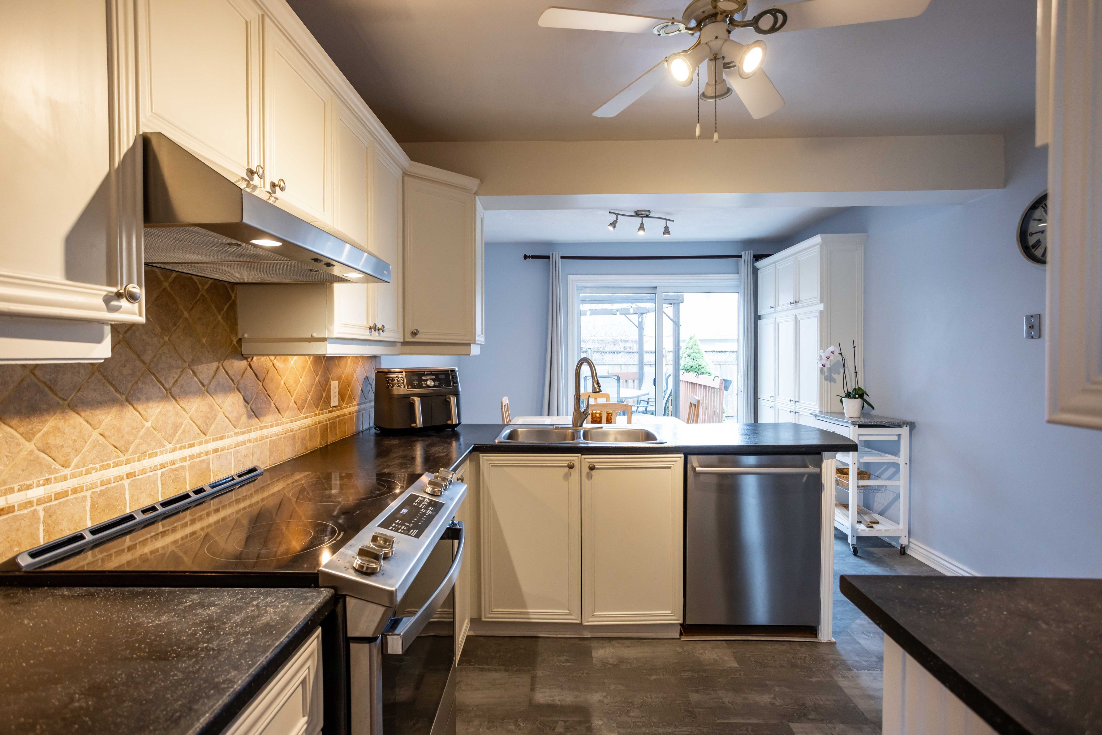 • Spacious eat-in kitchen with easy access to a large deck and backyard.