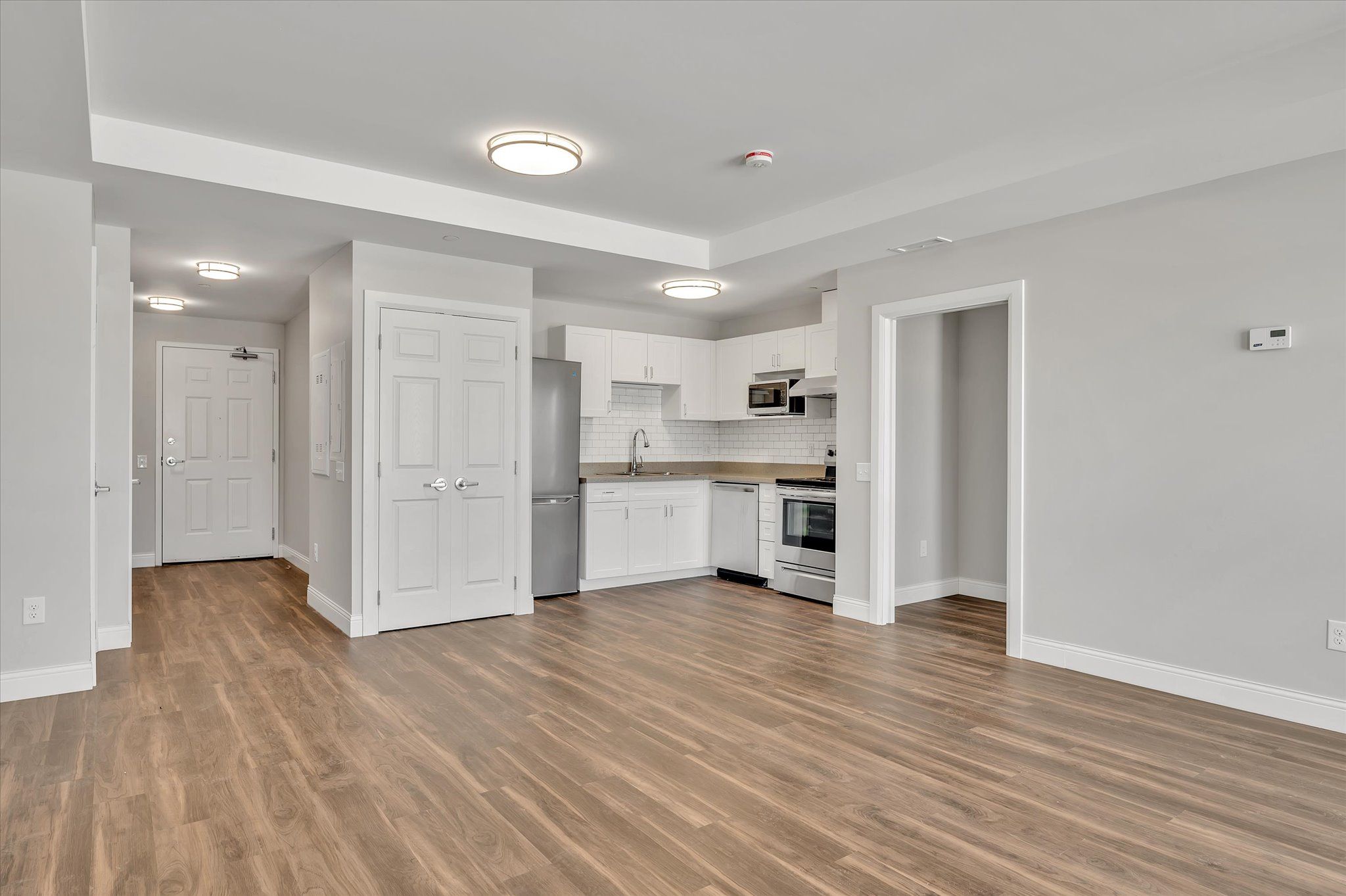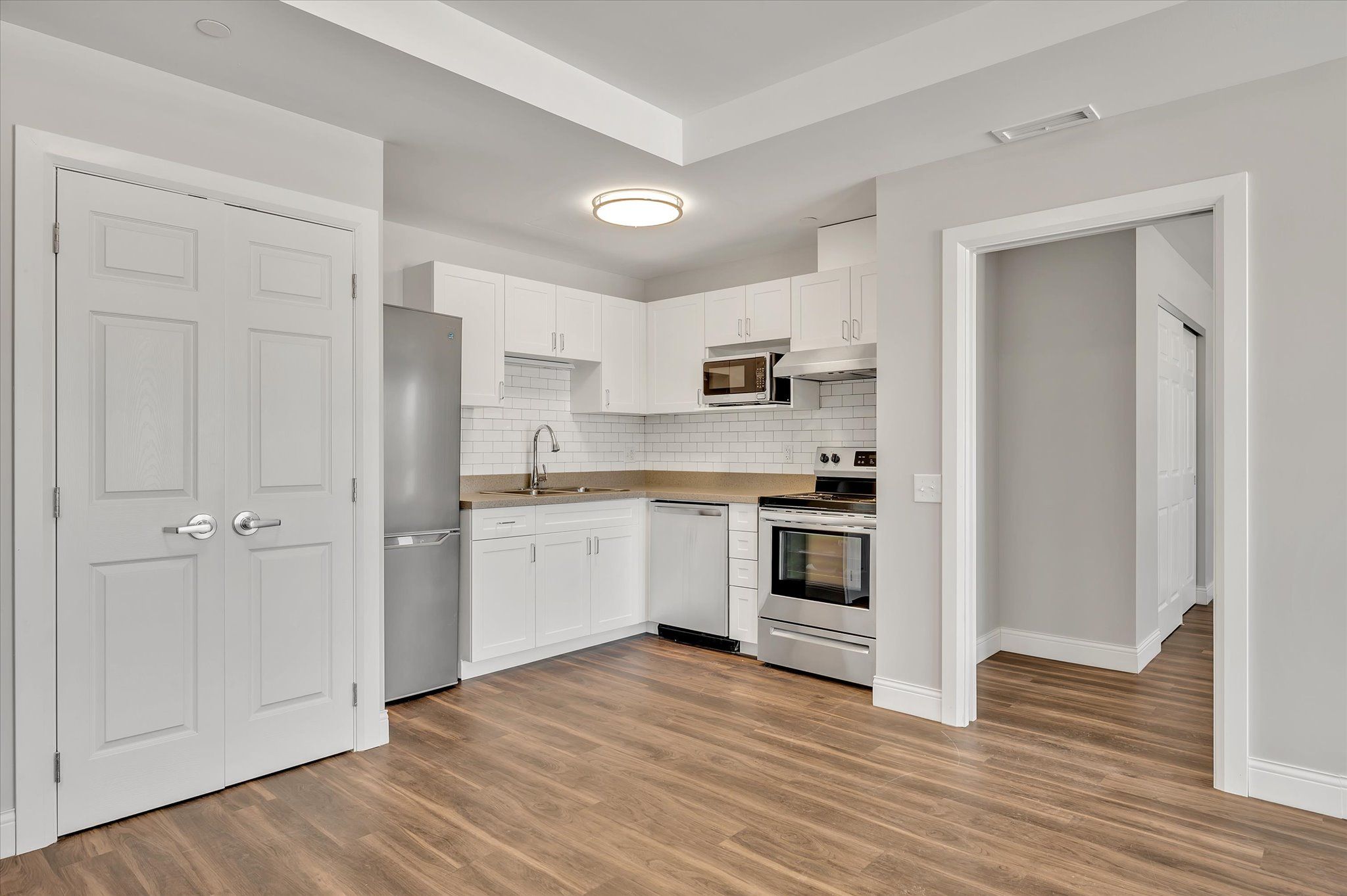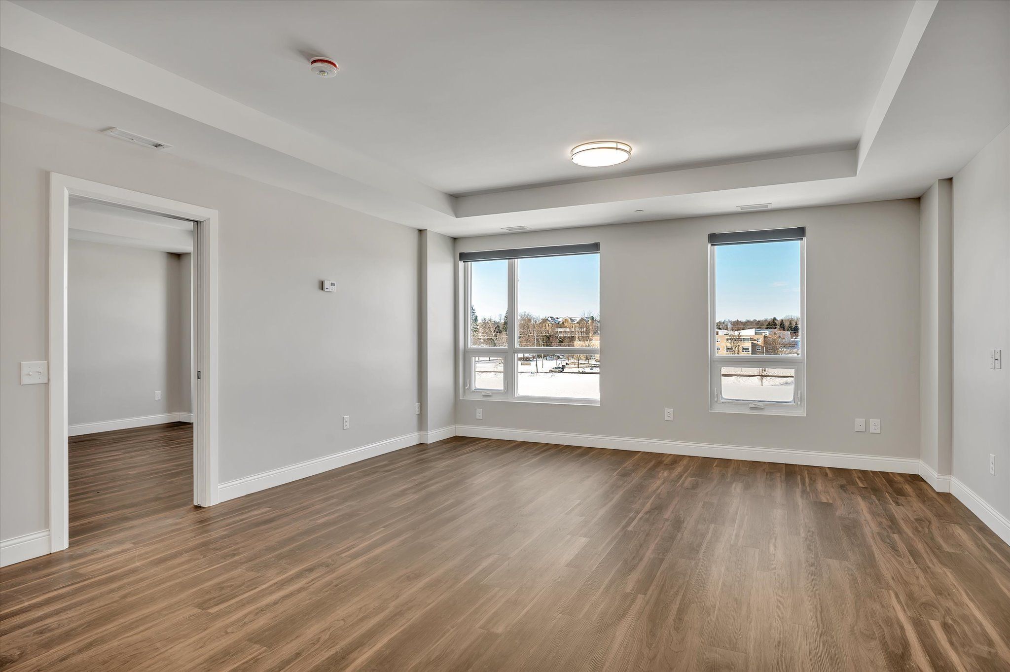 • Modern apartment units in a newer six-storey building next to parks and trails.