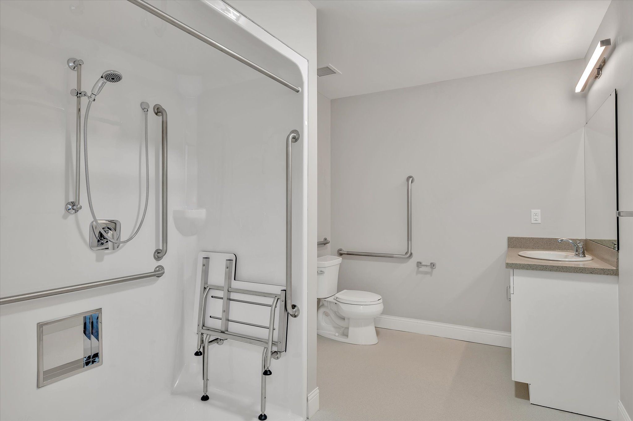 • In-suite laundry and accessible baths with walk-in showers in each unit.
