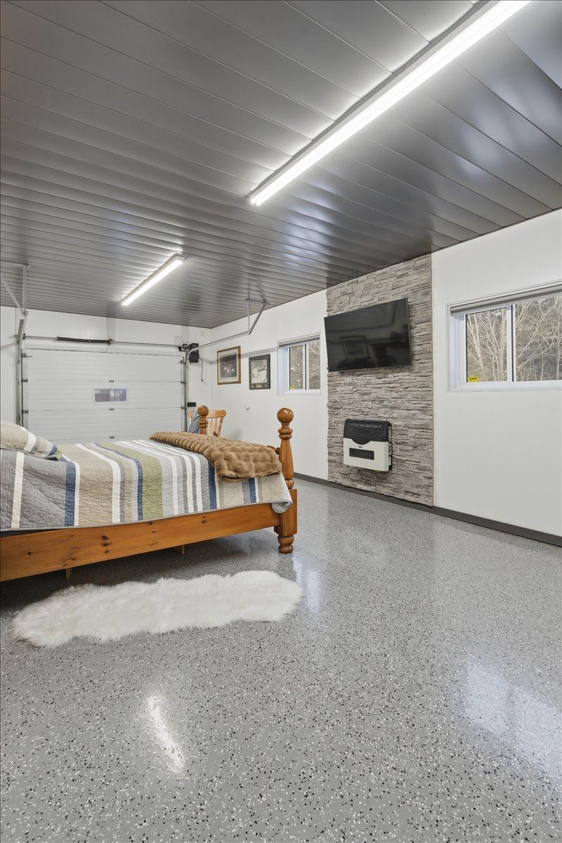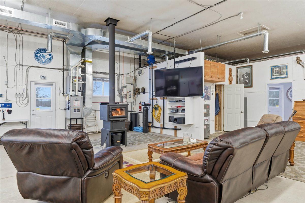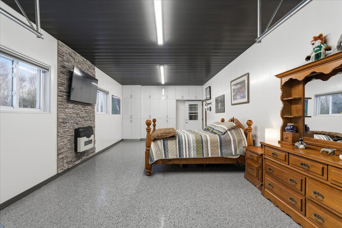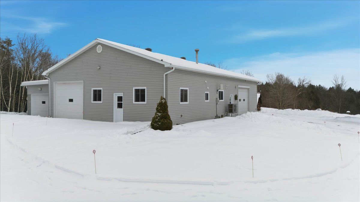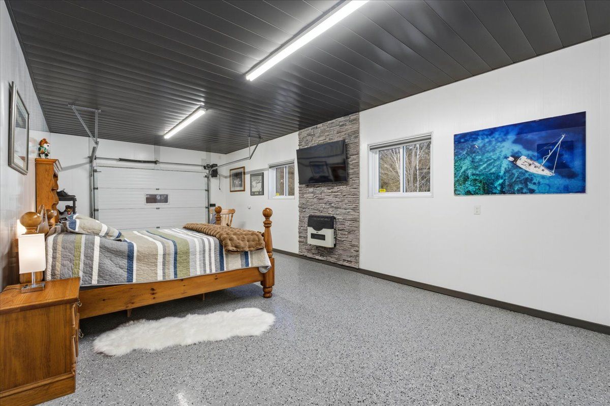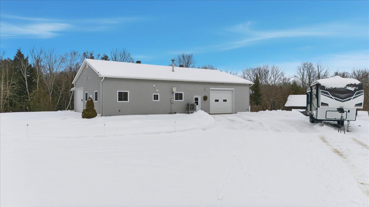 Welcome to a truly unique property that blends function, flexibility, and recreation. Designed to resemble a bungalow, this versatile building features four garage doors and a thoughtfully finished interior that extends well beyond typical garage space. Inside, you'll find a bedroom, a kitchen, and a 3-piece bathroom, along with a heat pump and woodstove for comfortable, year-round use. Set on 2. 4 private acres, the property is bordered on one side by a small, meandering stream, enhancing the peaceful, natural setting. The layout and features make it an ideal man cave, workshop, family getaway, or recreational base, with plenty of room to gather, create, or unwind. With its adaptable design and private countryside location, this property also offers strong airbnb or short term rental potential for those seeking a unique escape-style offering a rare opportunity for buyers looking for versatility, privacy, and lifestyle-driven space in a rural setting.