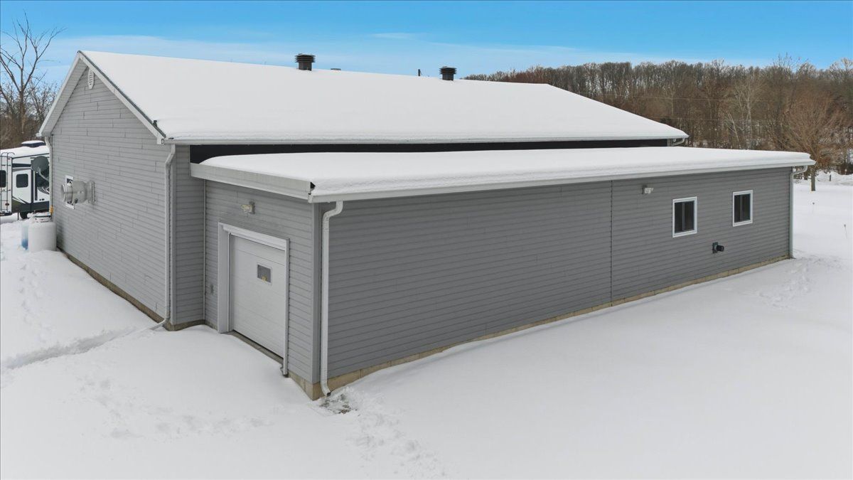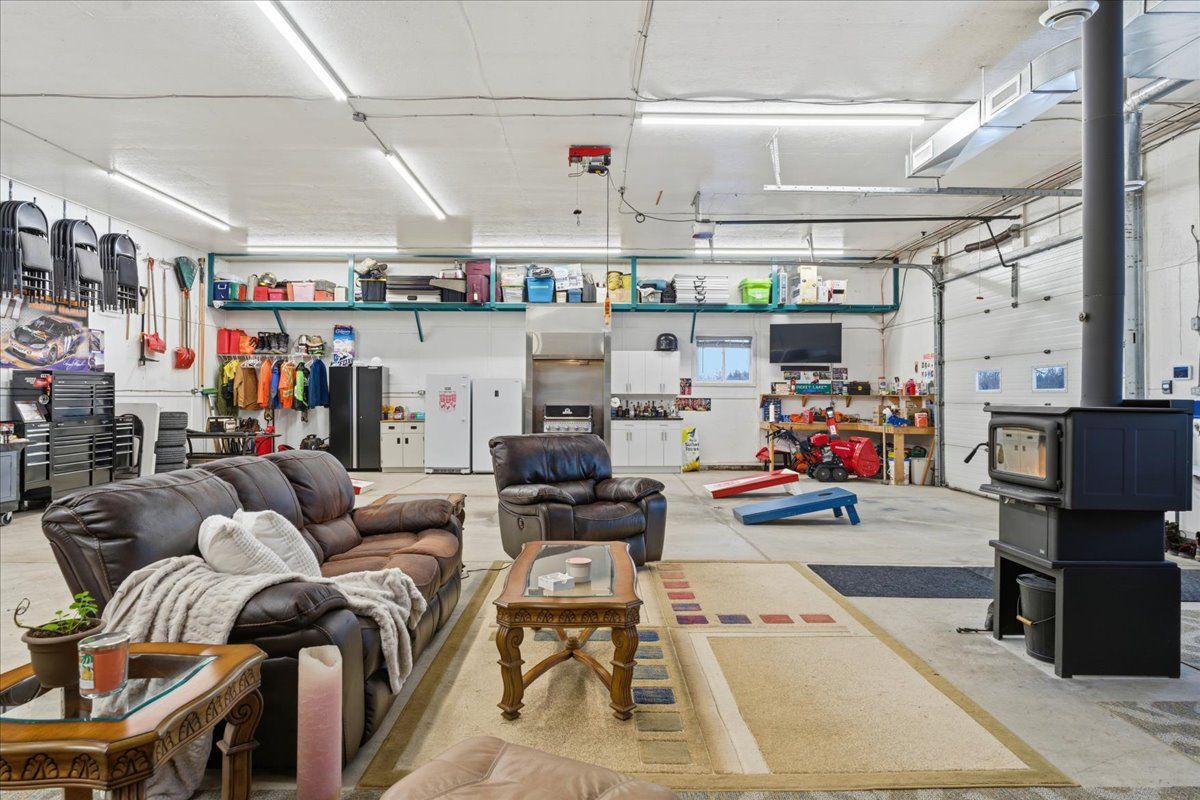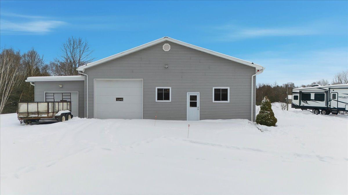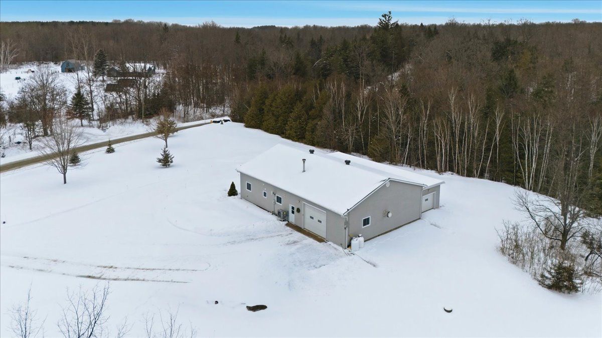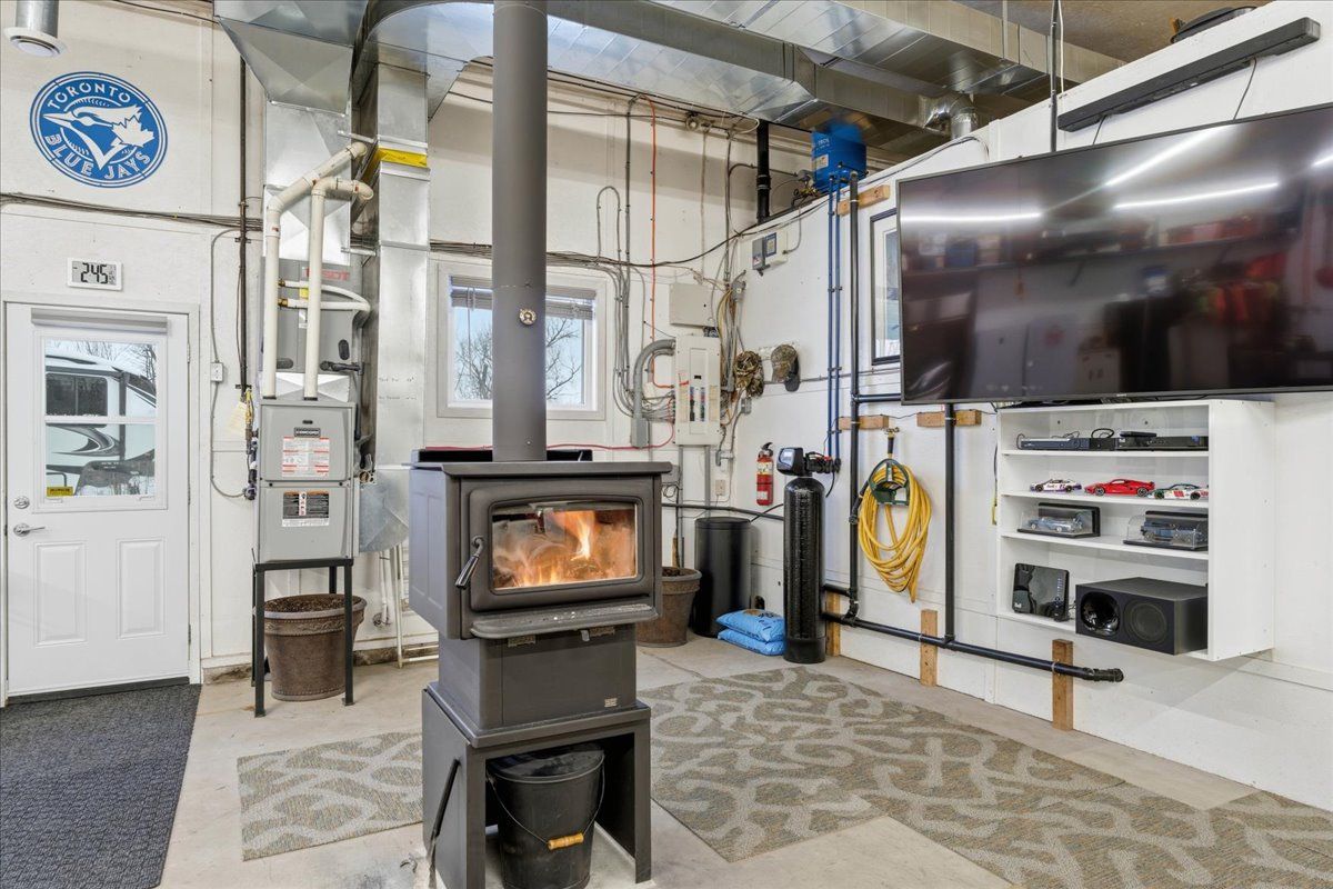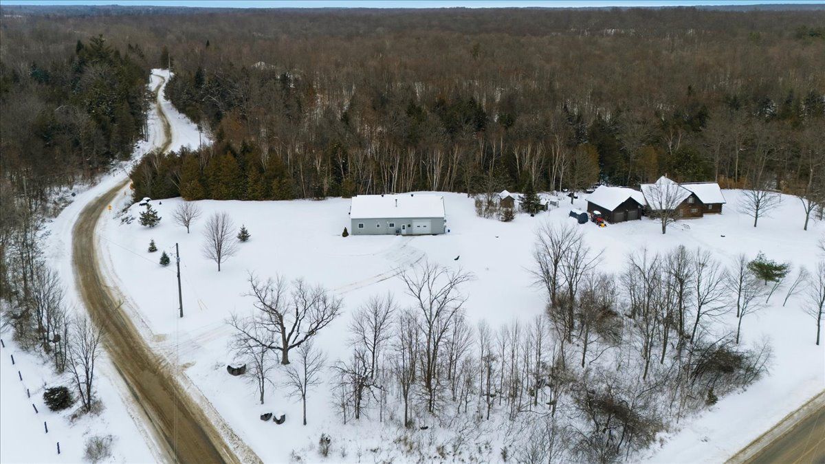 Welcome to a truly unique property that blends function, flexibility, and recreation. Designed to resemble a bungalow, this versatile building features four garage doors and a thoughtfully finished interior that extends well beyond typical garage space. Inside, you'll find a bedroom, a kitchen, and a 3-piece bathroom, along with a heat pump and woodstove for comfortable, year-round use. Set on 2. 4 private acres, the property is bordered on one side by a small, meandering stream, enhancing the peaceful, natural setting. The layout and features make it an ideal man cave, workshop, family getaway, or recreational base, with plenty of room to gather, create, or unwind. With its adaptable design and private countryside location, this property also offers strong airbnb or short term rental potential for those seeking a unique escape-style offering a rare opportunity for buyers looking for versatility, privacy, and lifestyle-driven space in a rural setting.